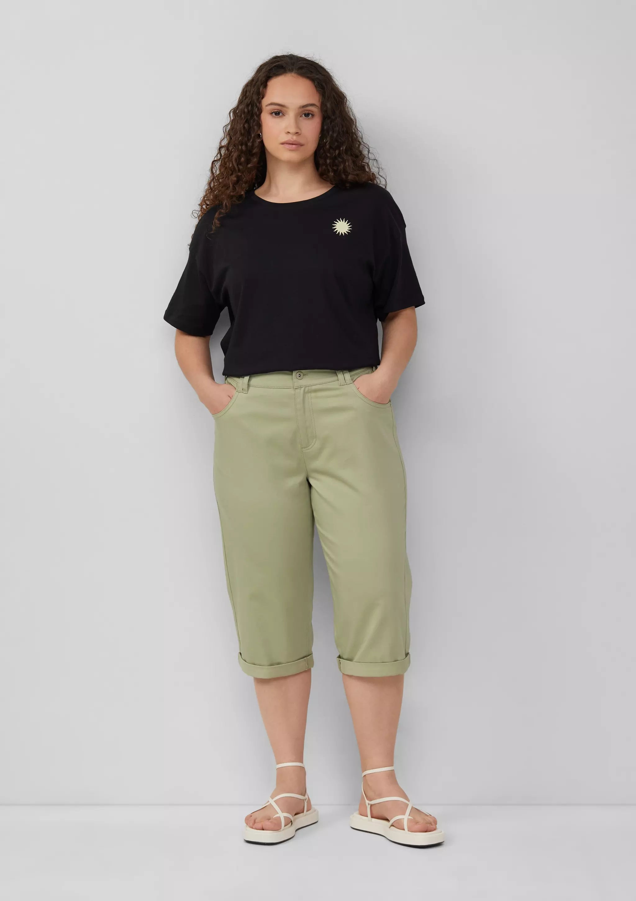 Deine neue Capri-Hose aus Baumwollsatin rockt den Alltag! Mit Mid Rise und Slim Leg sitzt sie perfekt für coole Casual-Looks. Der Reißverschluss und Knopf machen sie super praktisch. Stylish und bequem - dein neuer Lieblings-Begleiter für entspannte Tage!