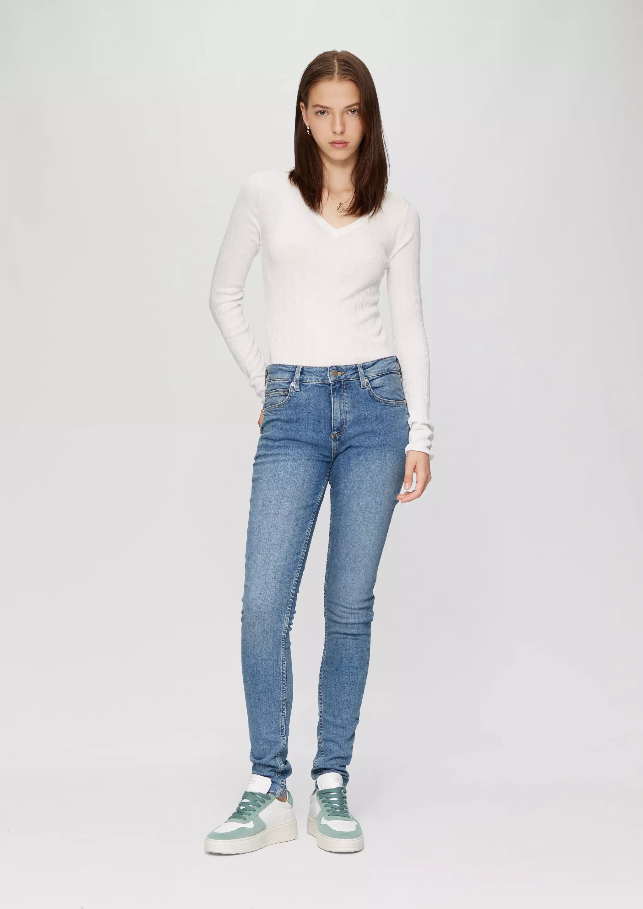 Stylische Skinny Jeans für deinen Alltag! Mit Denim und Used-Effekt bist du immer cool unterwegs. Der Mid Rise Bund und der elastische Baumwollstoff sorgen für bequemen Sitz. Perfekt für dein lässiges Outfit!