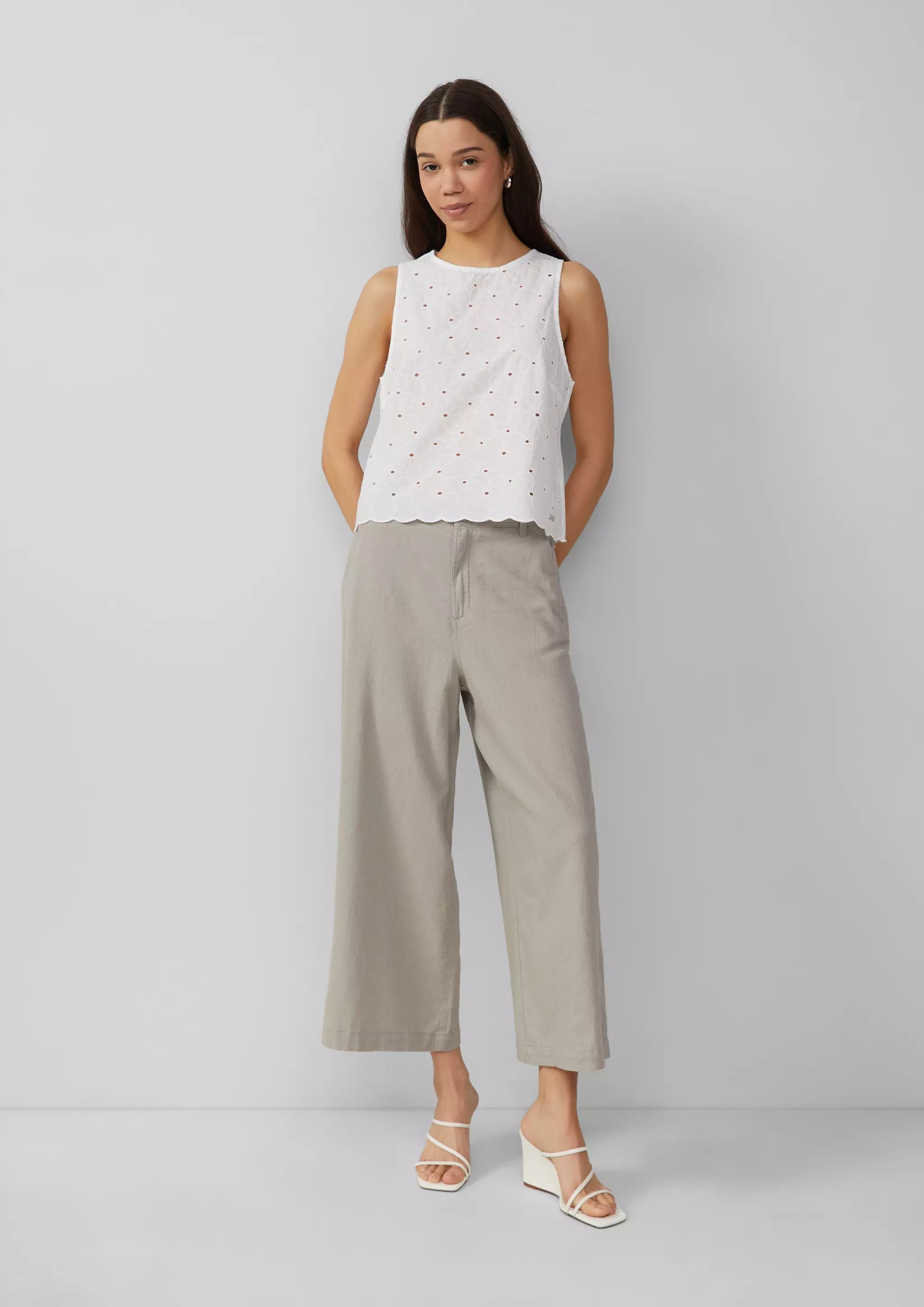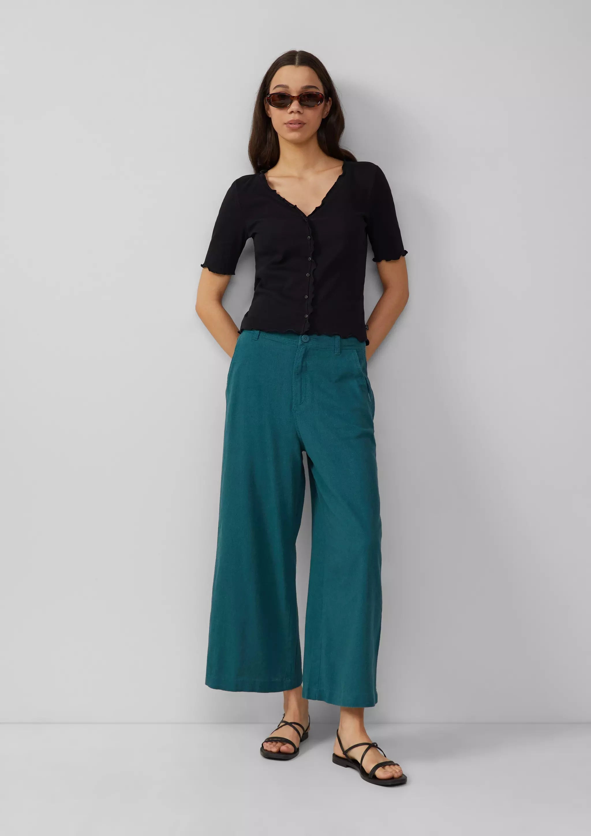 Luftig-leichte Leinenmix-Culotte: Dein perfekter Begleiter für entspannte Tage! Ob im Urlaub oder im Alltag – diese atmungsaktive Wide-Leg-Hose mit Elastikbund passt sich deinem Leben an. Praktische Taschen inklusive.