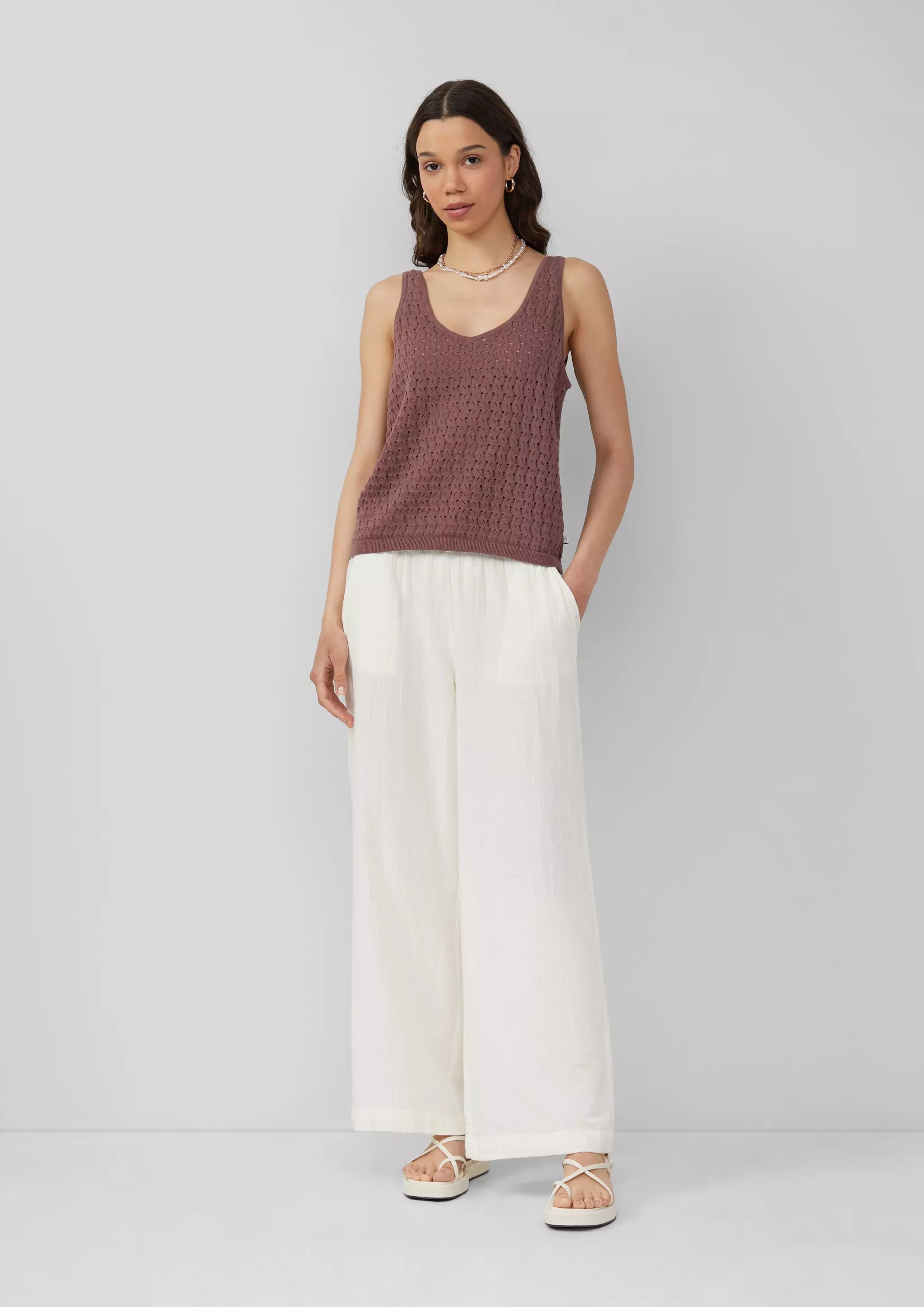 Diese Musselin-Hose mit weitem Bein ist dein neuer Liebling für entspannte Tage. Ob Stadtbummel oder Picknick im Park – du fühlst dich immer stylisch und wohl. Perfekt für deinen Sommer-Look!