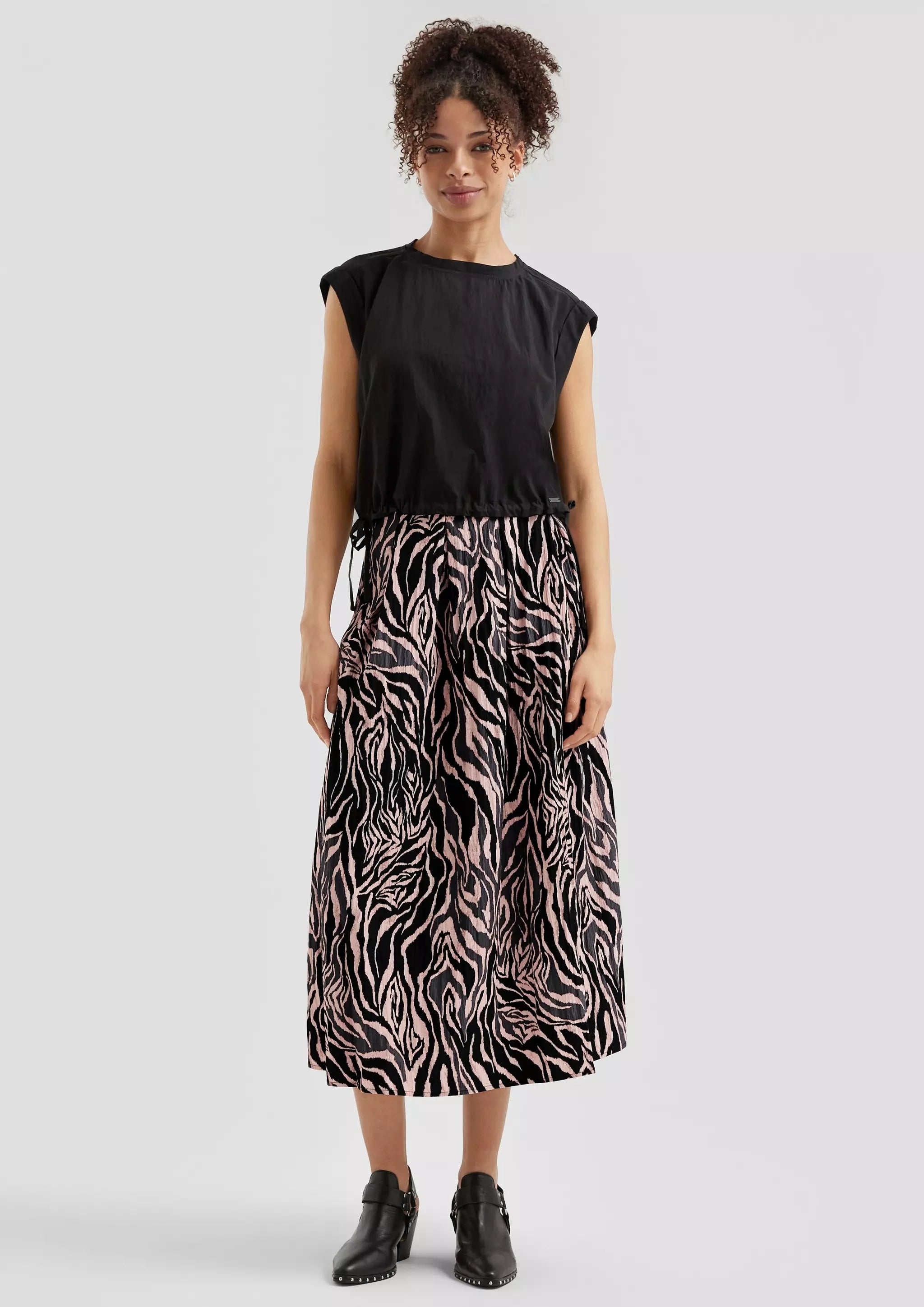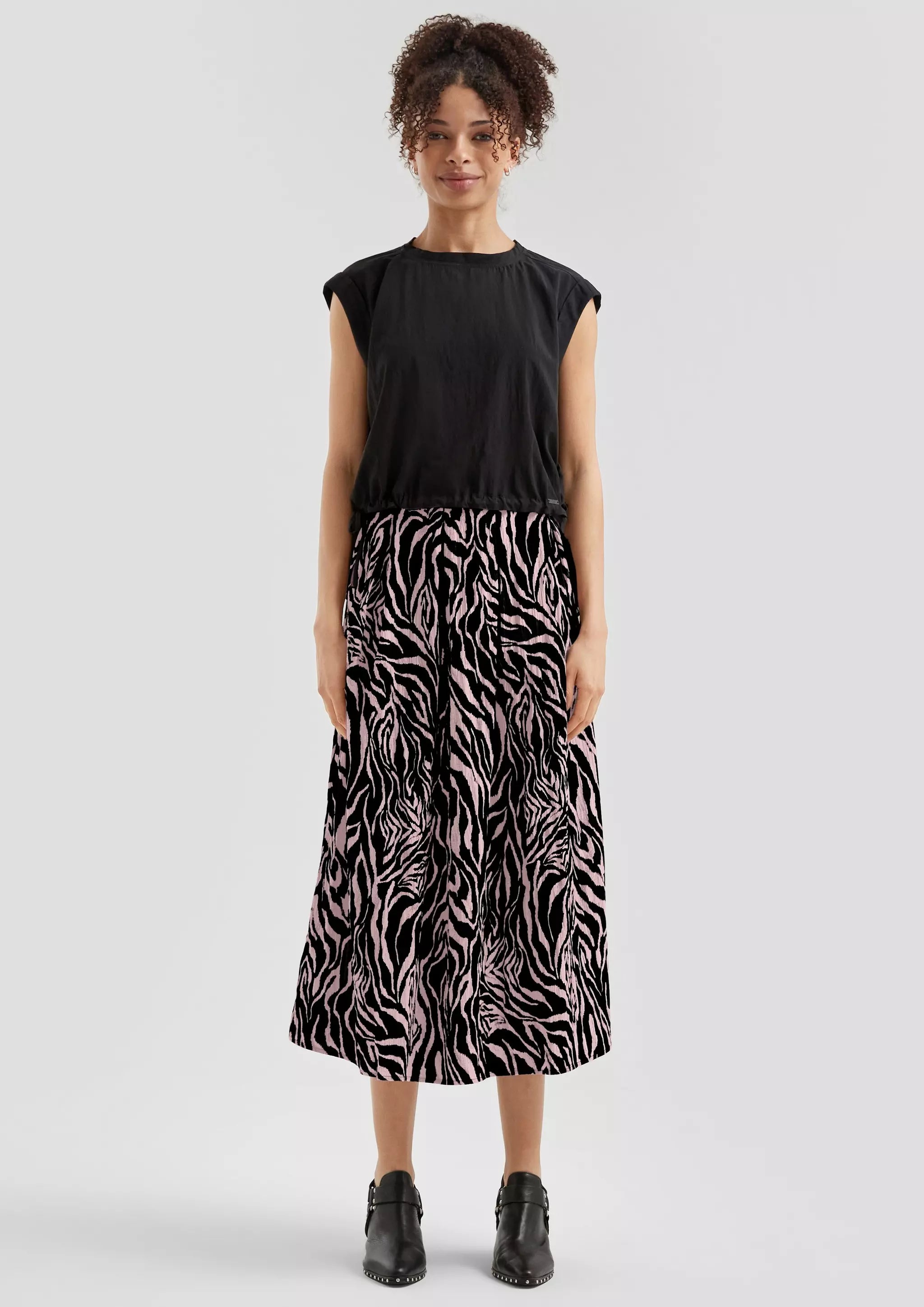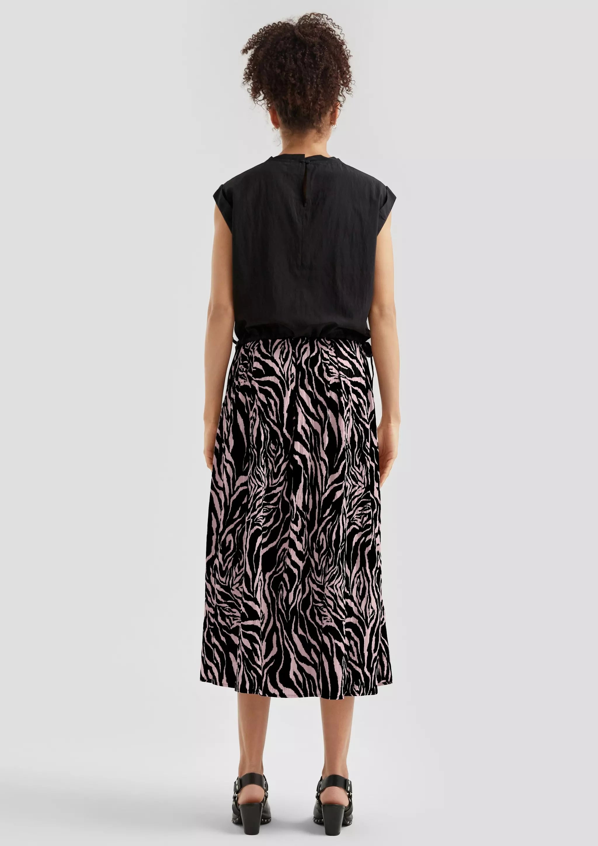 Gemusterter Midi-Rock mit Bundfalten