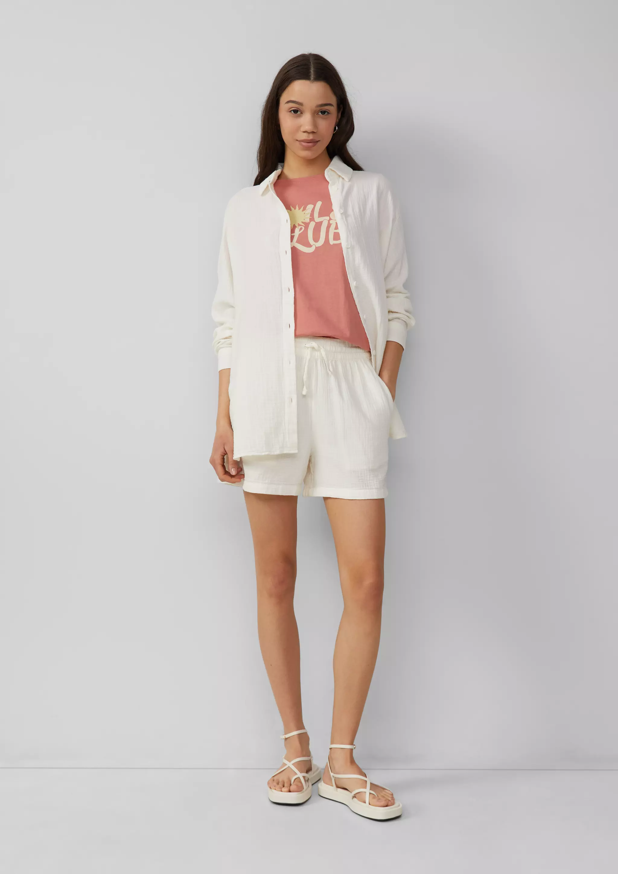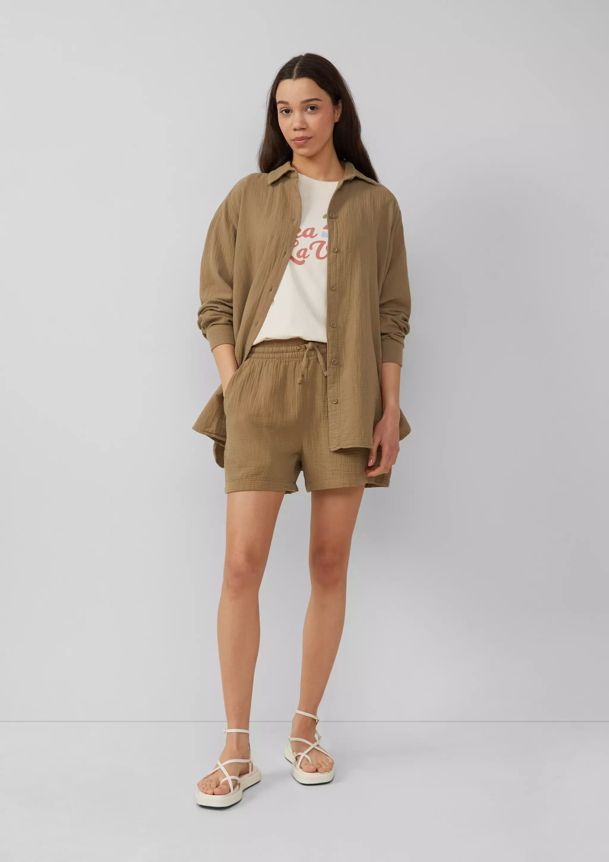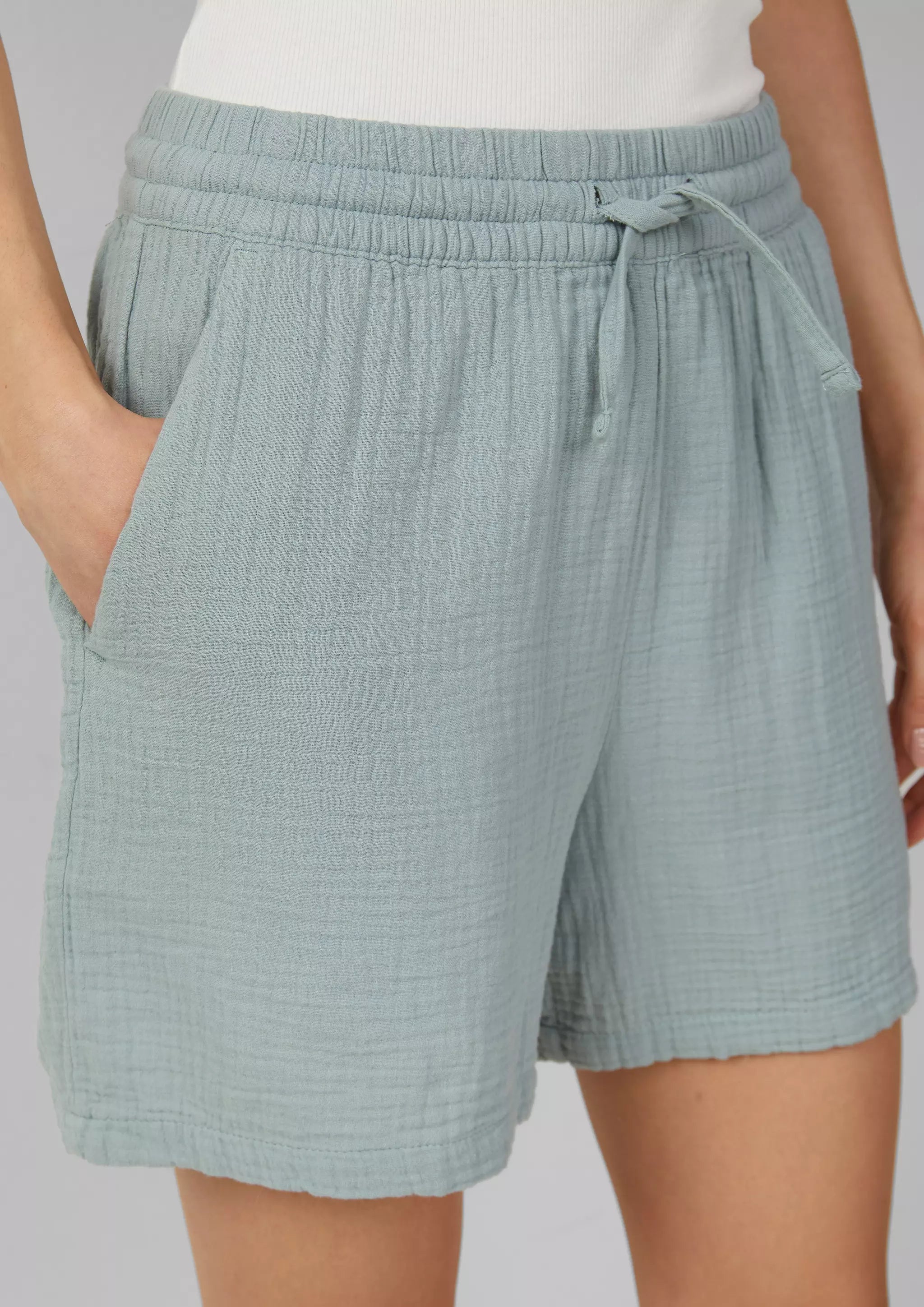 Luftig-leichte Musselin-Shorts für deine Sommertage! Perfekt für den Urlaub oder entspannte Wochenenden. Mit bequemem Elastikbund und praktischen Taschen – dein neuer Liebling für lässige Looks. Wie wär's mit einem Eis in der Sonne?
