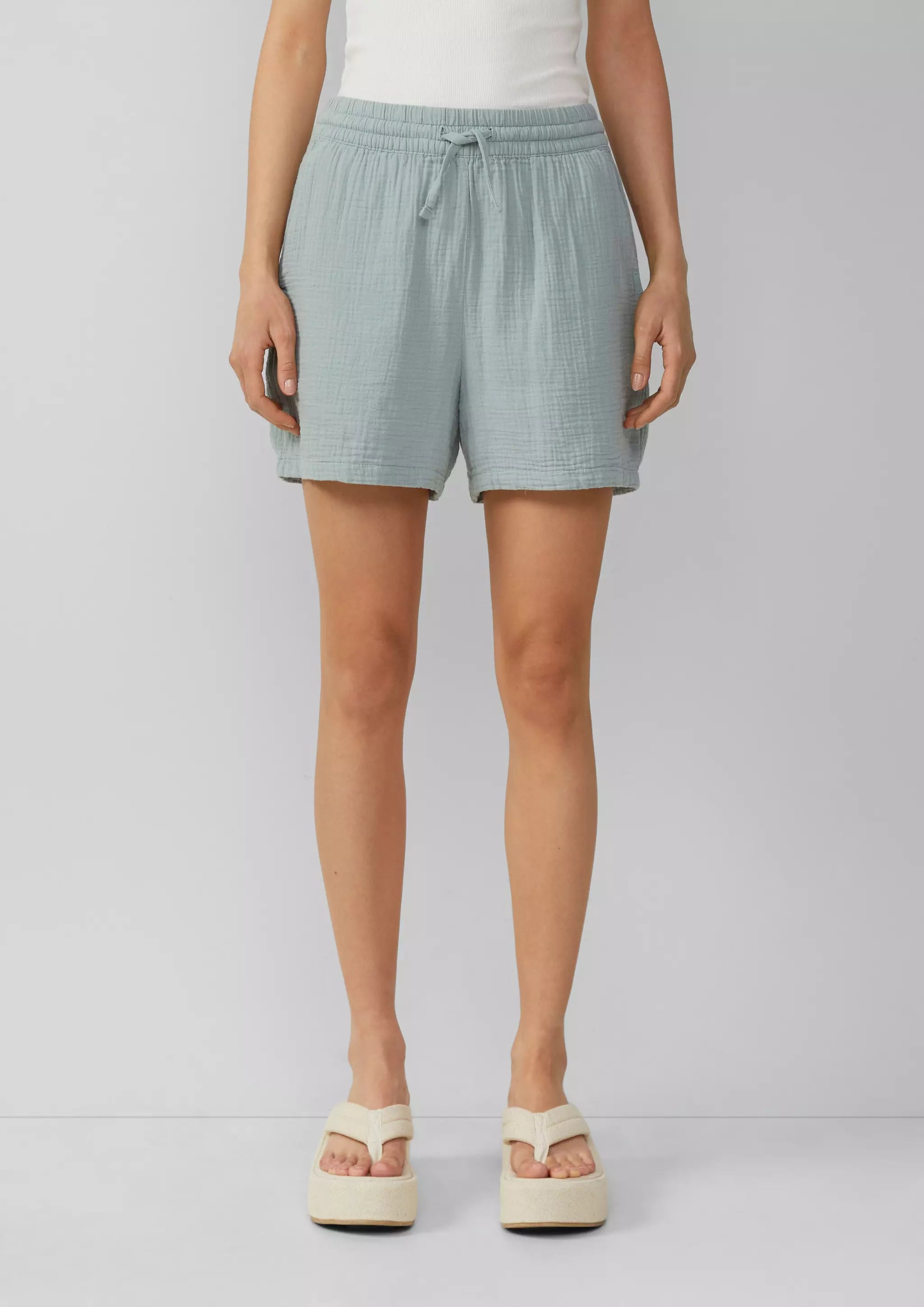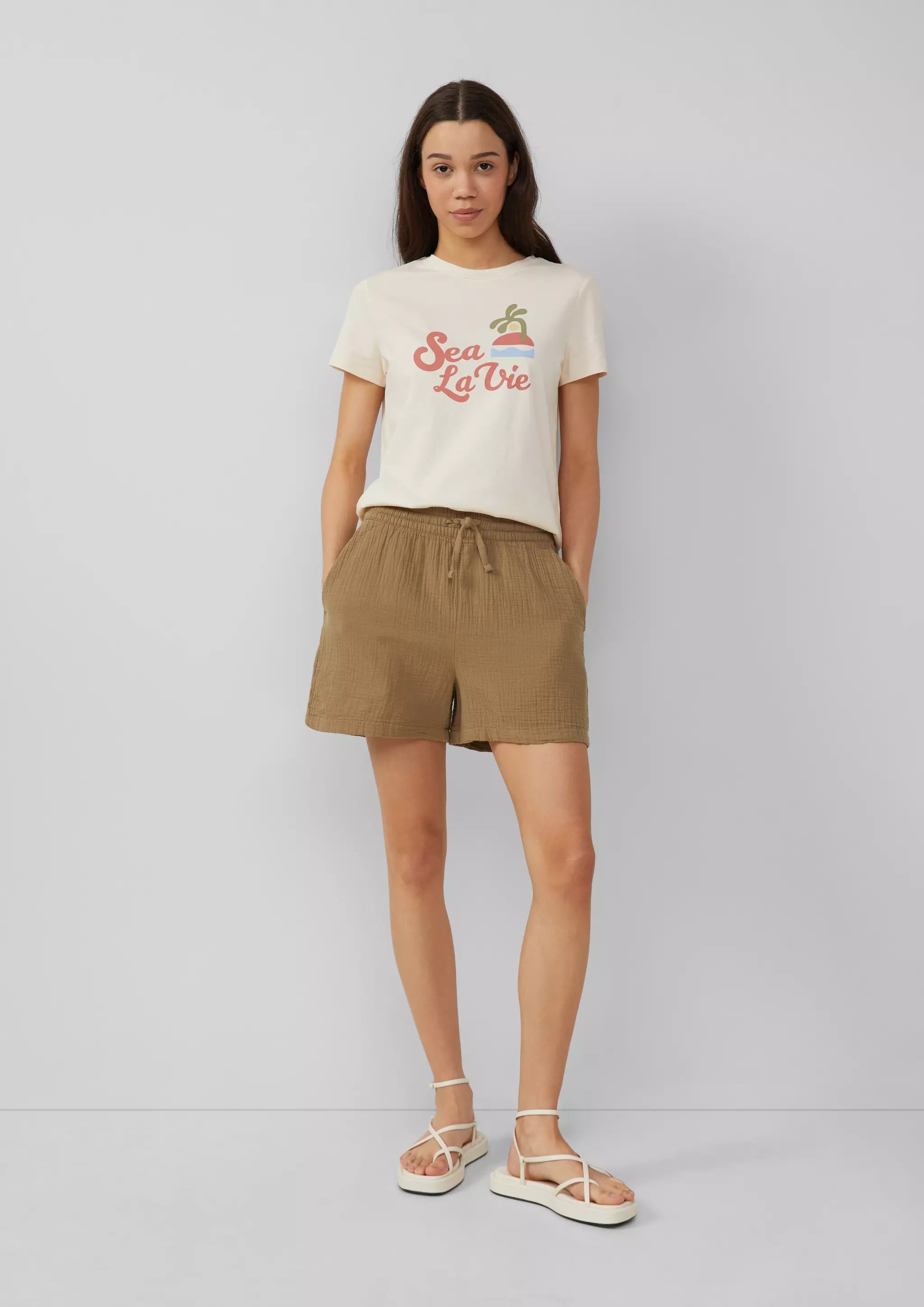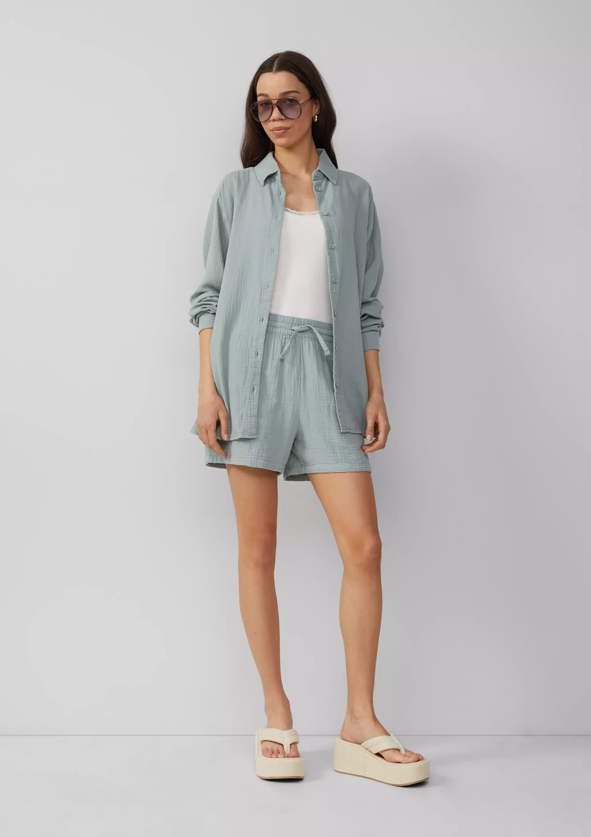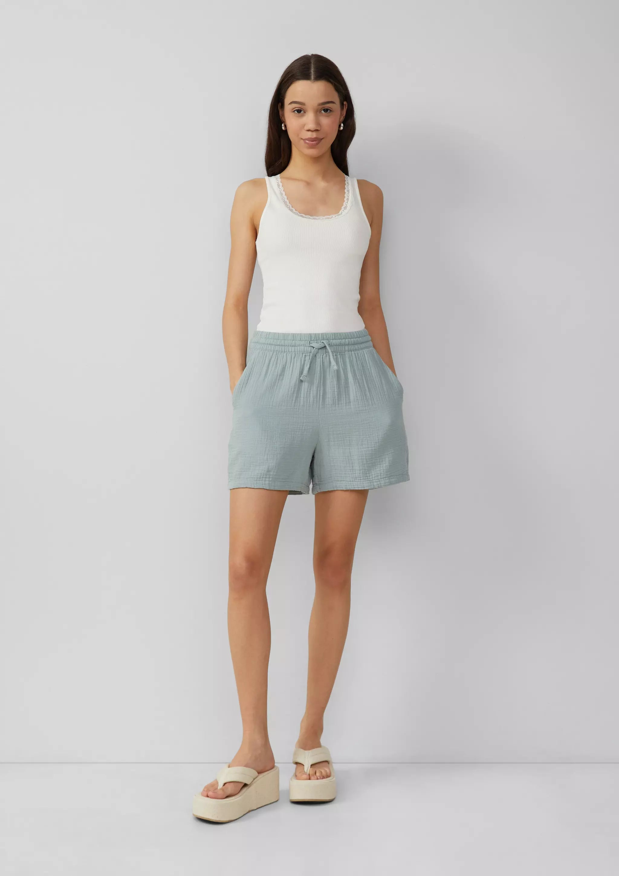 Luftig-leichte Musselin-Shorts für deine Sommertage! Perfekt für den Urlaub oder entspannte Wochenenden. Mit bequemem Elastikbund und praktischen Taschen – dein neuer Liebling für lässige Looks. Wie wär's mit einem Eis in der Sonne?