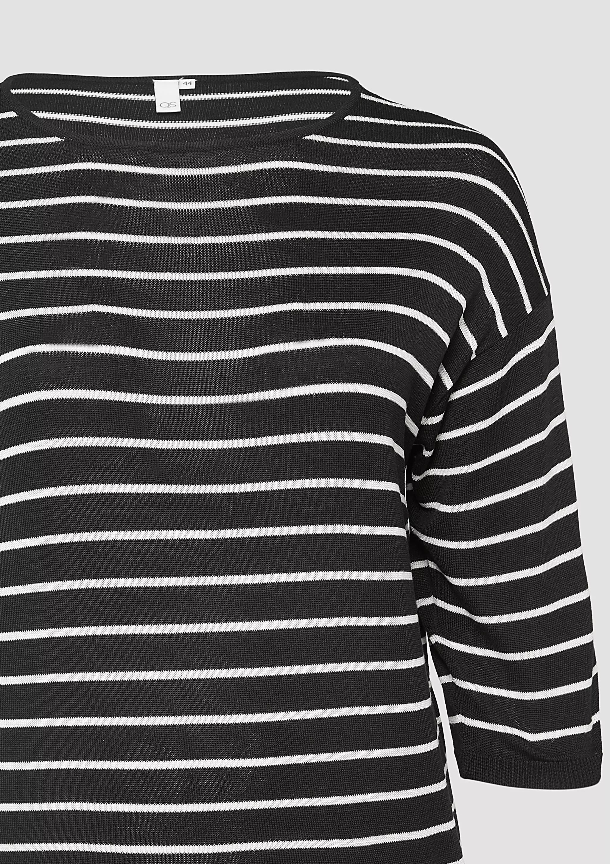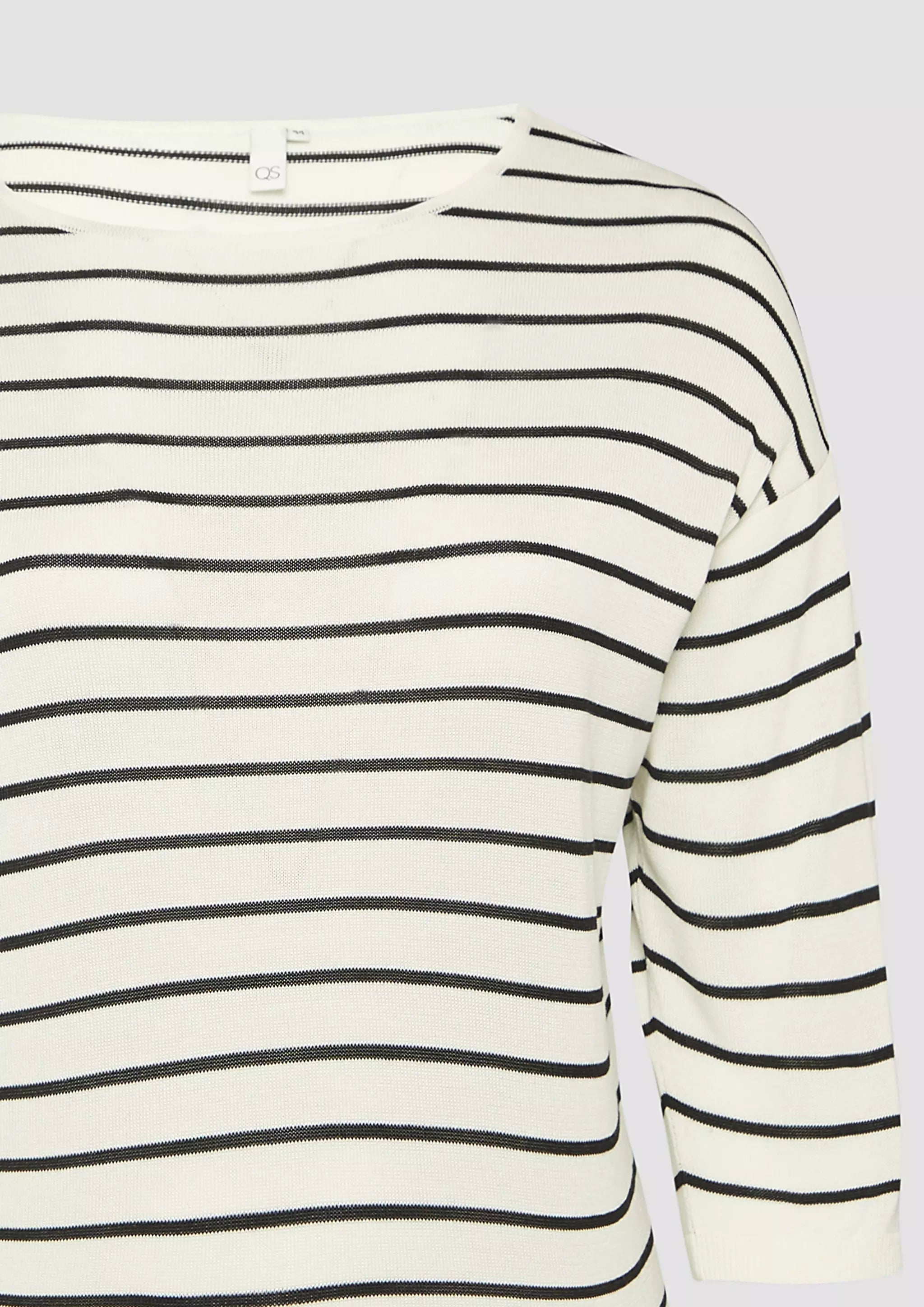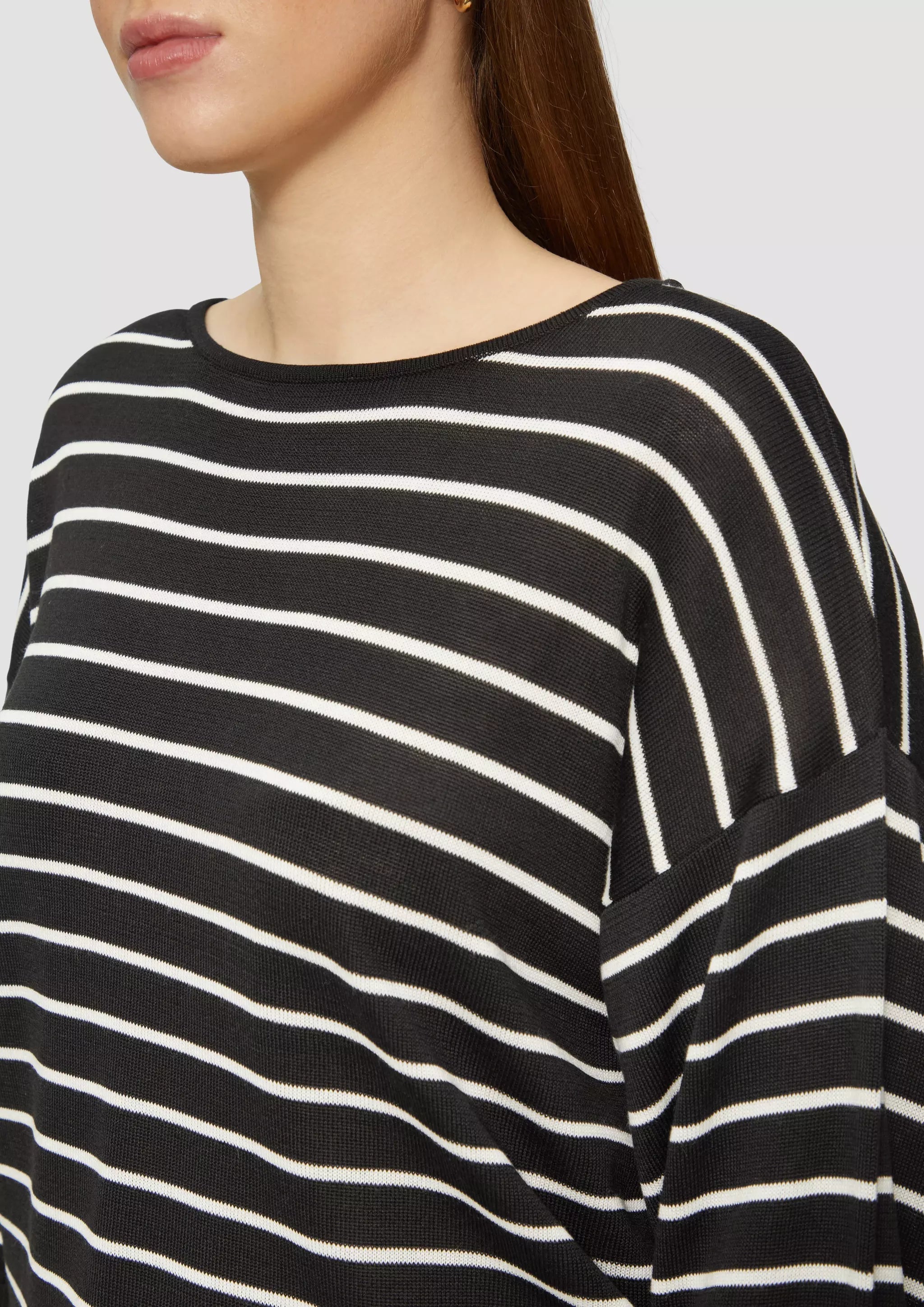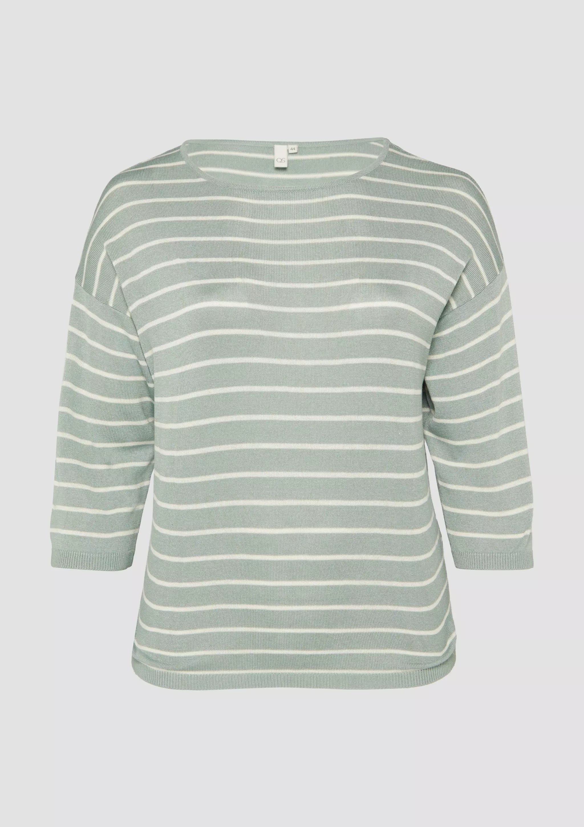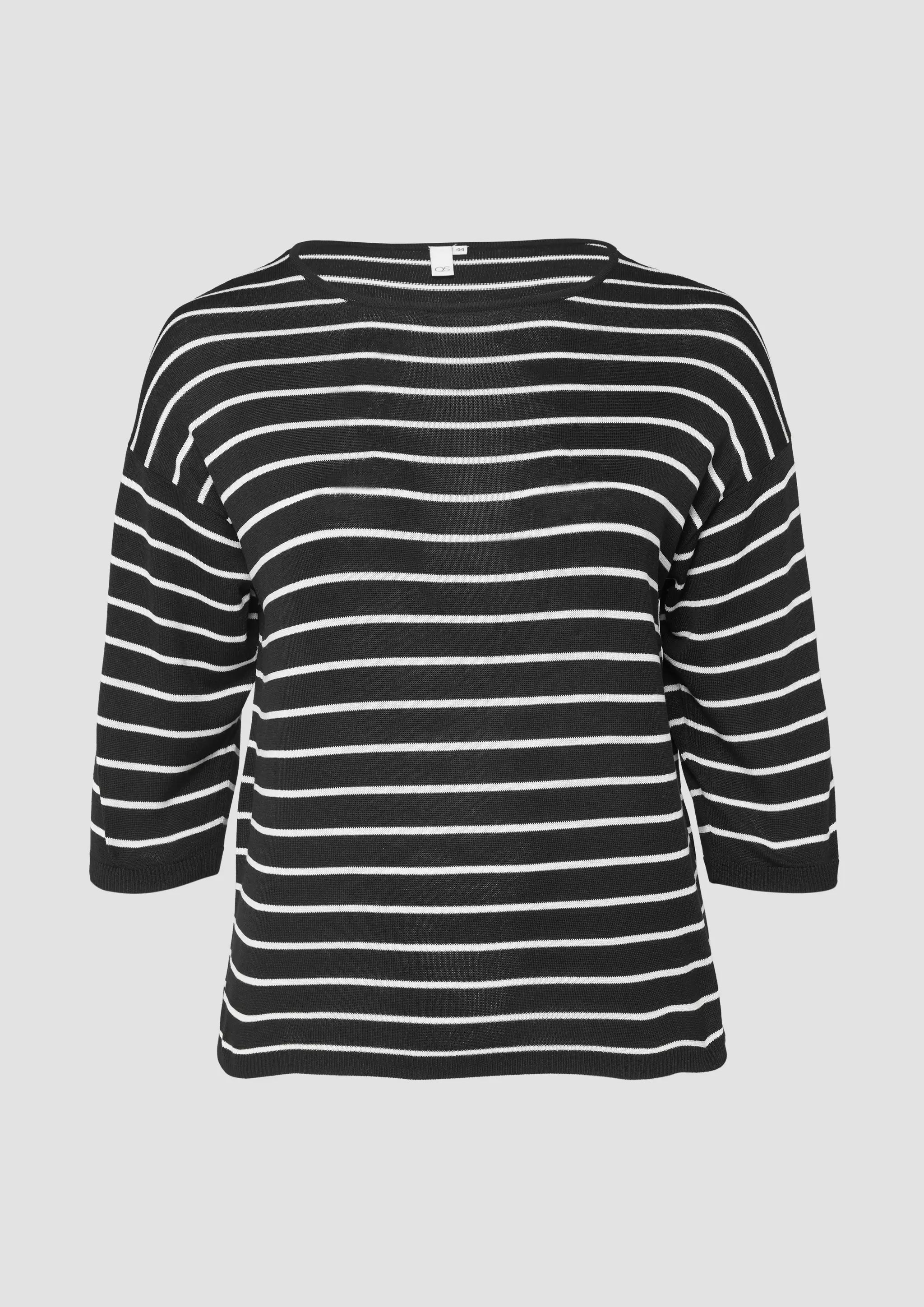 Geringelter Feinstrickpullover mit überschnittener Schulter