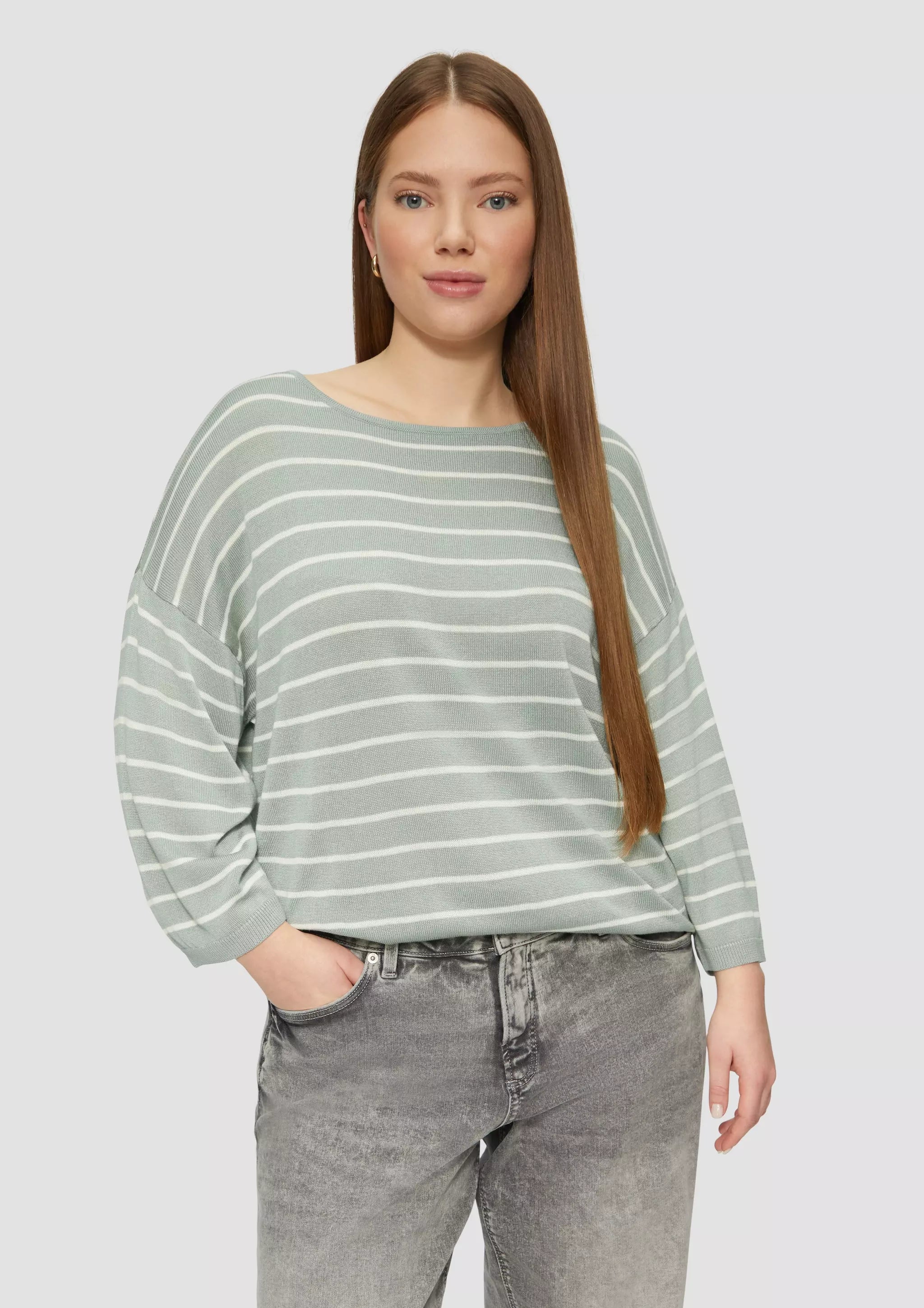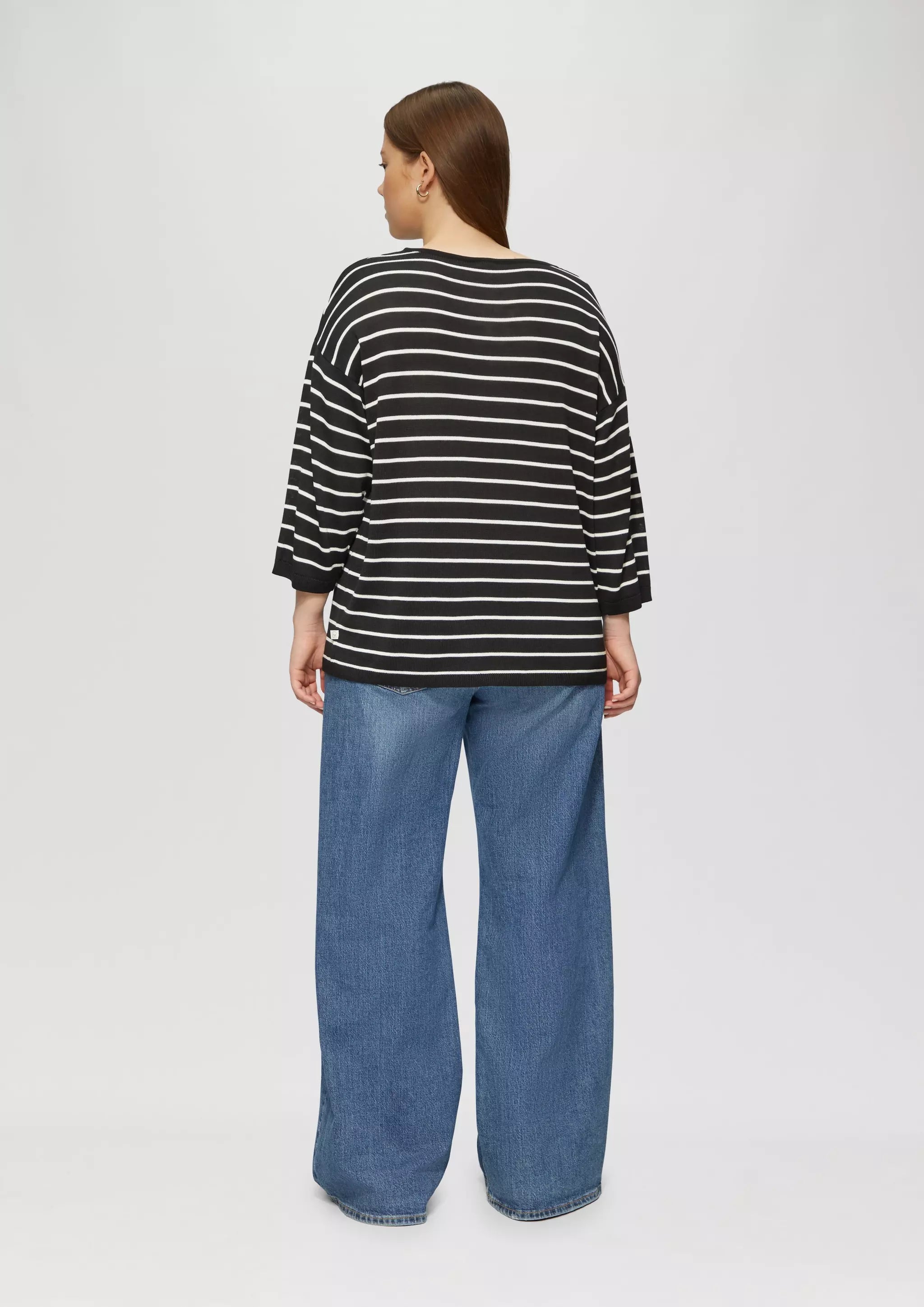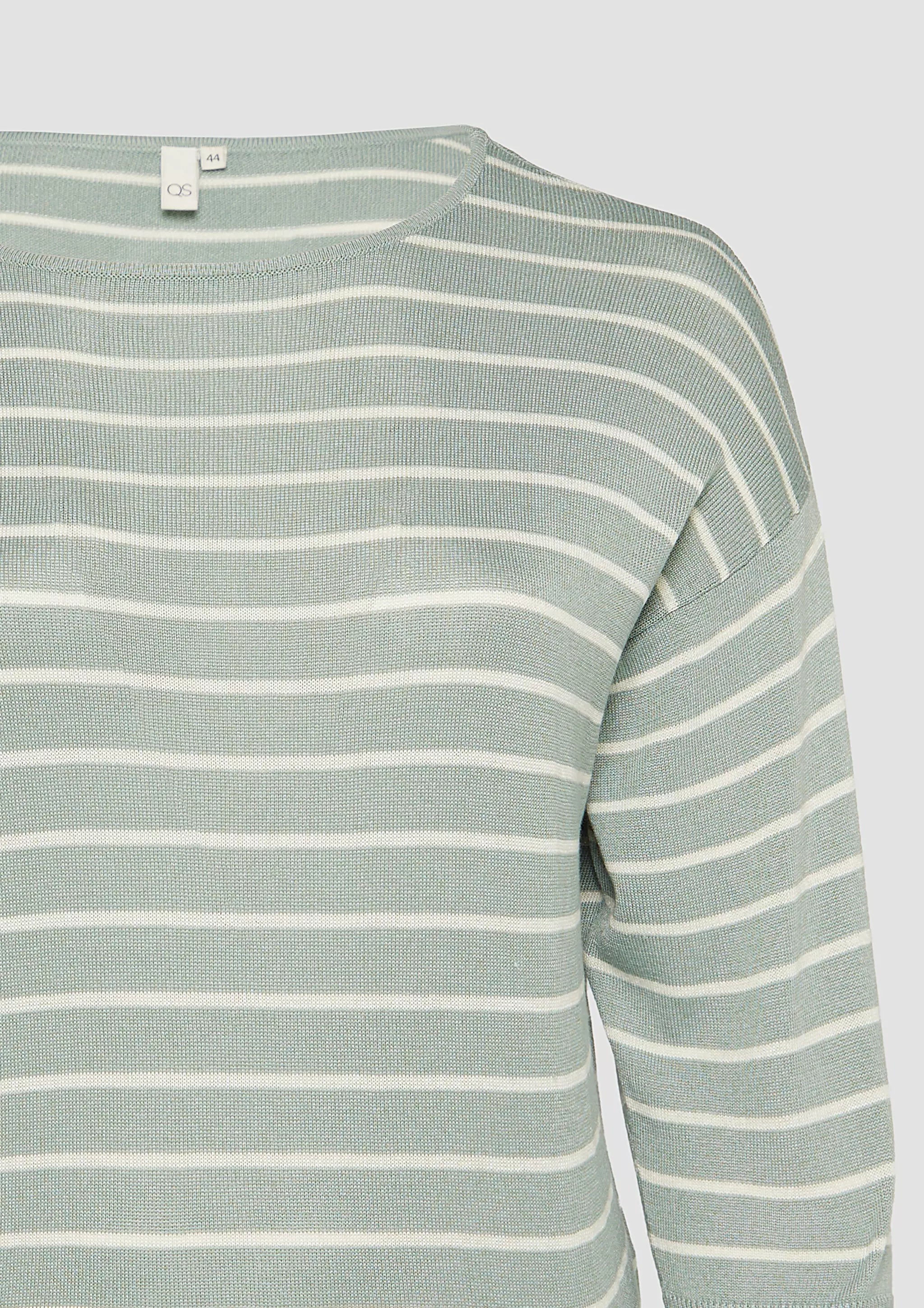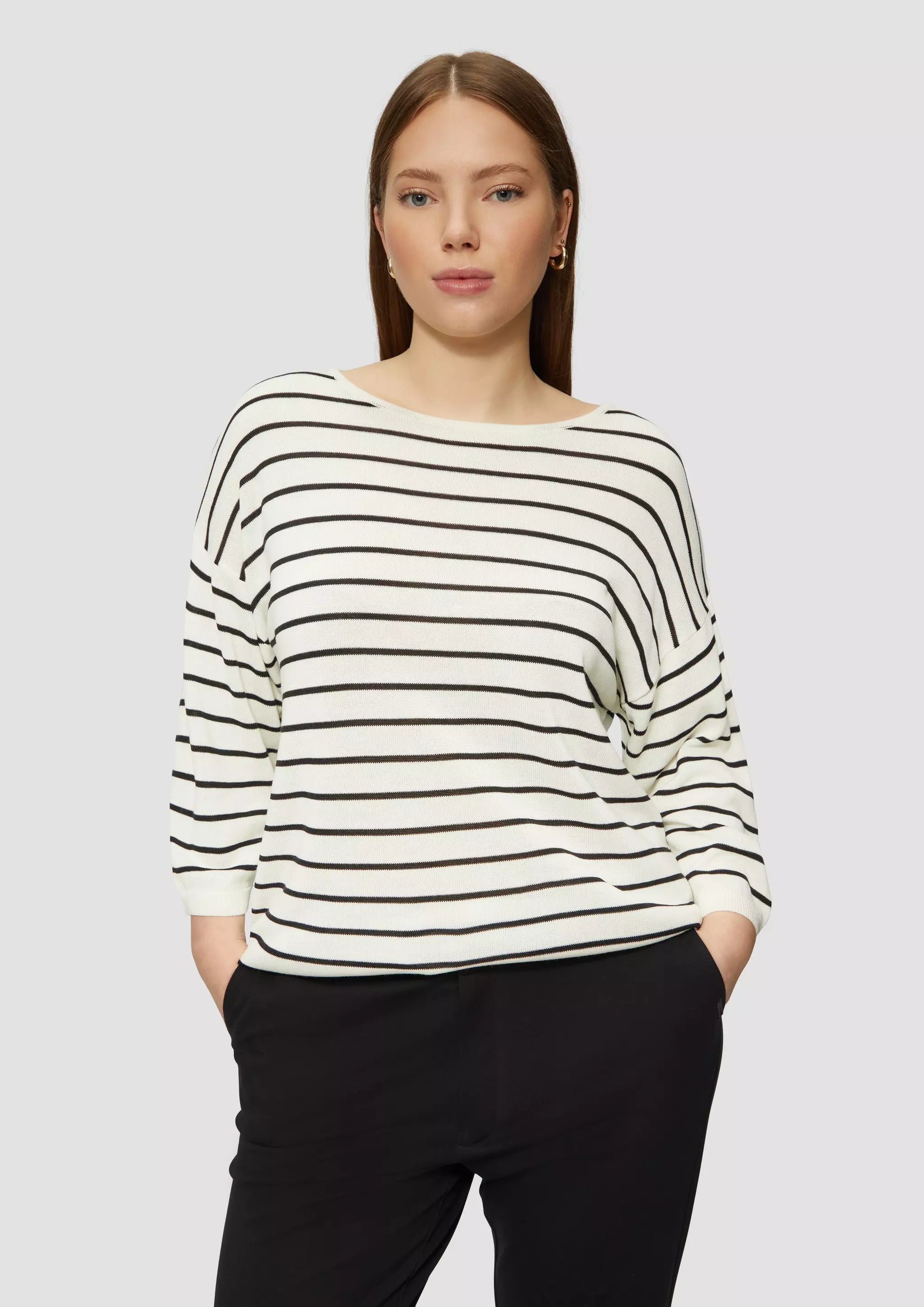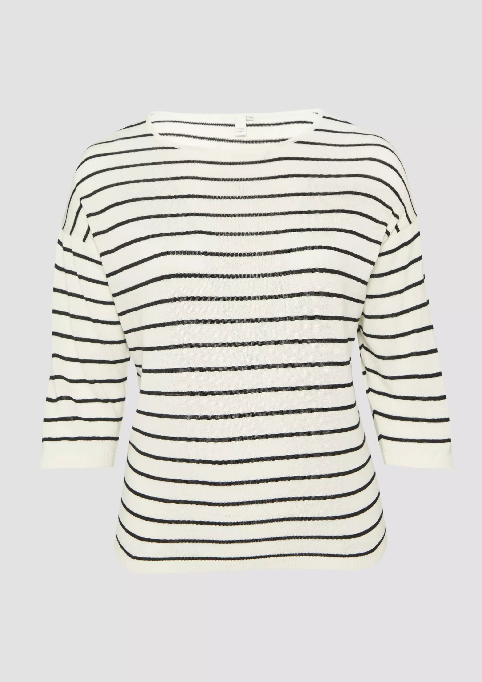 Geringelter Feinstrickpullover mit überschnittener Schulter