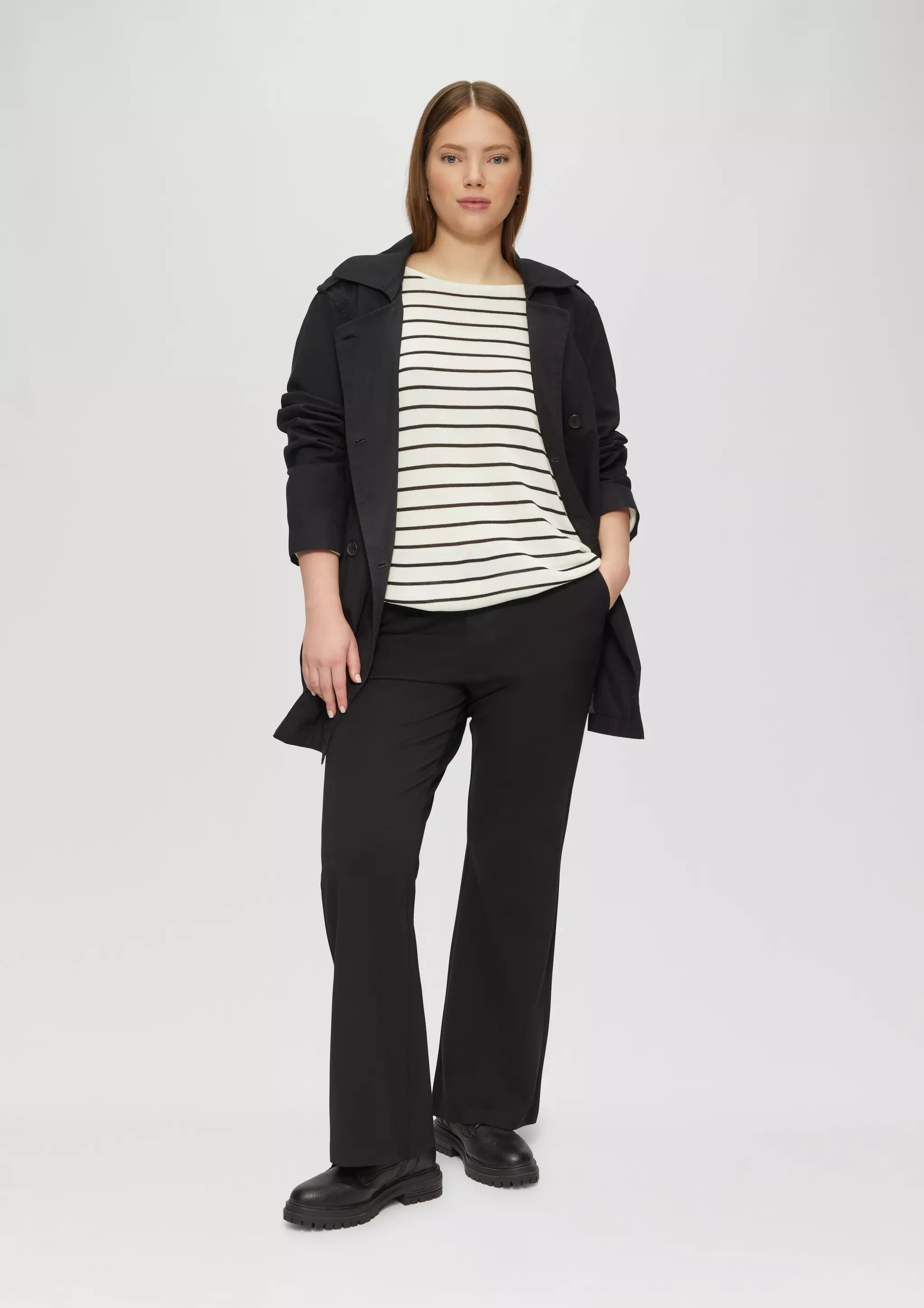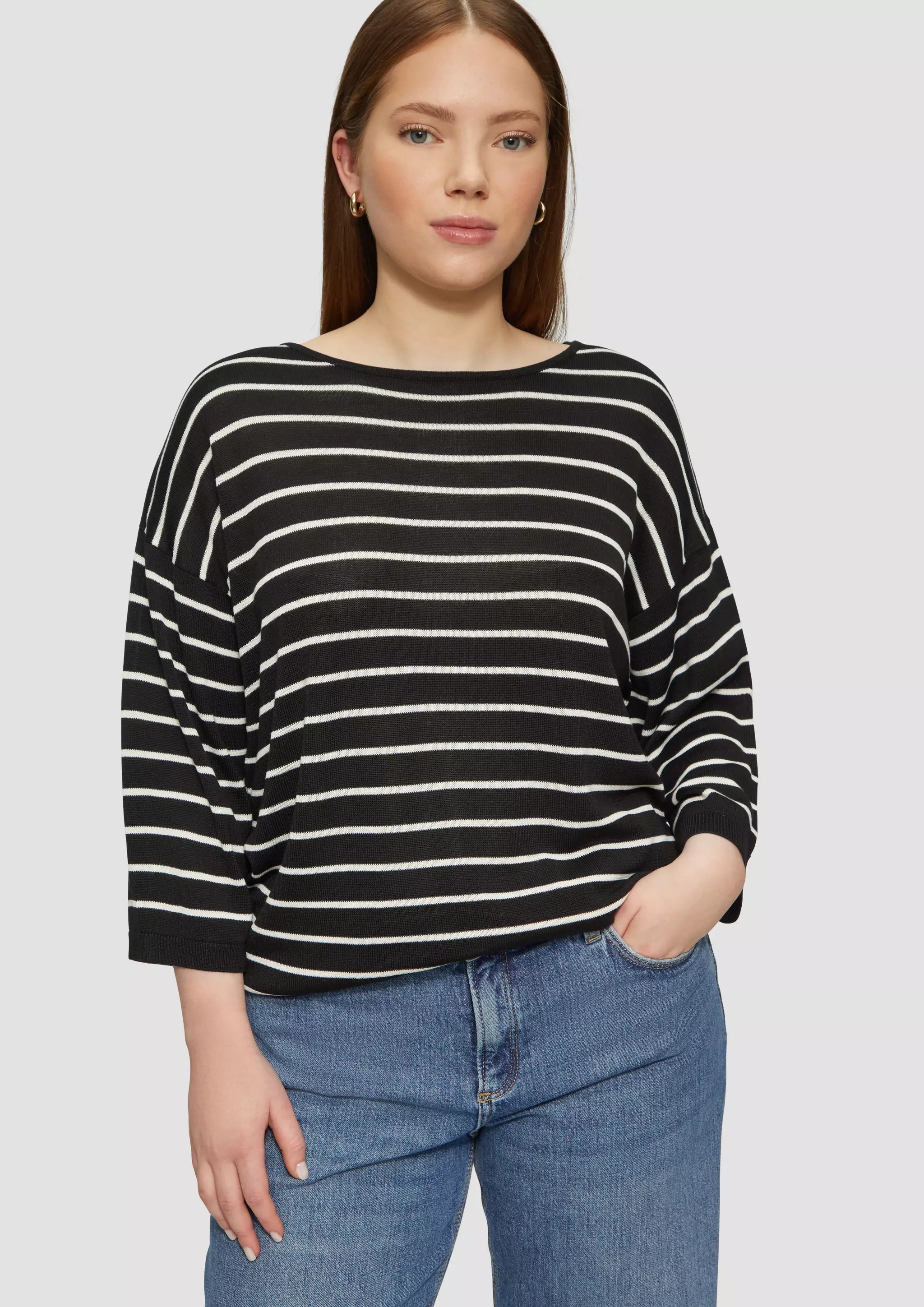 Geringelter Feinstrickpullover mit U-Boot-Ausschnitt: Dein neuer Liebling für entspannte Tage! Ob beim Kaffee mit Freund:innen oder gemütlich zu Hause – dieser lässige Pullover im Loose Fit passt immer. Wie stylen? Ganz einfach: zur Jeans oder über ein Kleid!