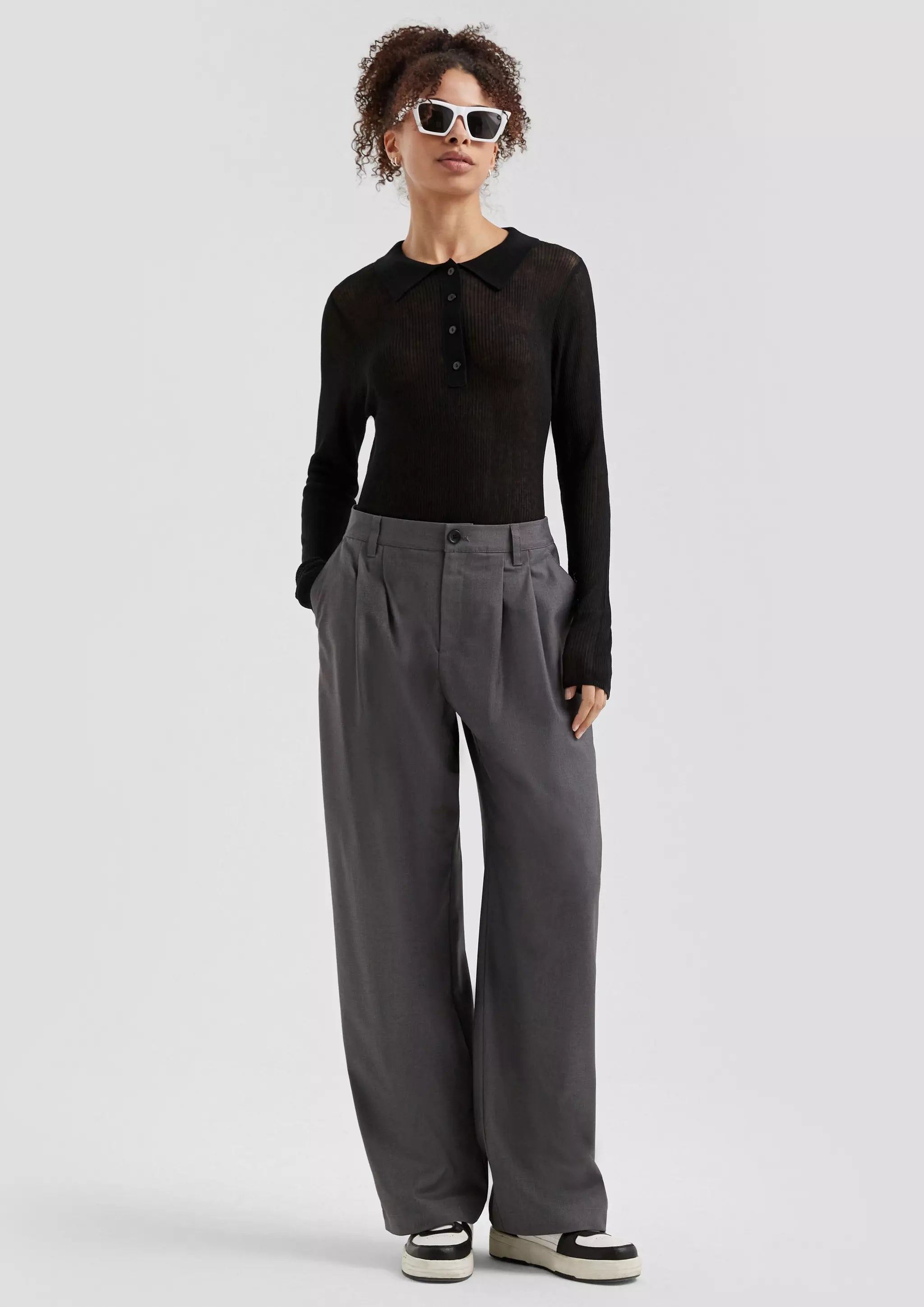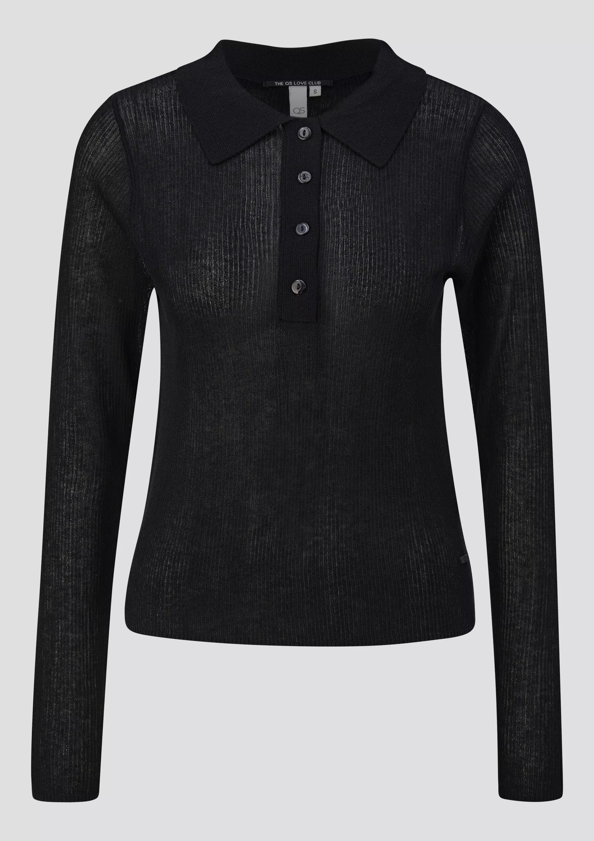 Leicht transparenter Pullover mit Knopfleiste und Polokragen