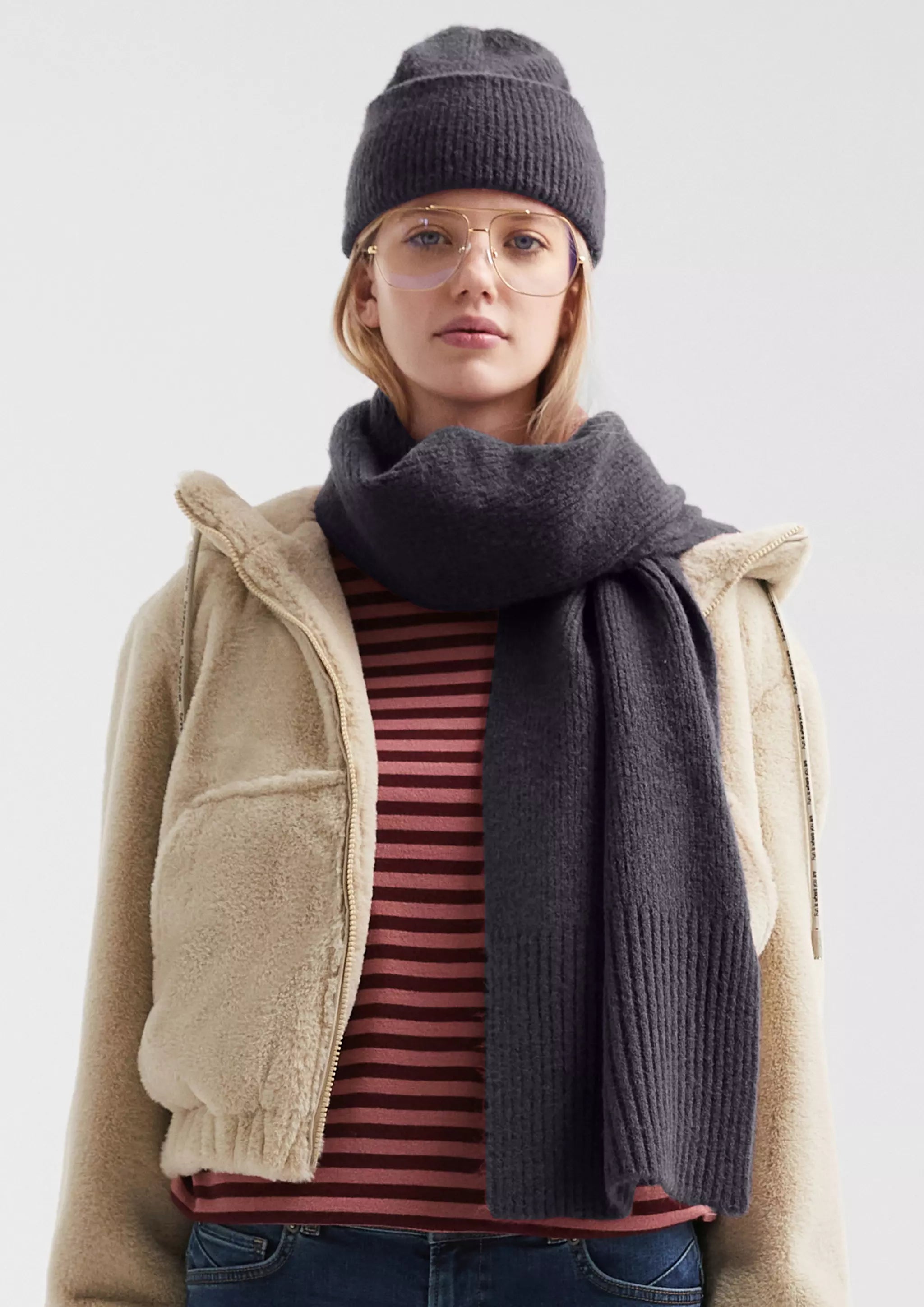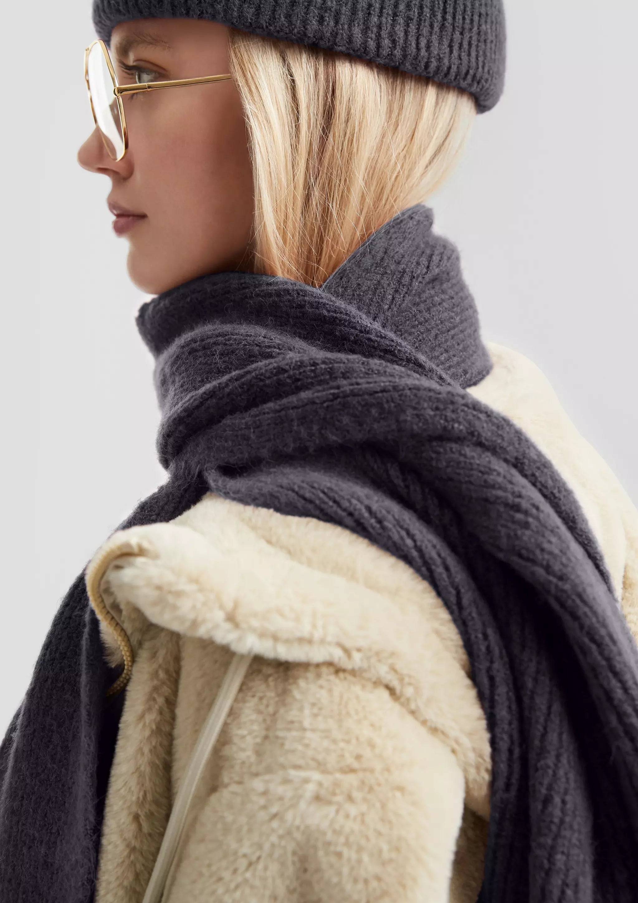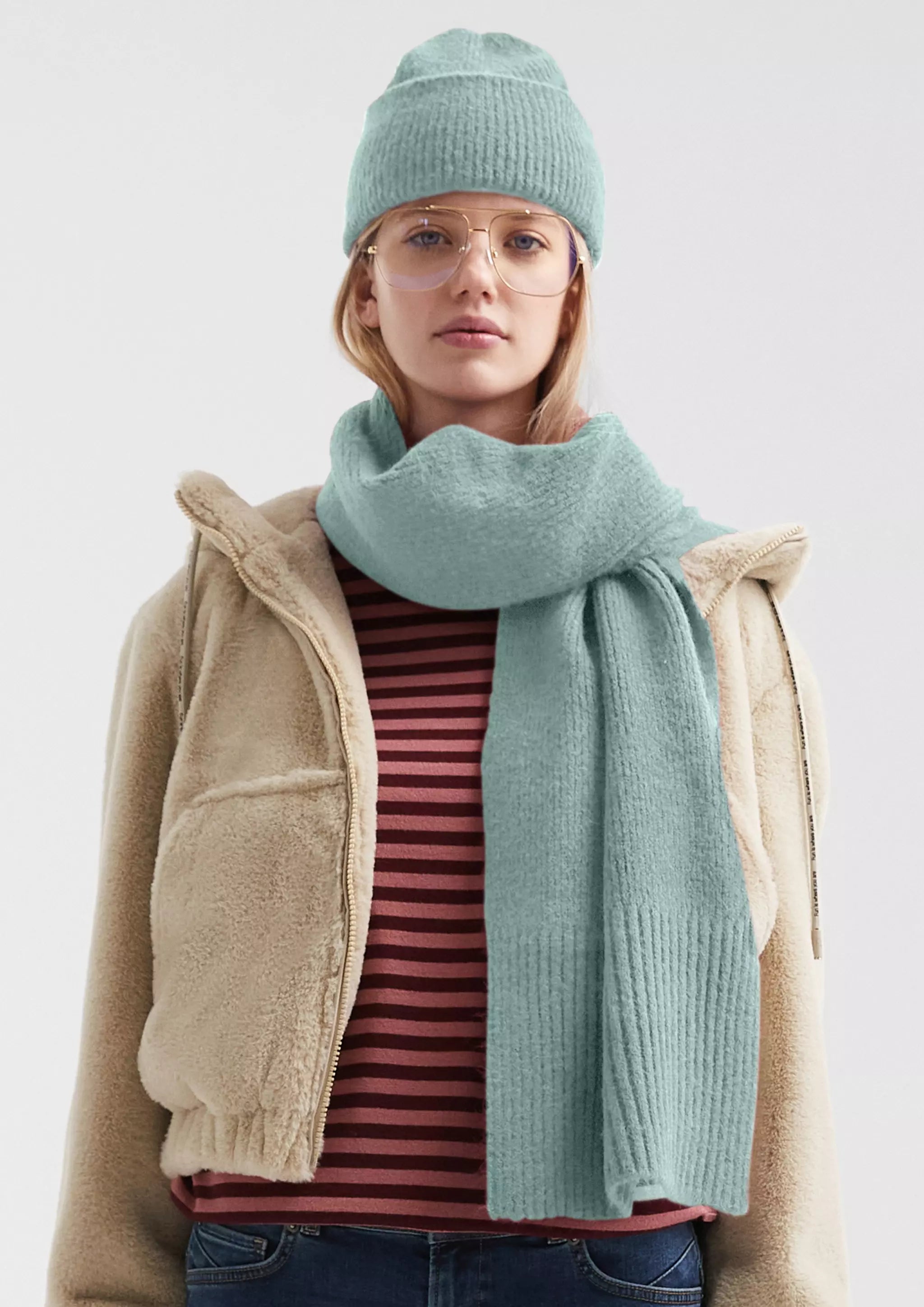 Dieser weiche Strickschal aus Polyacrylmix ist ein stylisches Accessoire für cosy Fits. Mit seiner Rippblende und dem kuscheligen Material bringt er Gemütlichkeit in deinen Look - perfekt für Coffee Dates oder Shopping-Trips..