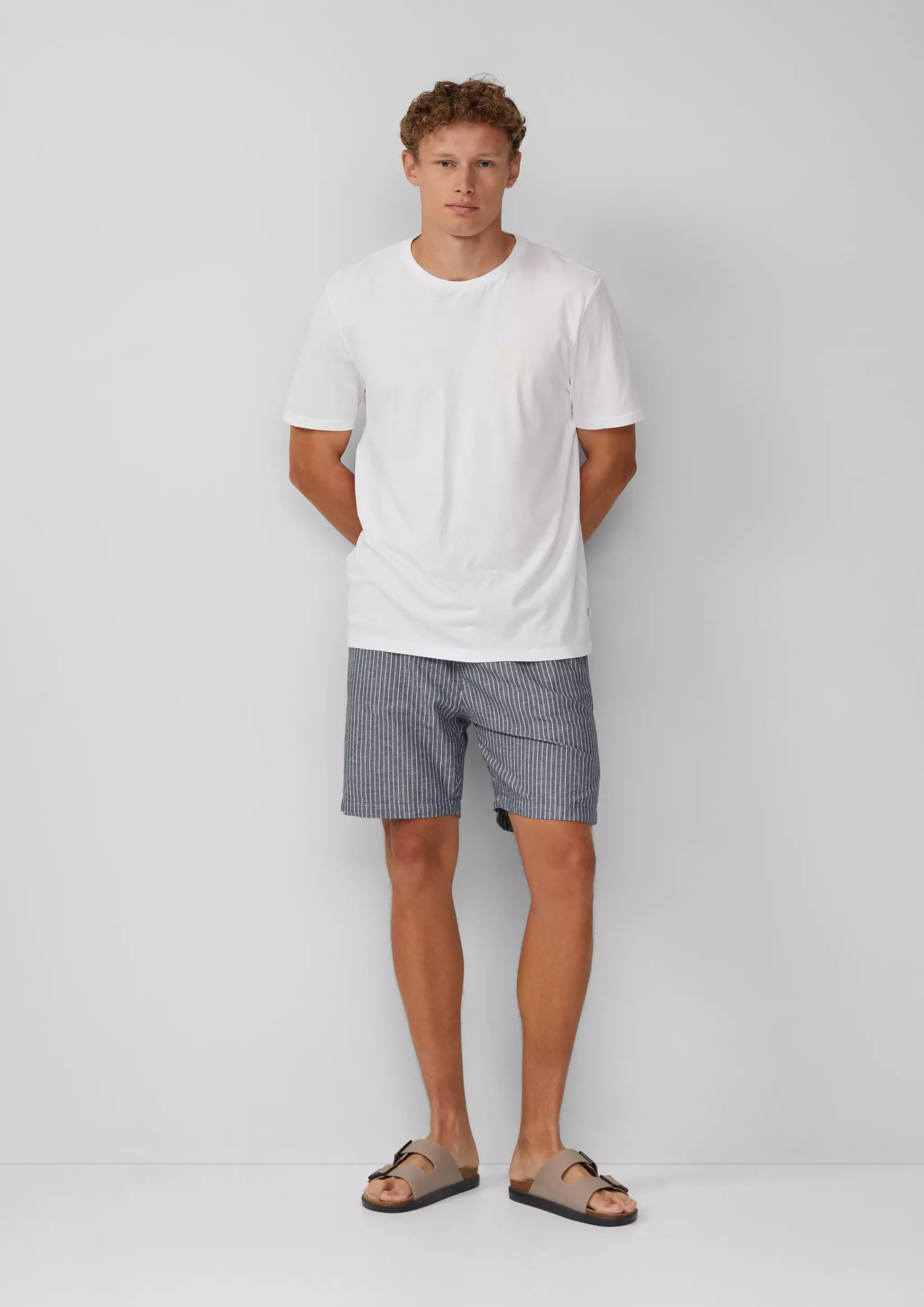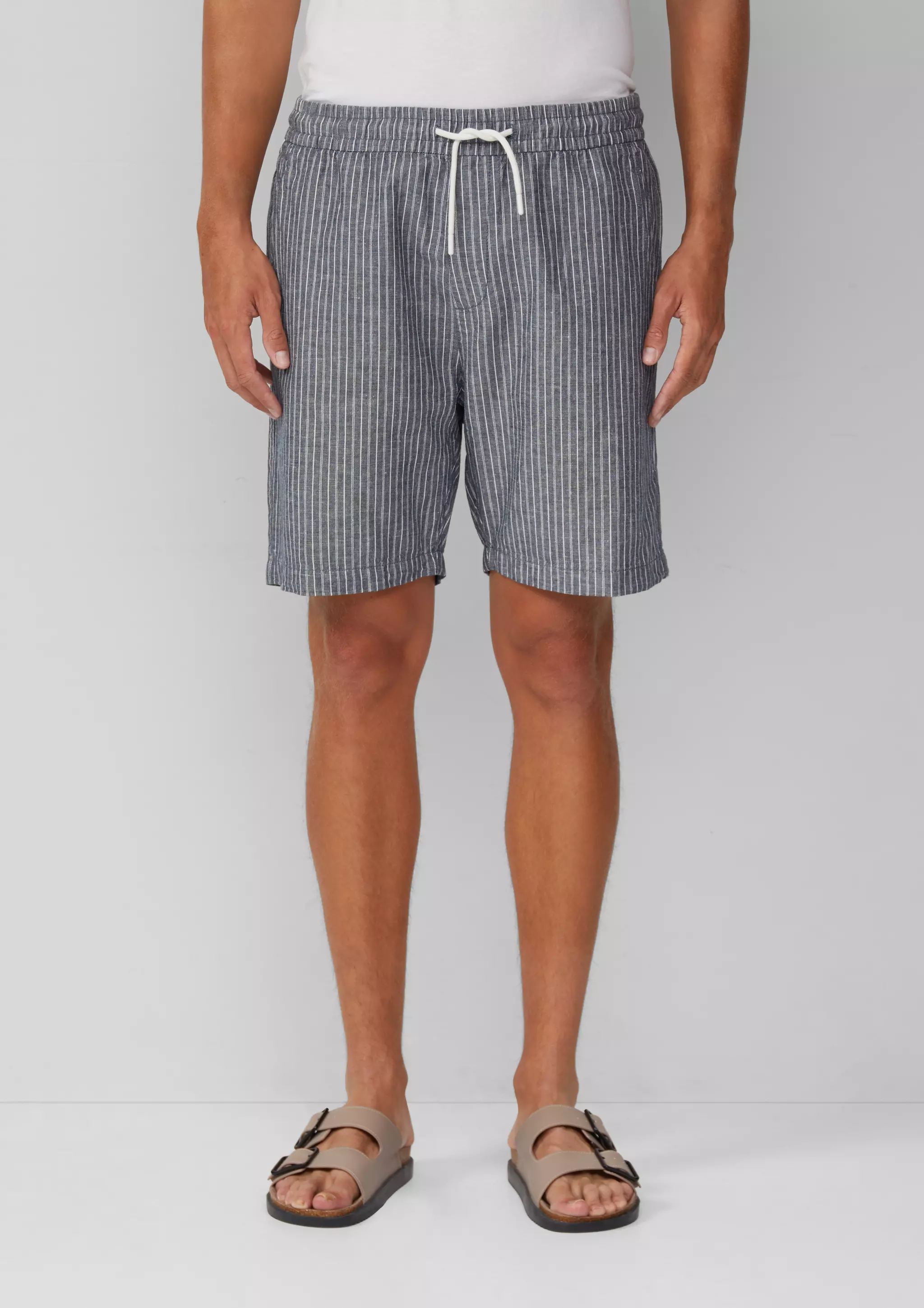 Lässige Bermuda-Shorts für coole Sommertage! Aus gestreiftem Leinenmix, mit elastischem Bund und Tunnelzug. Perfekt für den Strand oder die City. Dein neuer Lieblings-Begleiter für entspannte Momente und stylische Outfits.