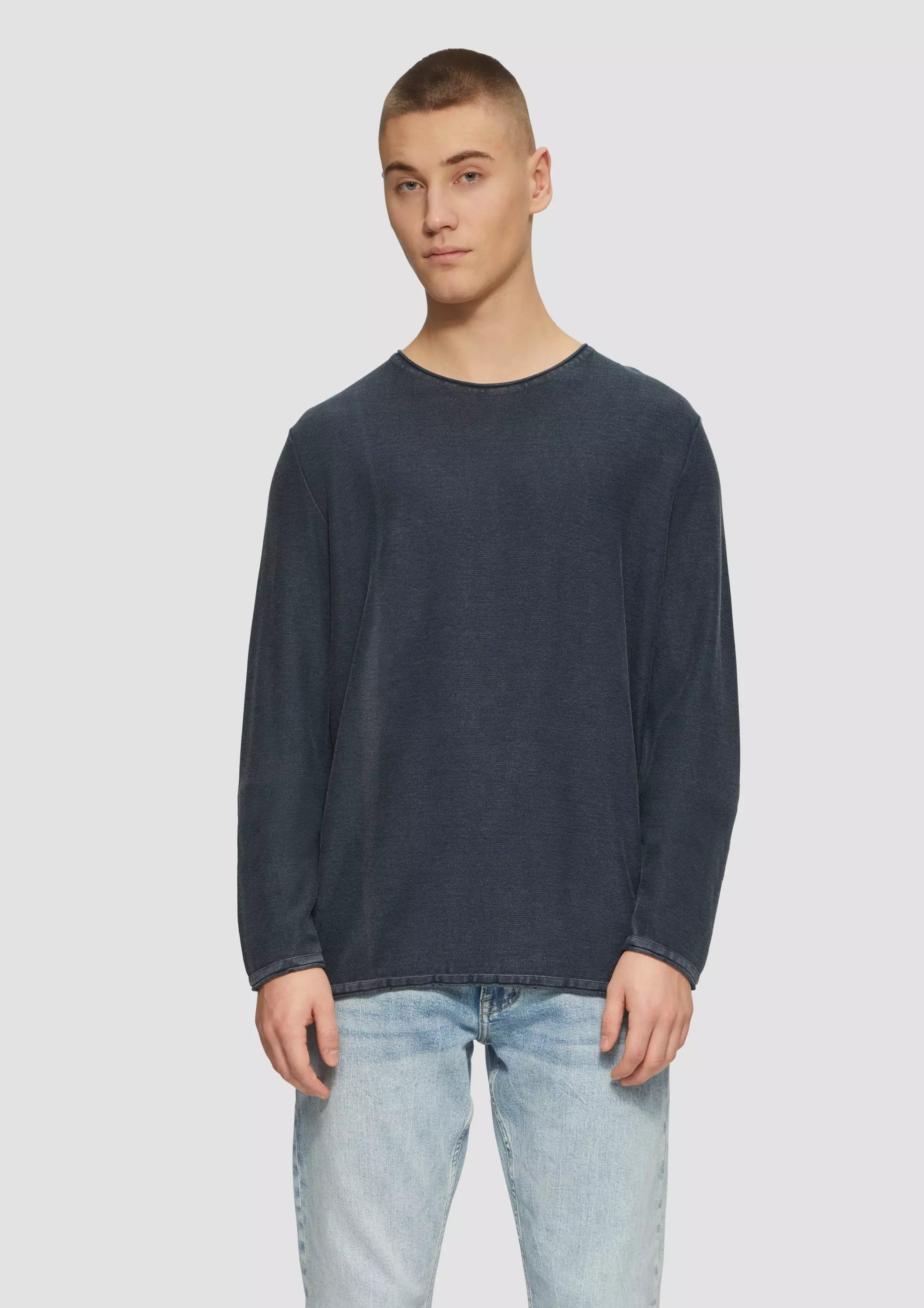 Cosy und alltagstauglich: Dieser gewaschene Strickpullover aus 100% Baumwolle ist dein neuer Liebling! Mit Rundhalsausschnitt und Rollsaum passt er perfekt zu deinem Casual-Look. Bereit für ein spontanes Kaffeedate?