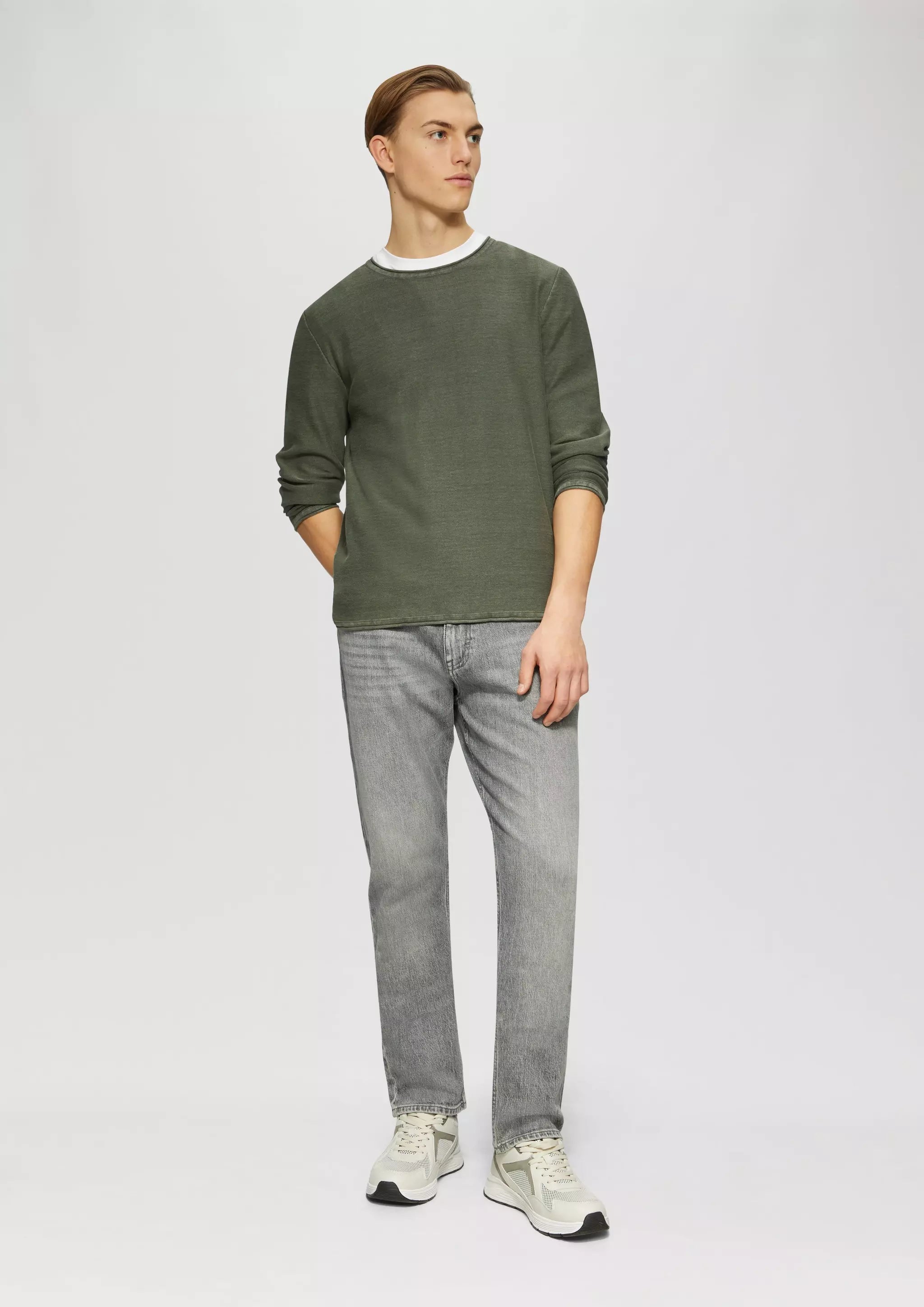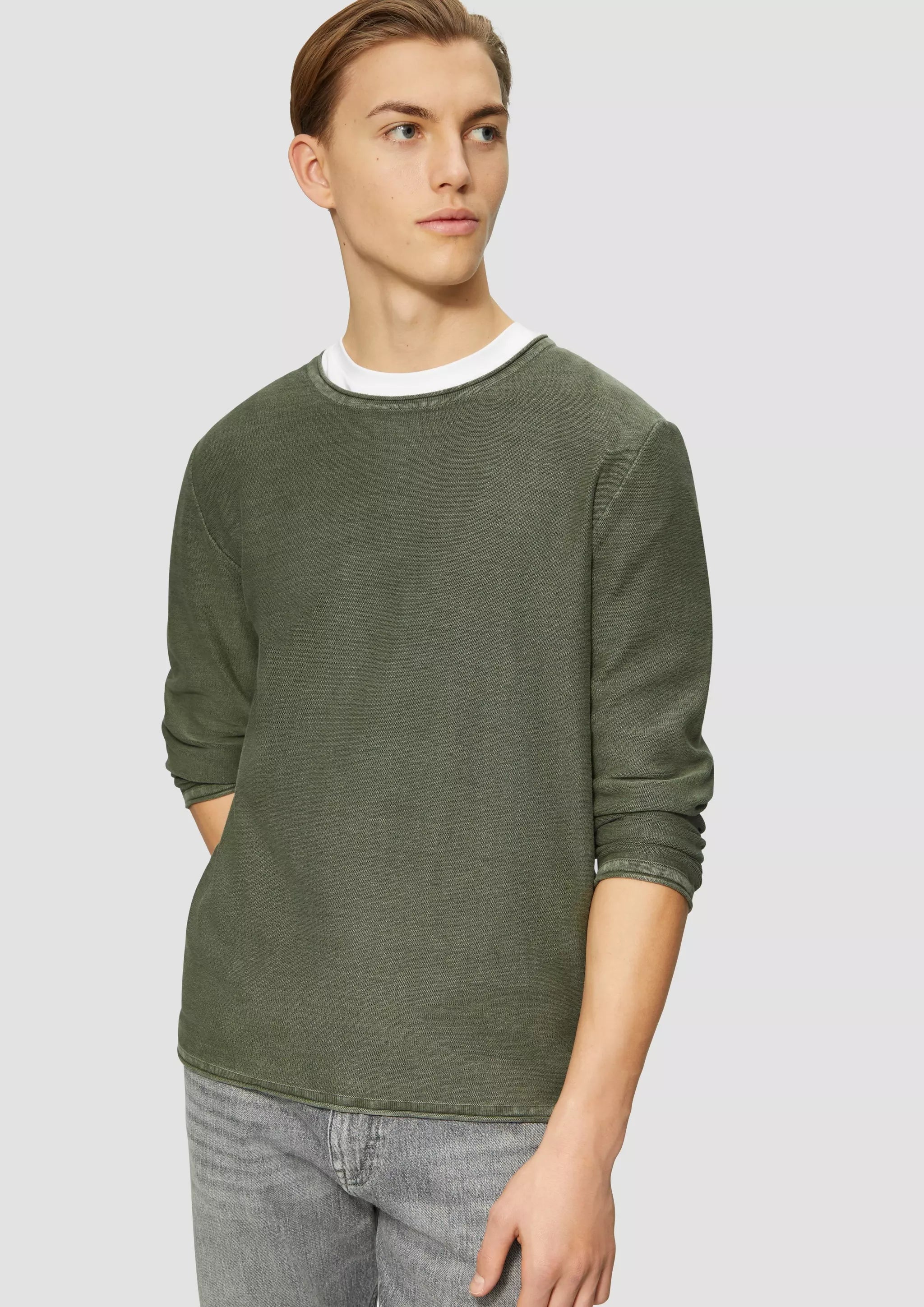 Gewaschener Strickpullover mit Rollkante