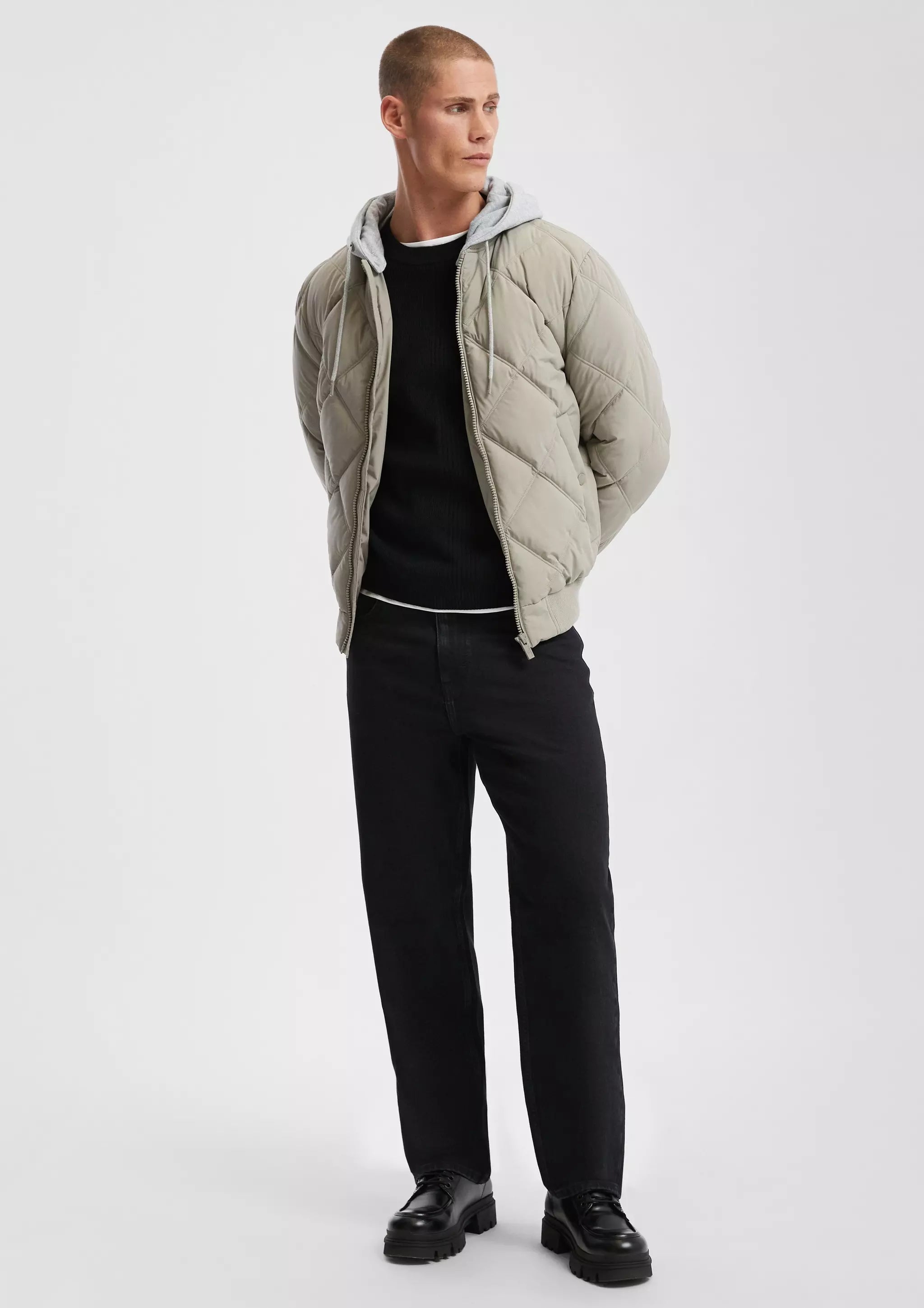 Wattierte Bomberjacke mit abnehmbarer Jerseykapuze