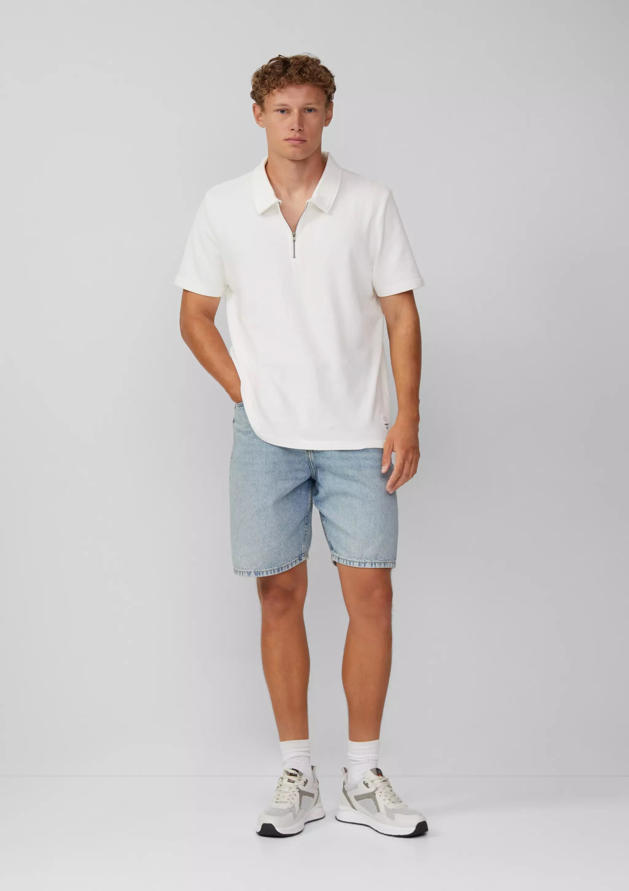 Gewaschenes Polo-Shirt mit Reißverschluss aus Strukturjersey