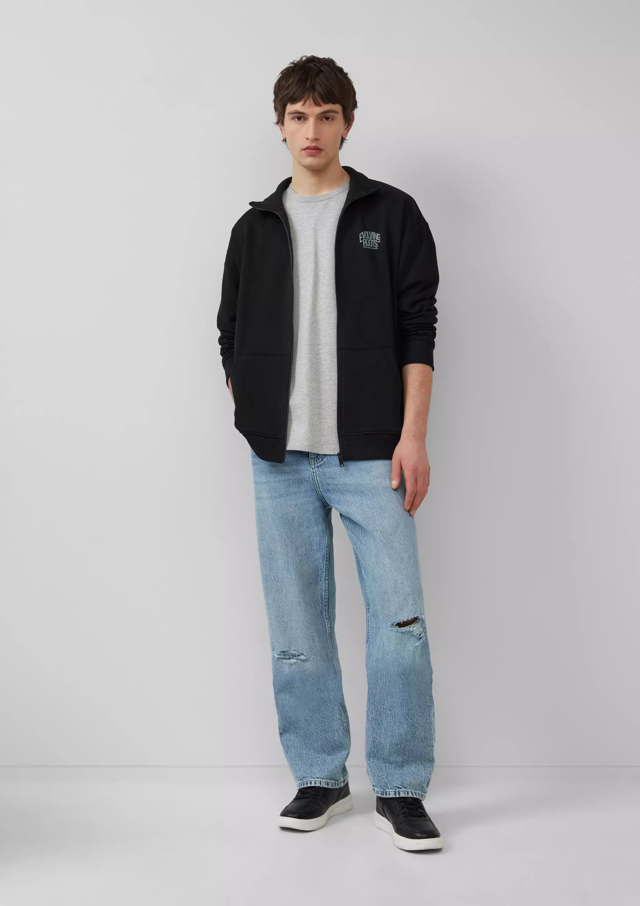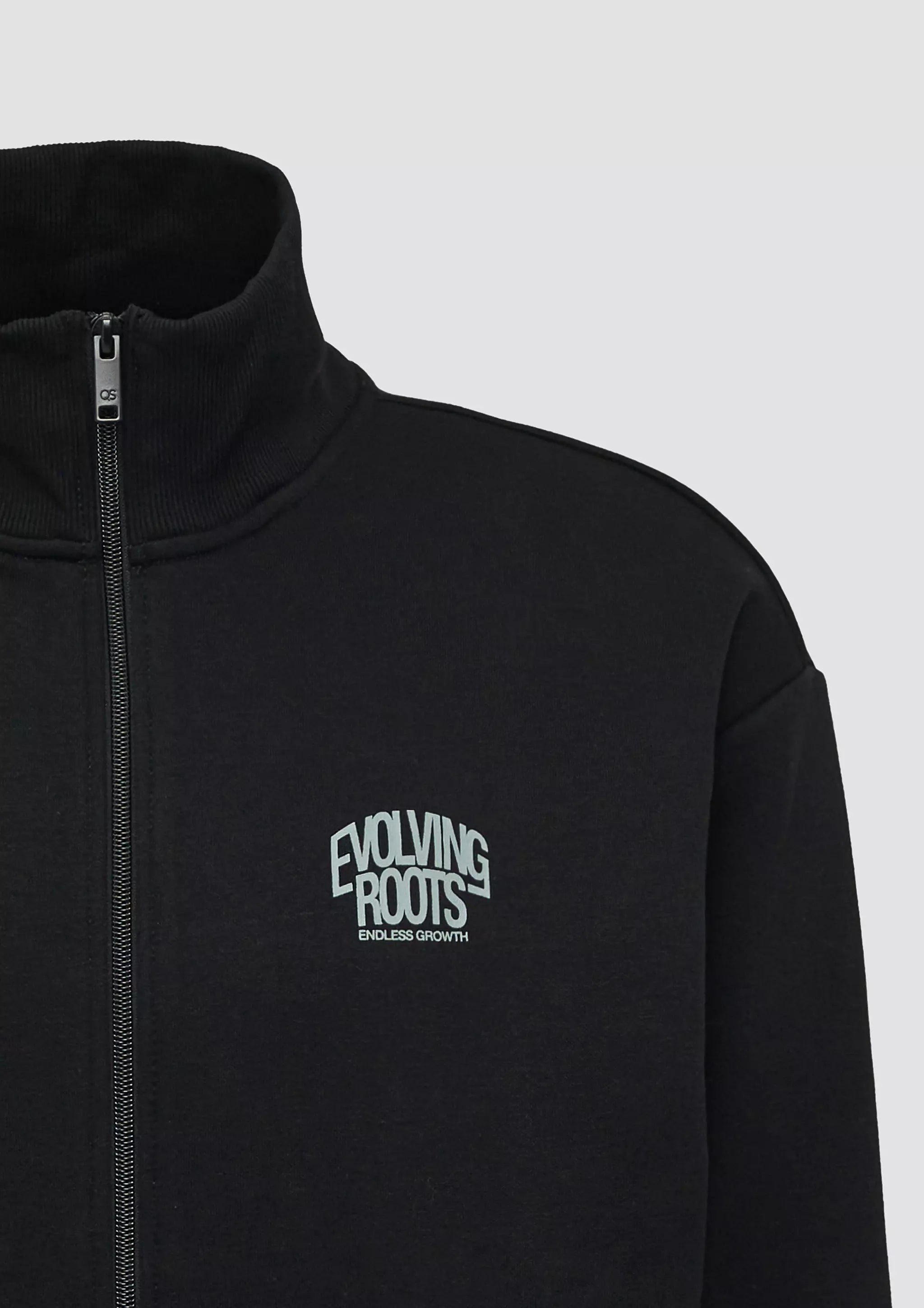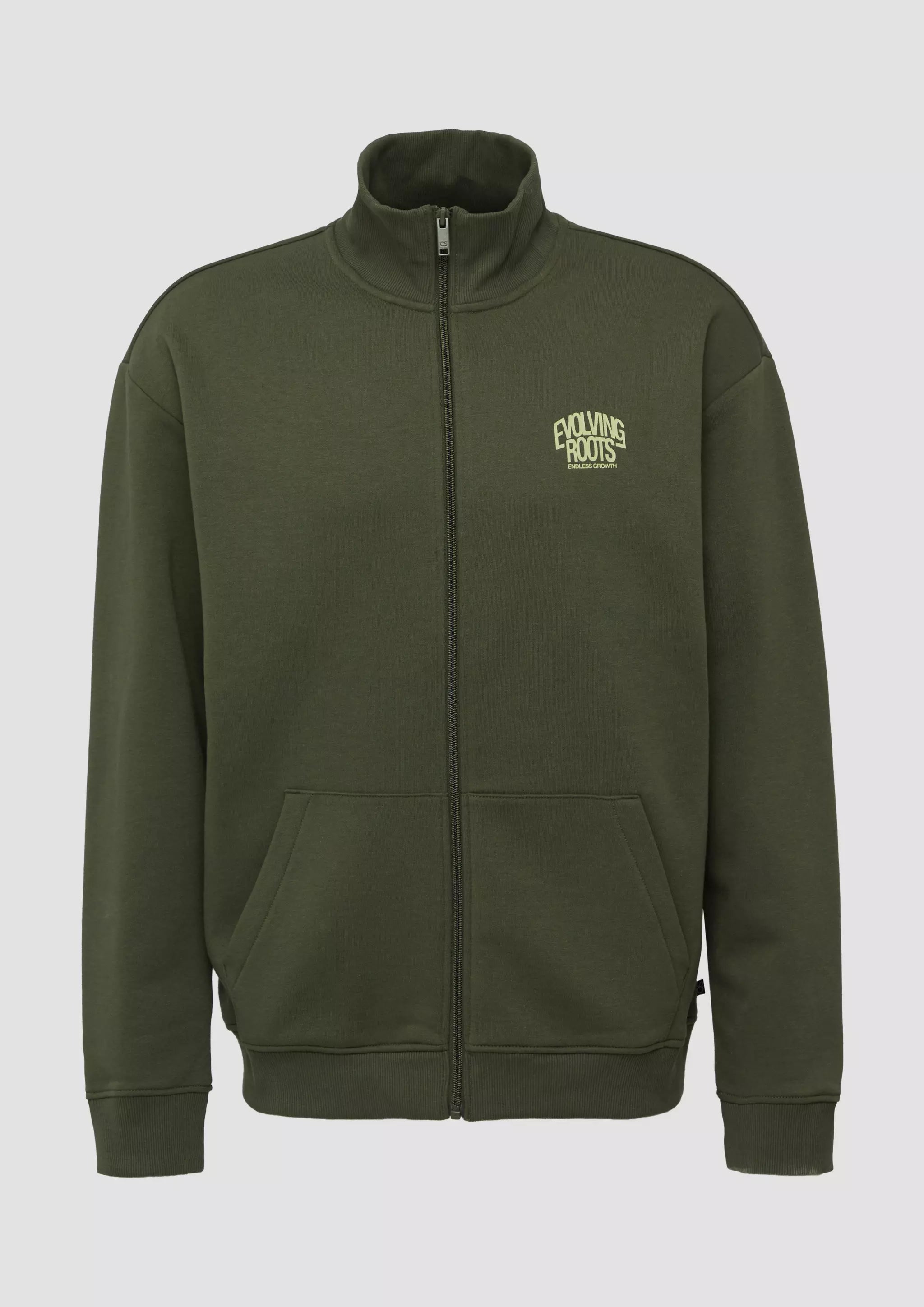 Sweatshirt-Jacke mit Stehkragen und Frontprint