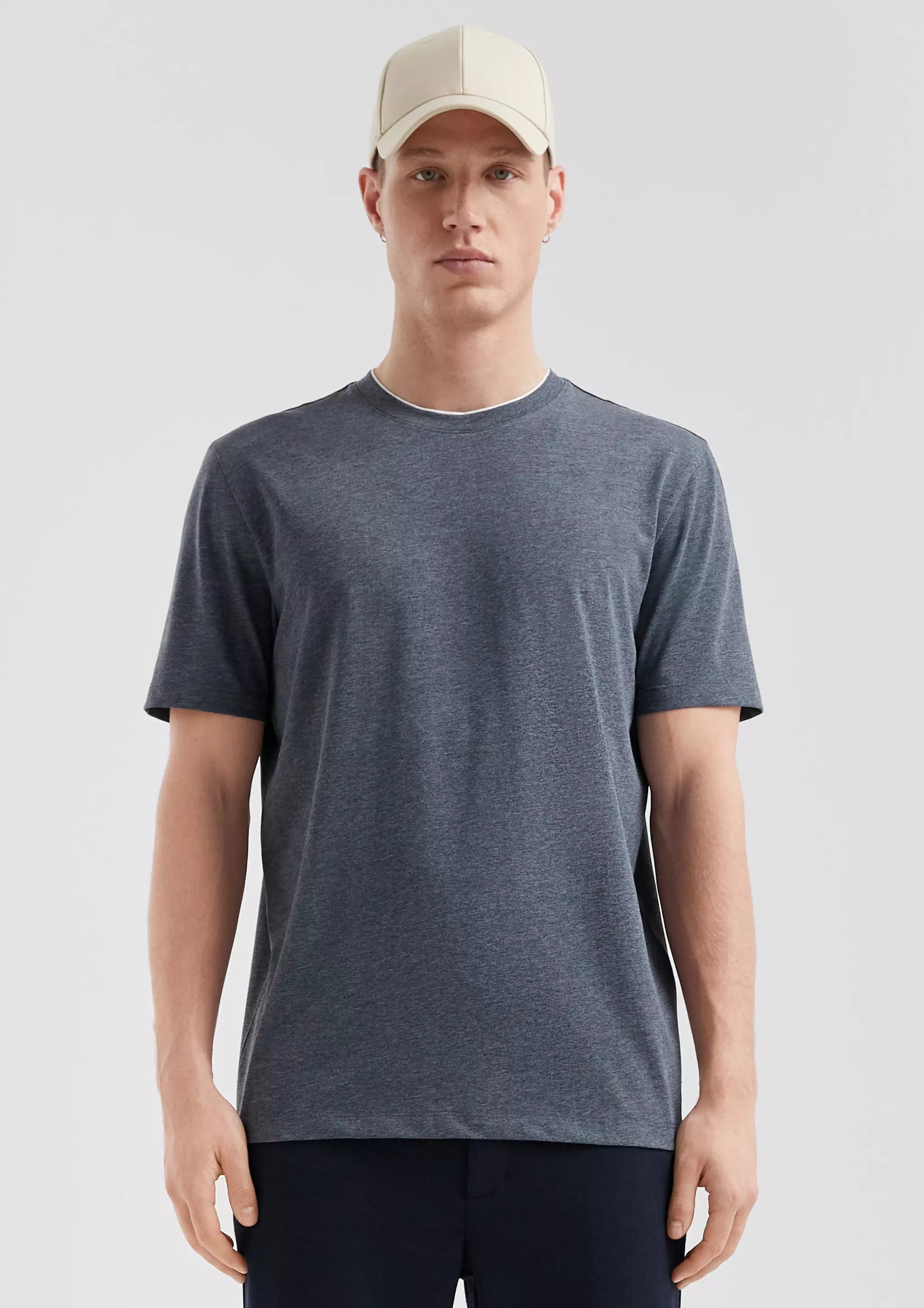 Dein lässiger Alltagsheld: Dieses melierte T-Shirt mit coolem Layering-Kragen passt zu jedem Look. Der Baumwollmix-Jersey fühlt sich super an und der Regular Fit sitzt perfekt. Ideal für entspannte Tage und coole Outfits!