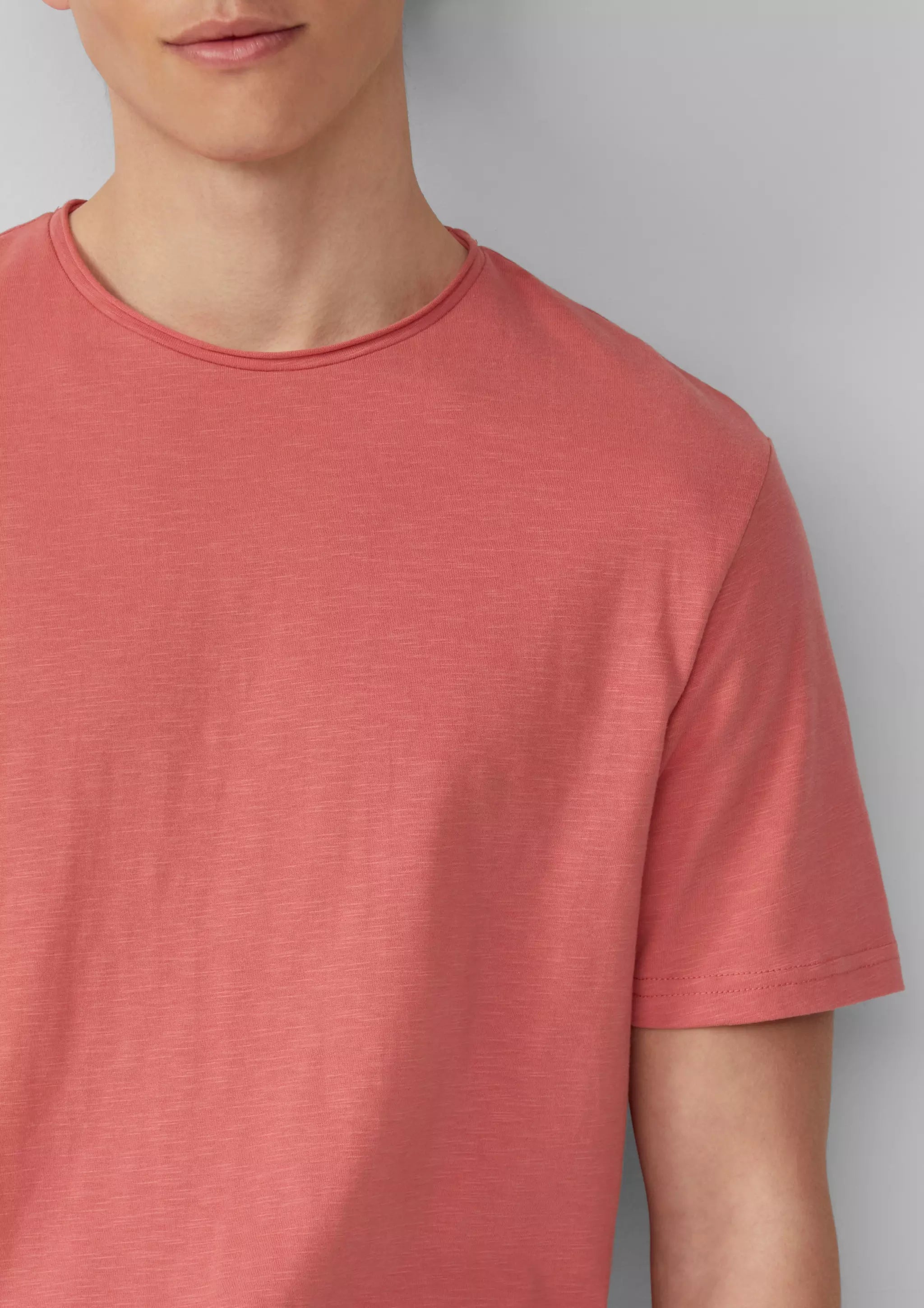 Dein neuer Lieblings-Basic: Dieses coole Baumwoll-T-Shirt mit Rollkante und Flammgarnstruktur ist ideal für deinen Alltag. Der Regular Fit und der Rundhalsausschnitt machen es zum perfekten Begleiter für jedes Outfit. Stylisch, bequem und vielseitig.