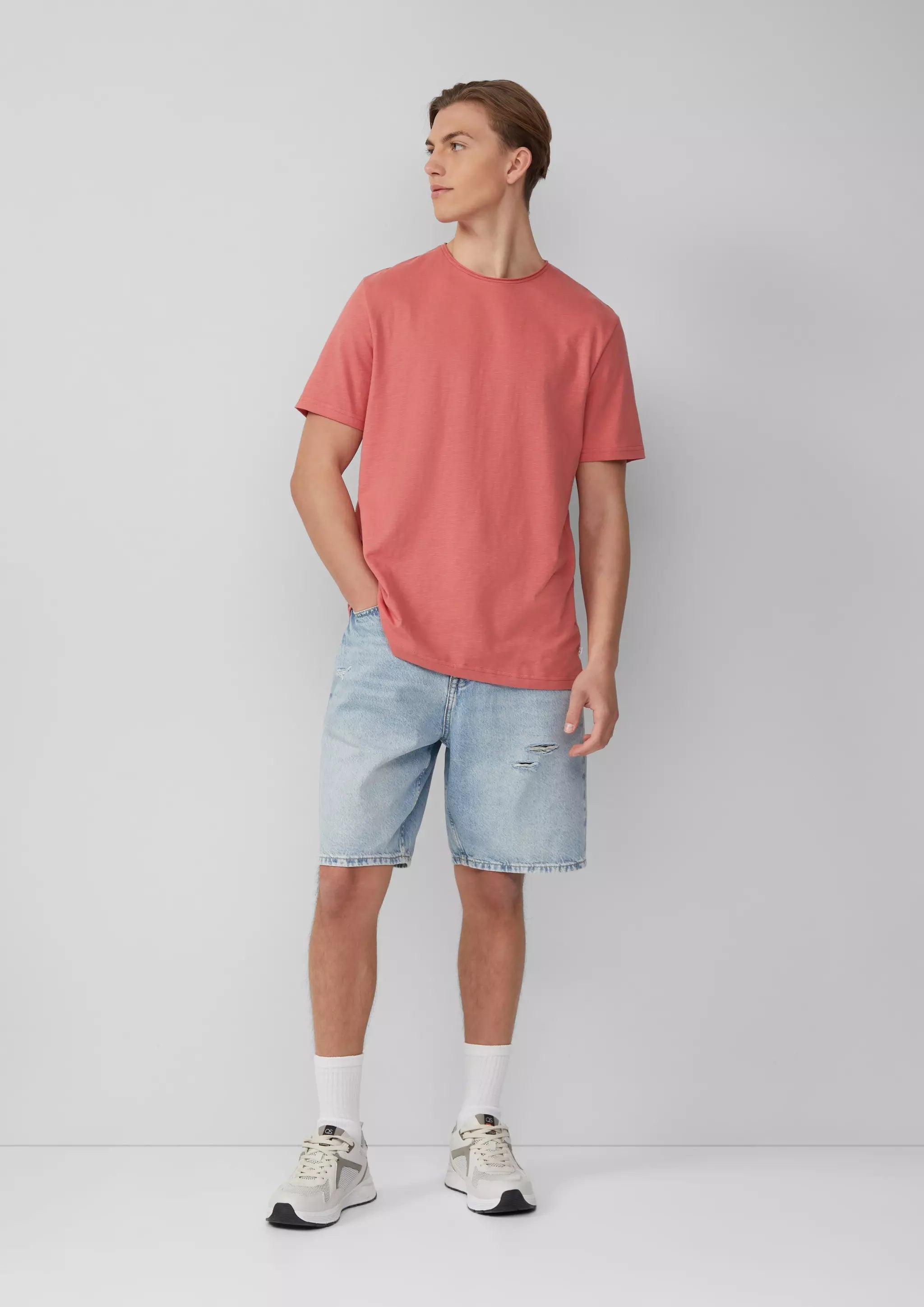 Baumwollshirt mit Rollkante und Flammgarnstruktur