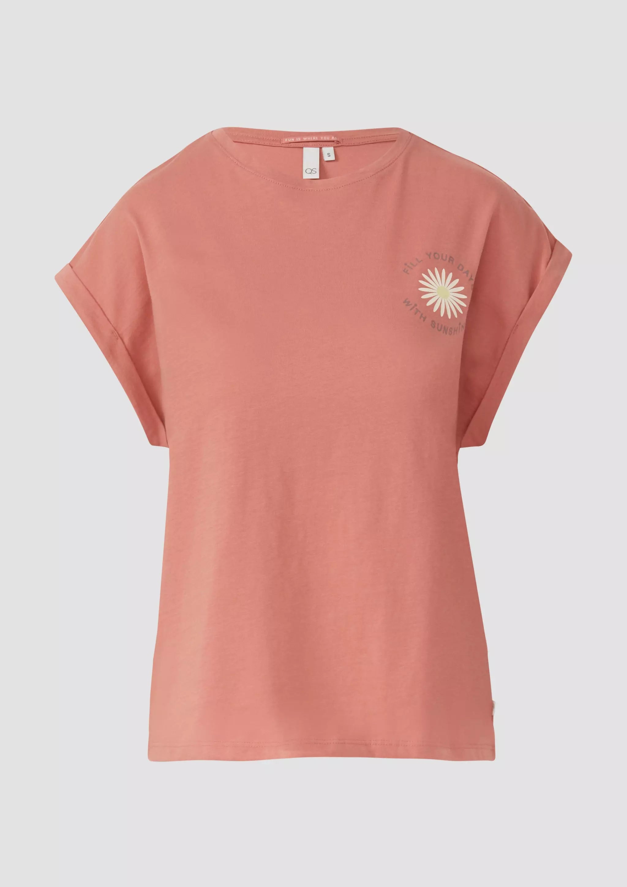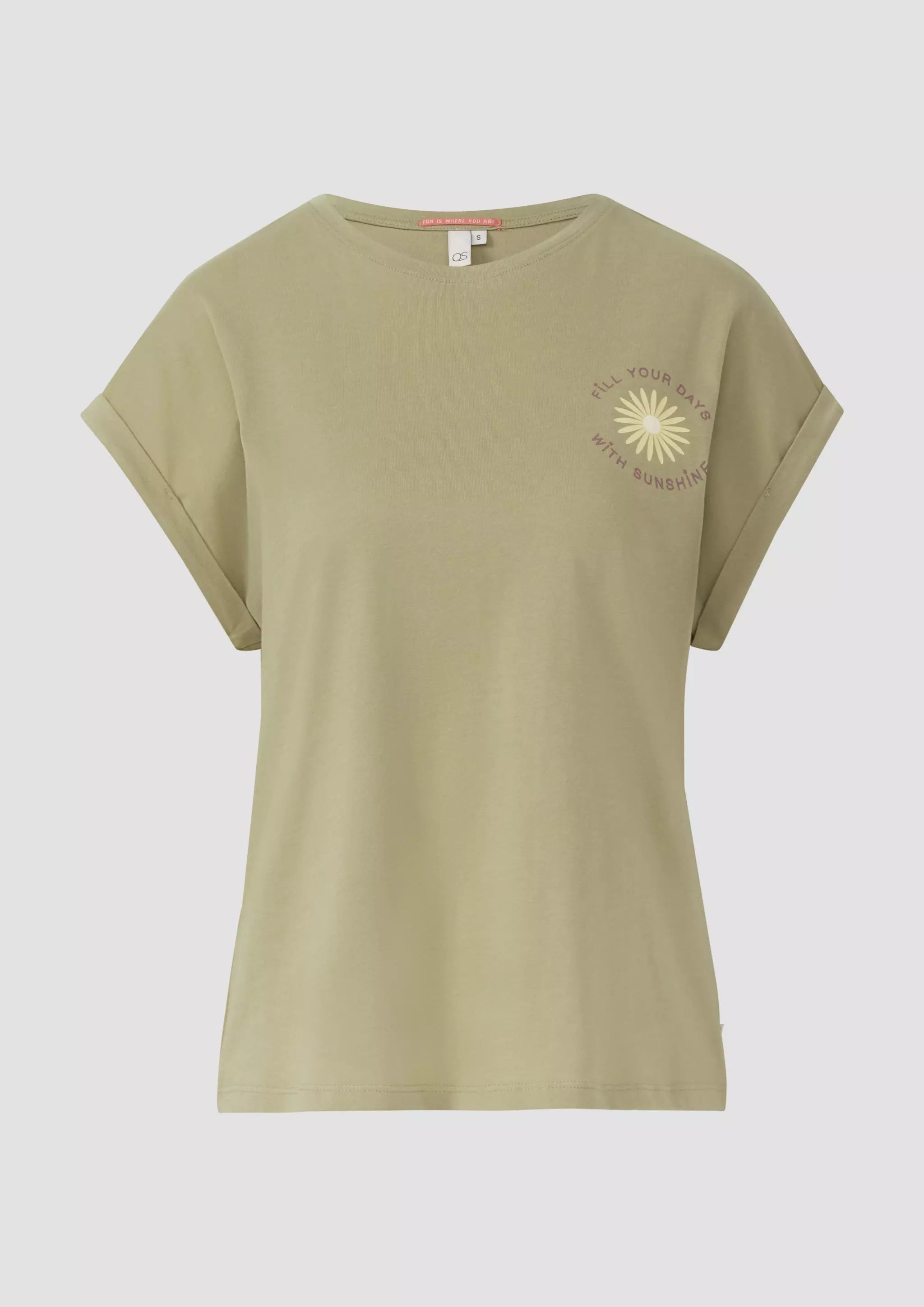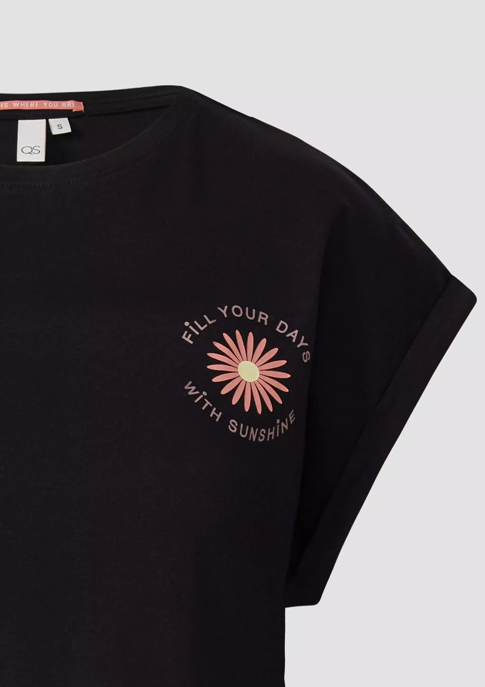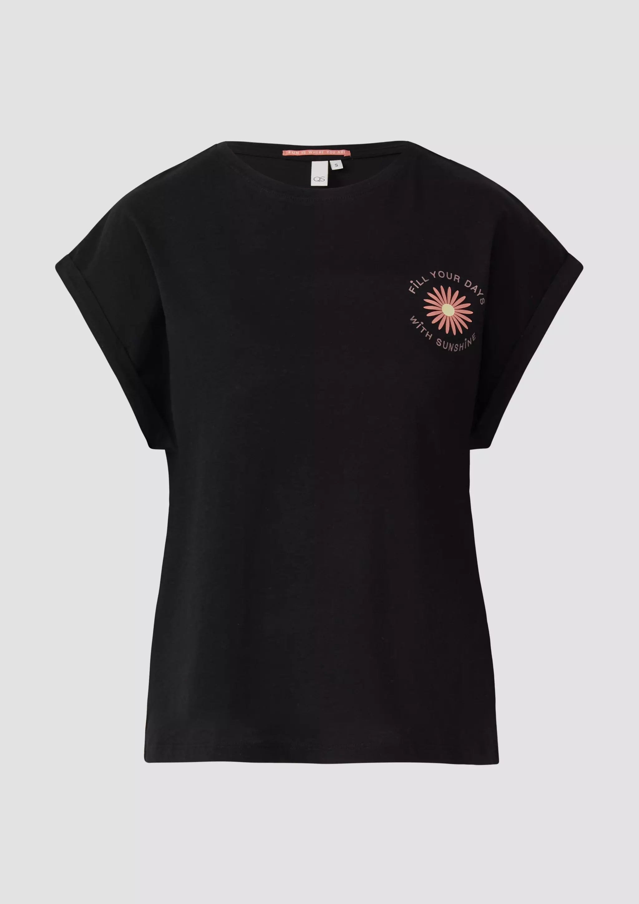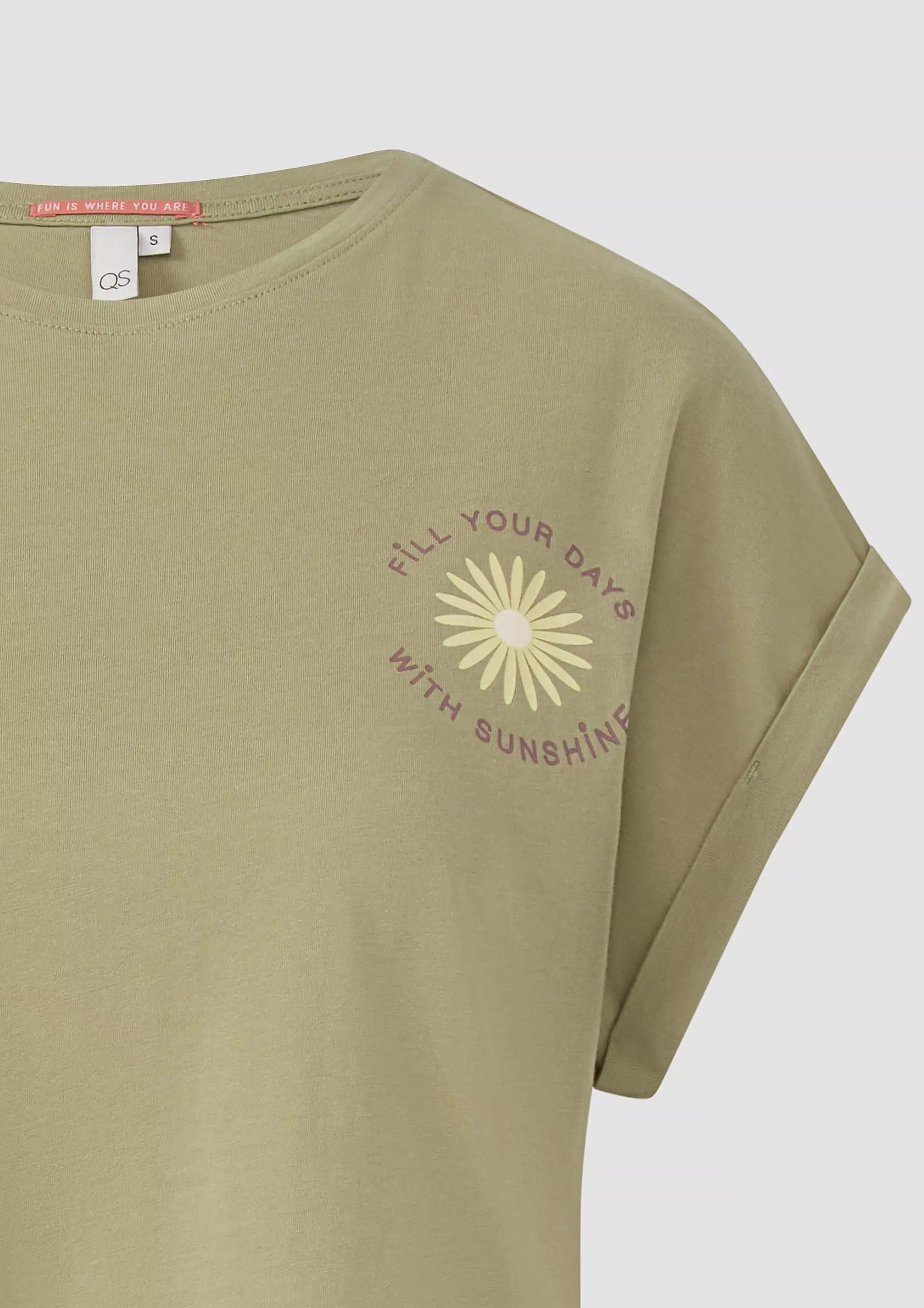 Lockeres T- Shirt mit Ärmelaufschlag und Frontprint