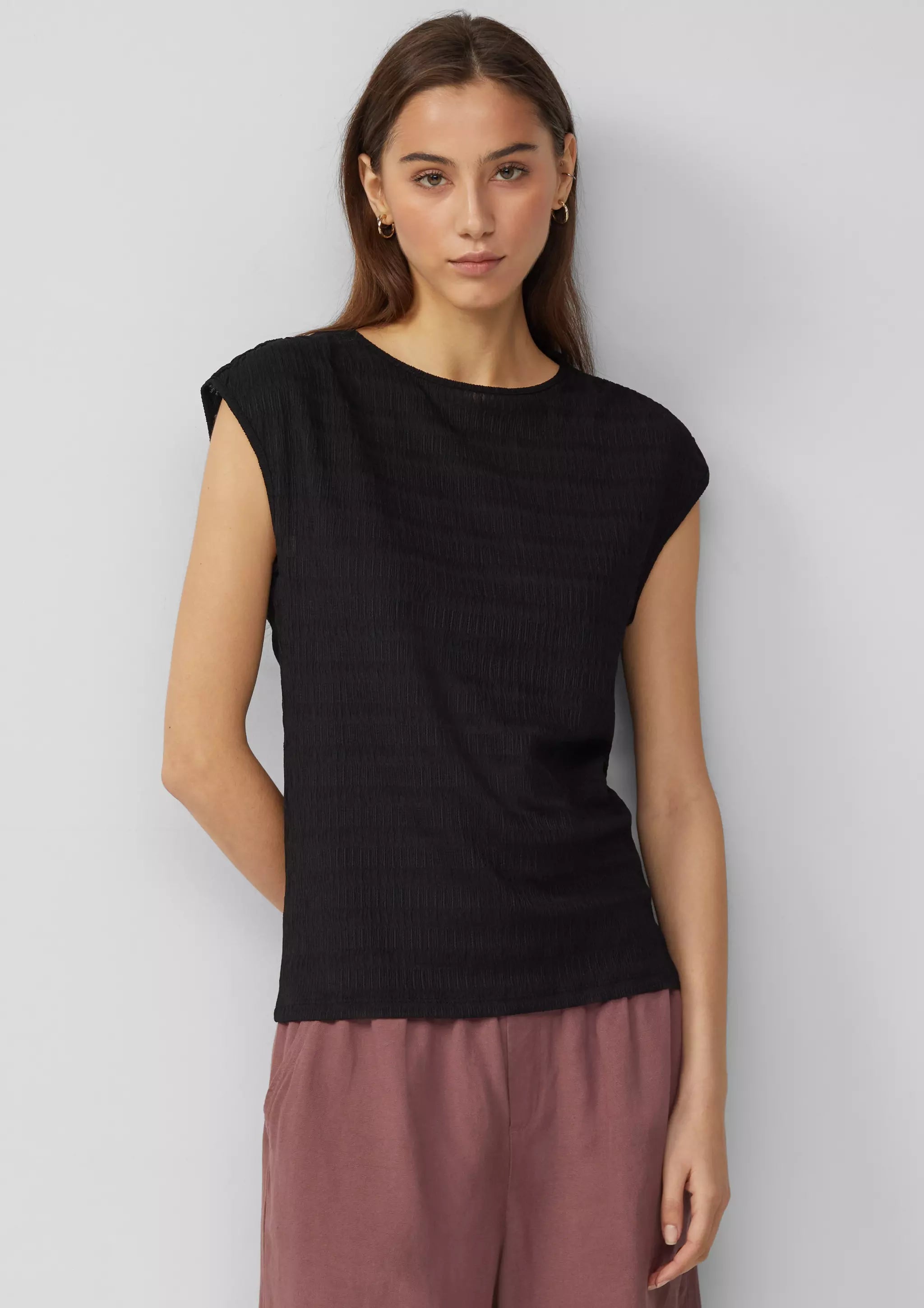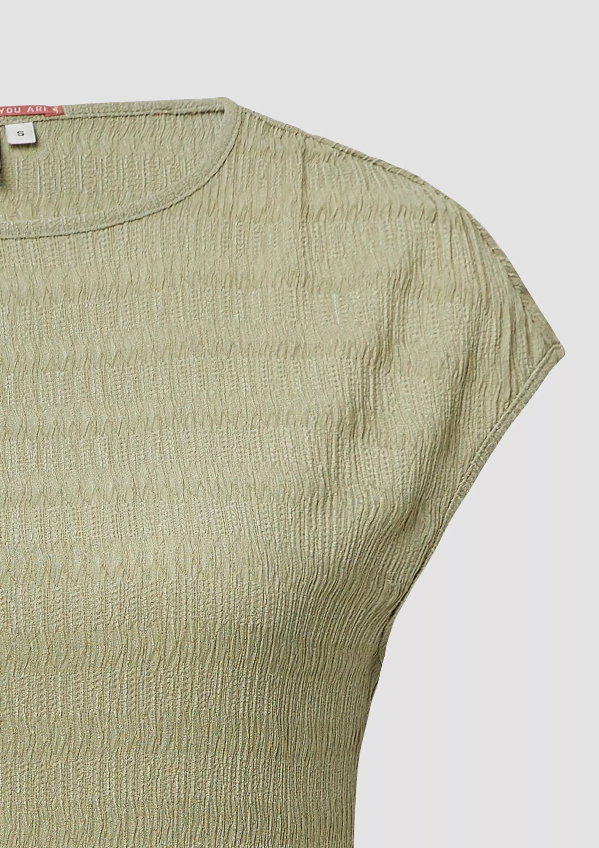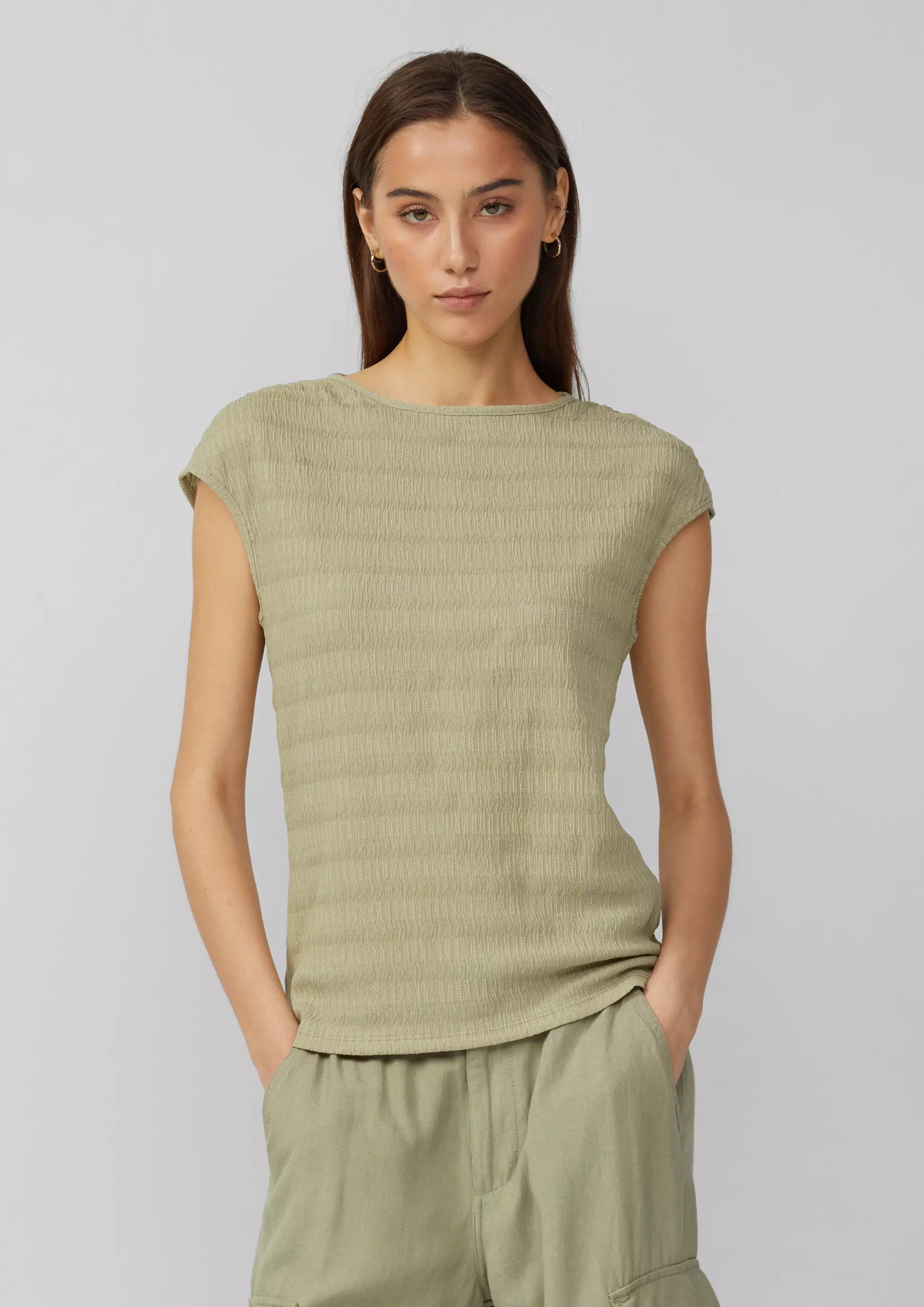 Strukturiertes T-Shirt mit Raffdetails an den Schultern