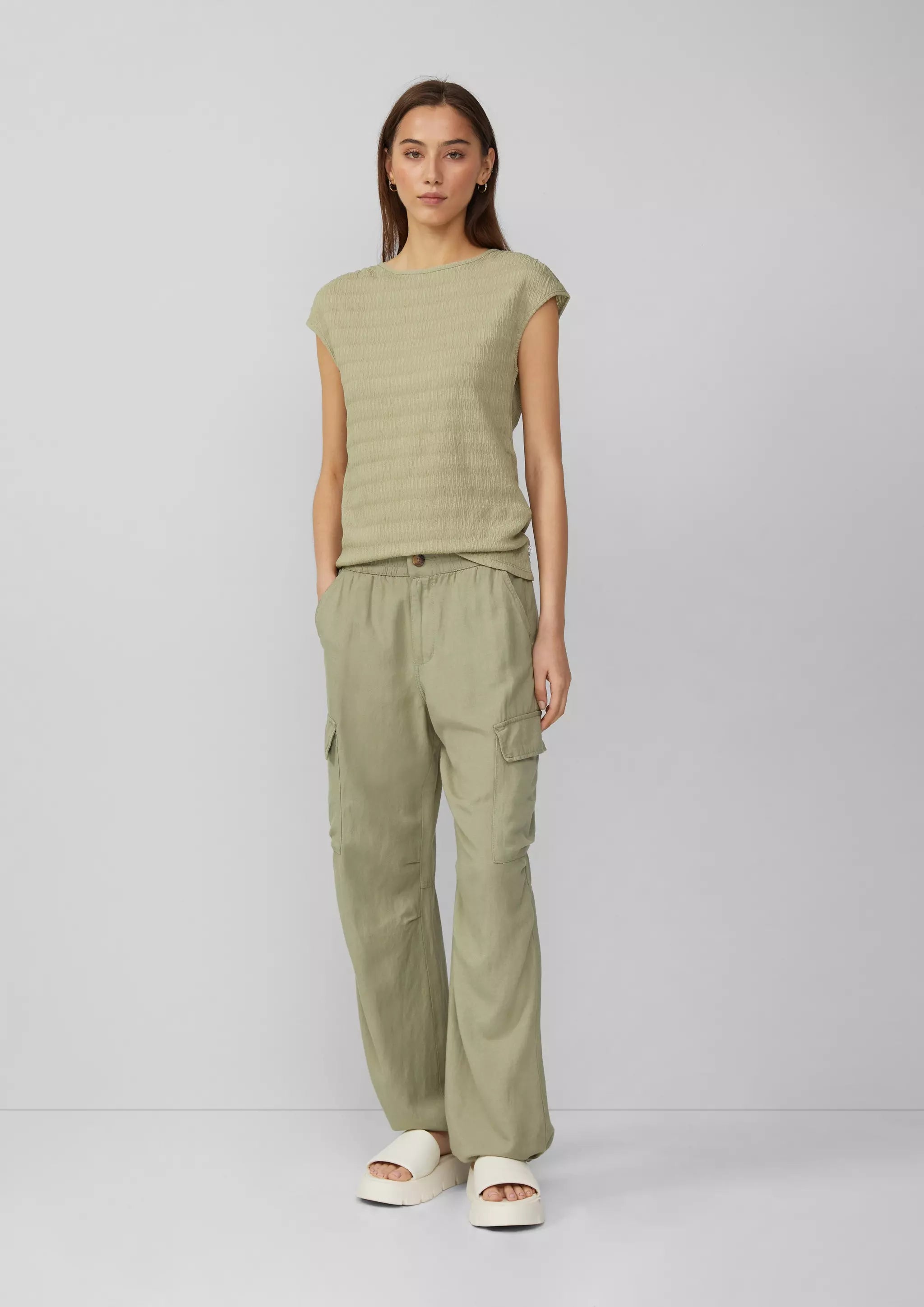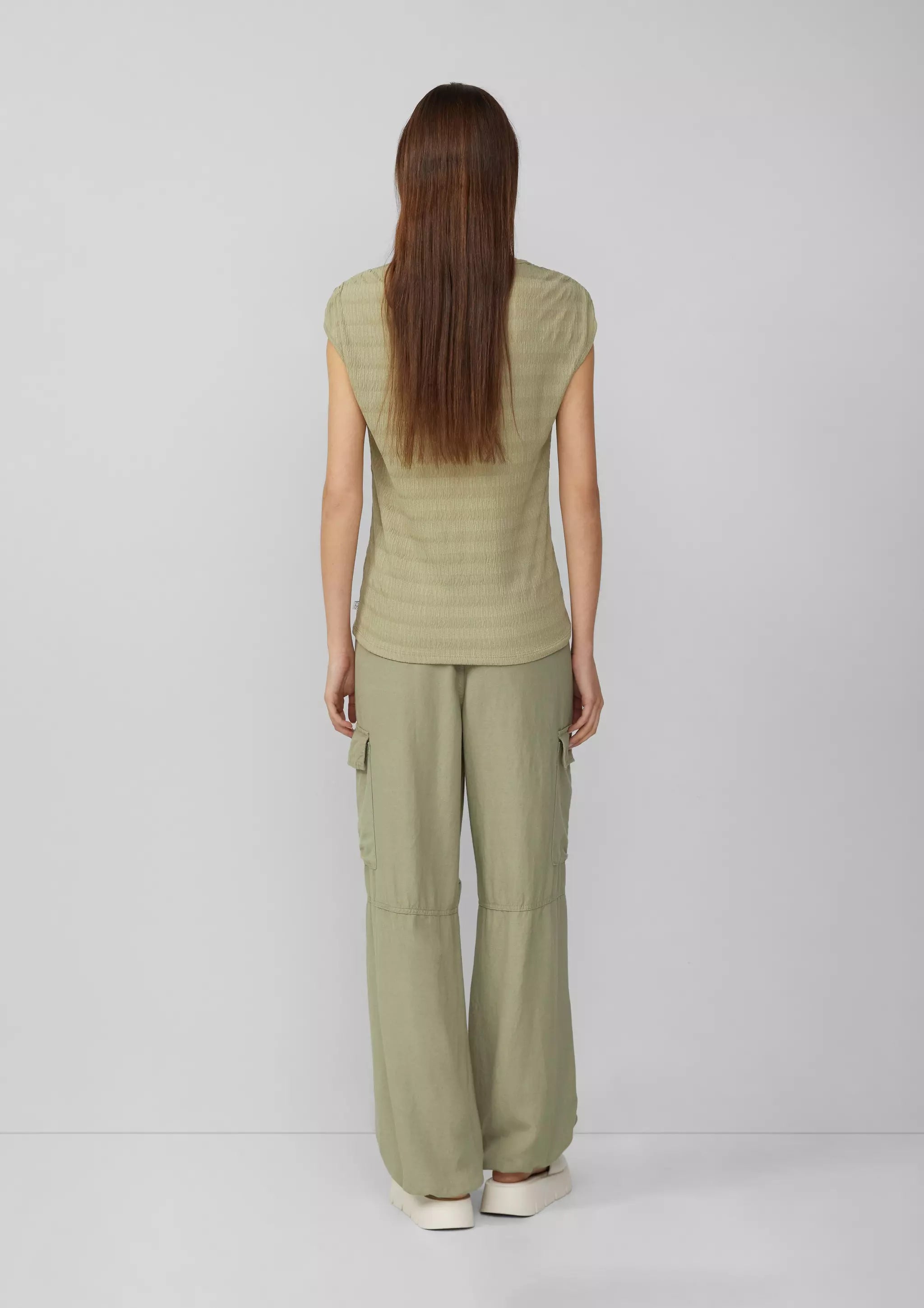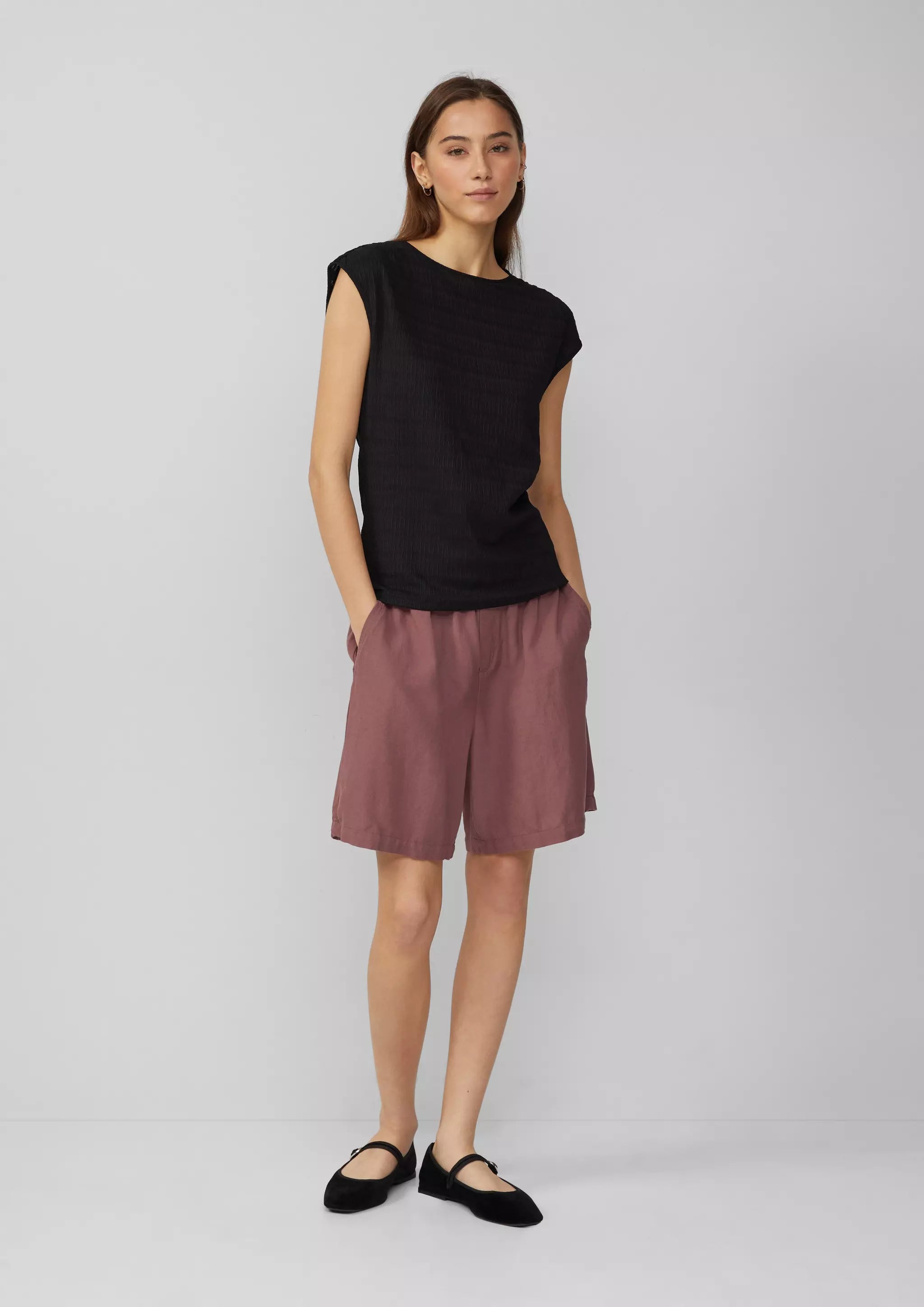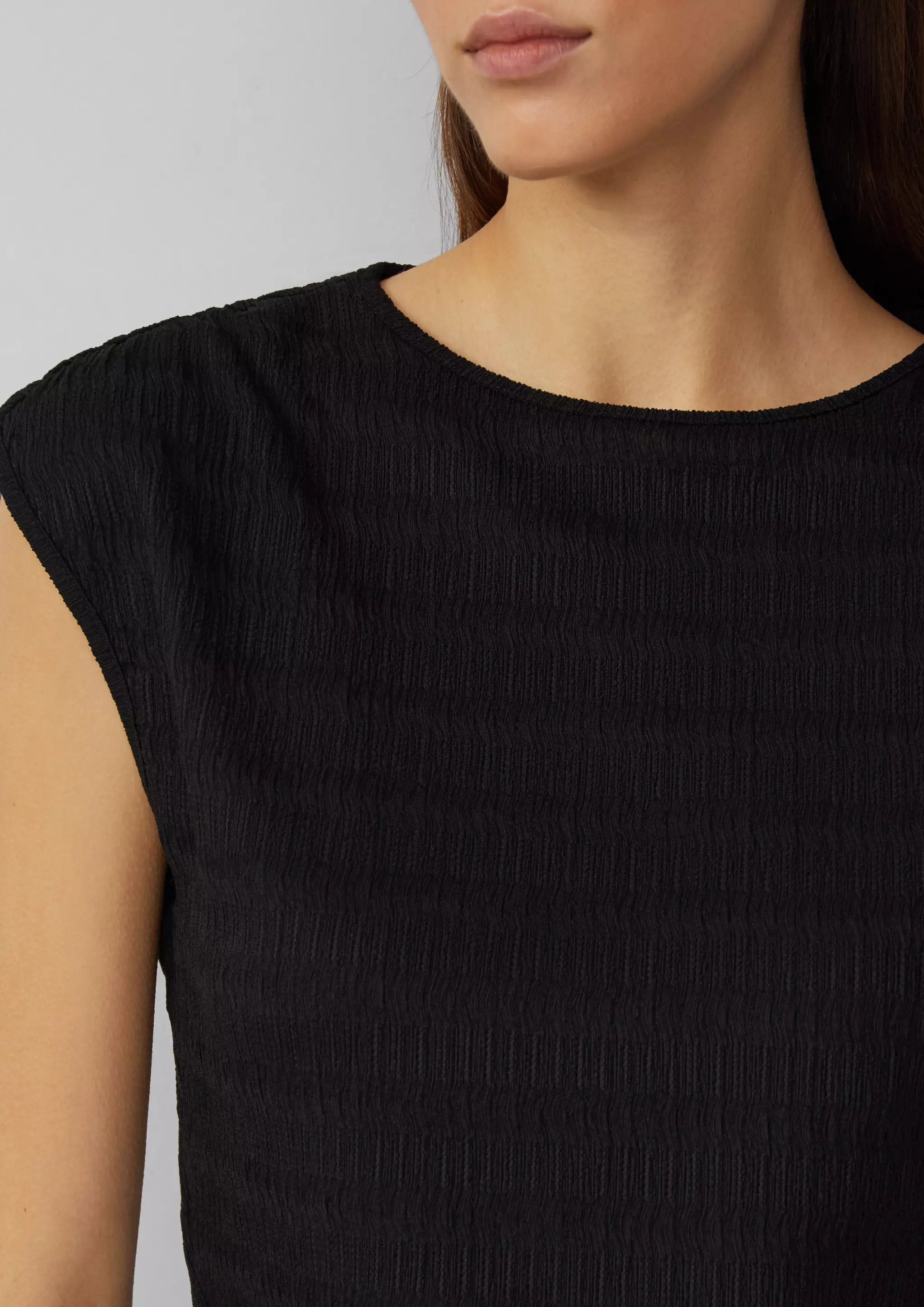 Strukturiertes T-Shirt mit Raffdetails an den Schultern