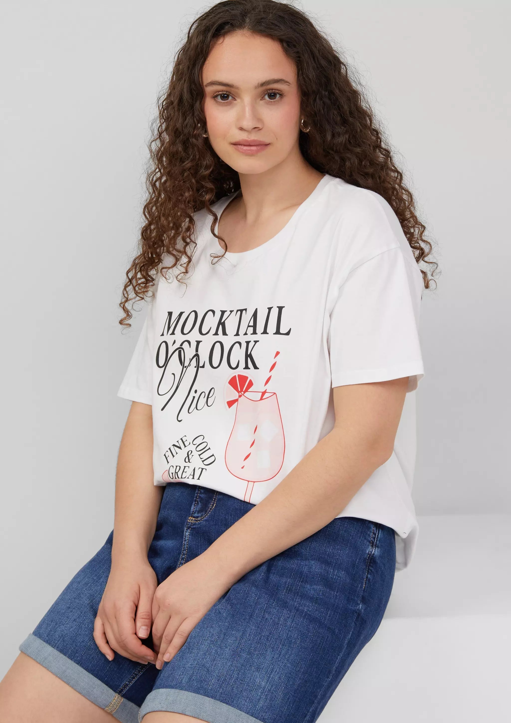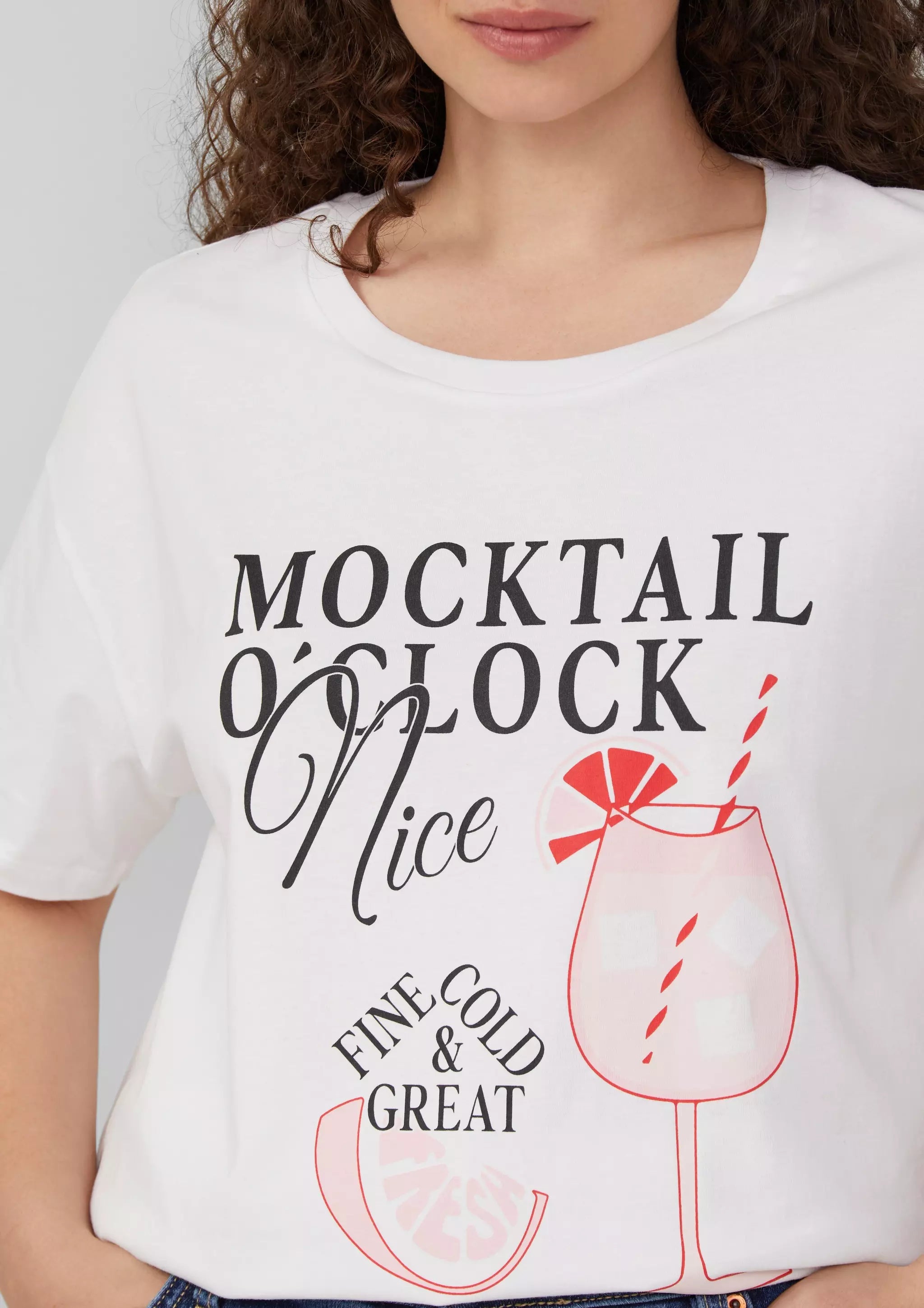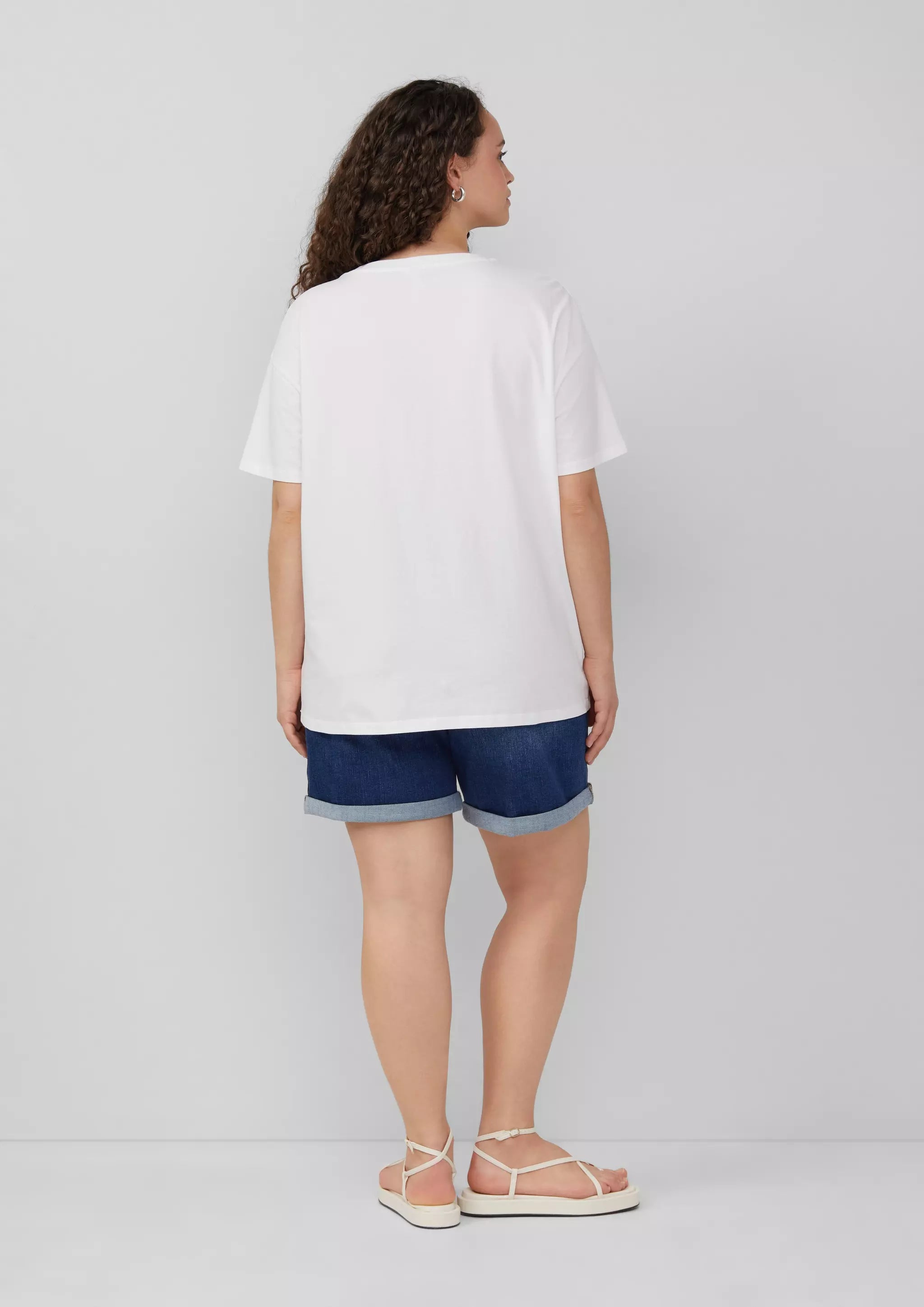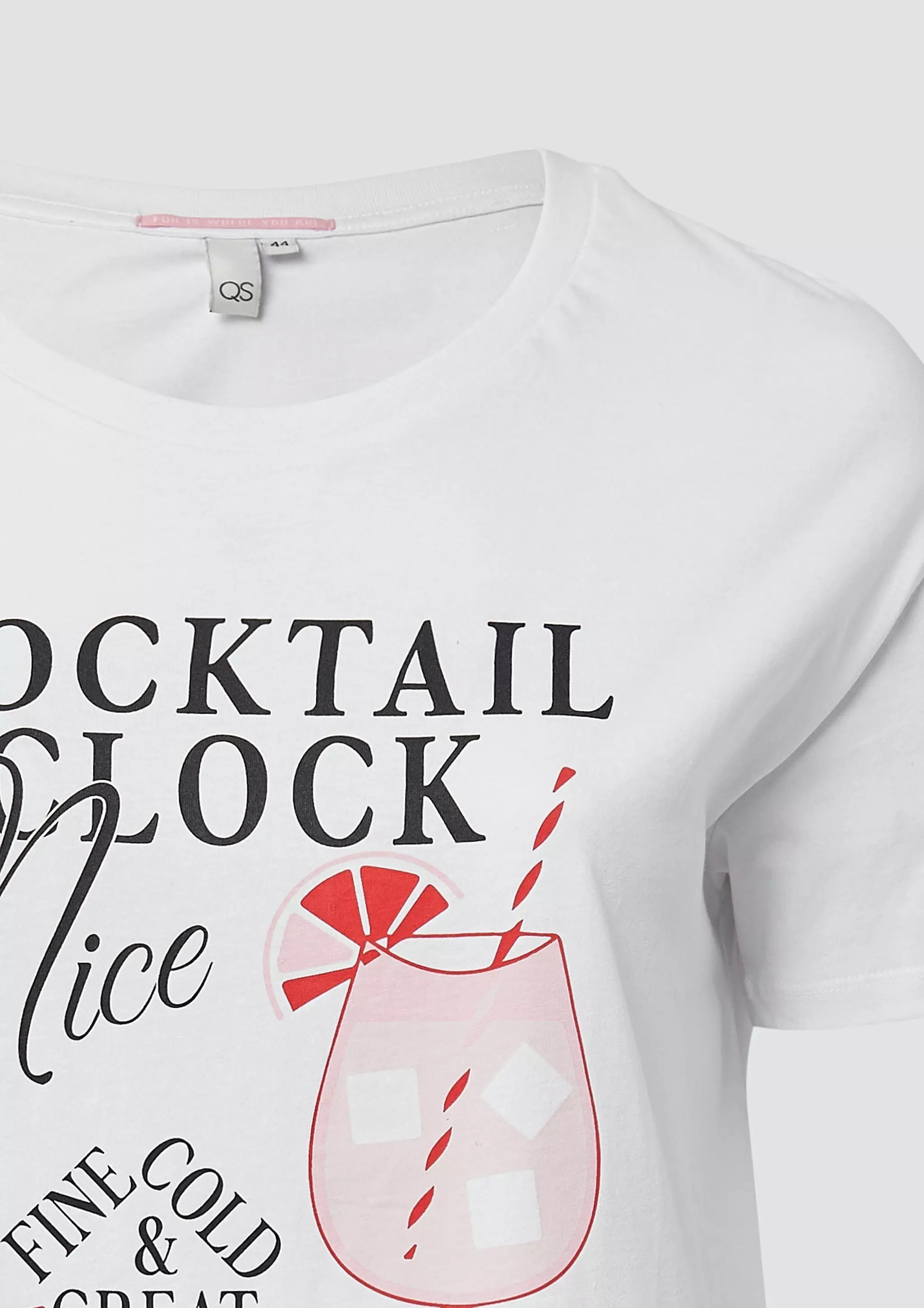 Baumwollshirt mit überschnittener Schulter und Frontprint