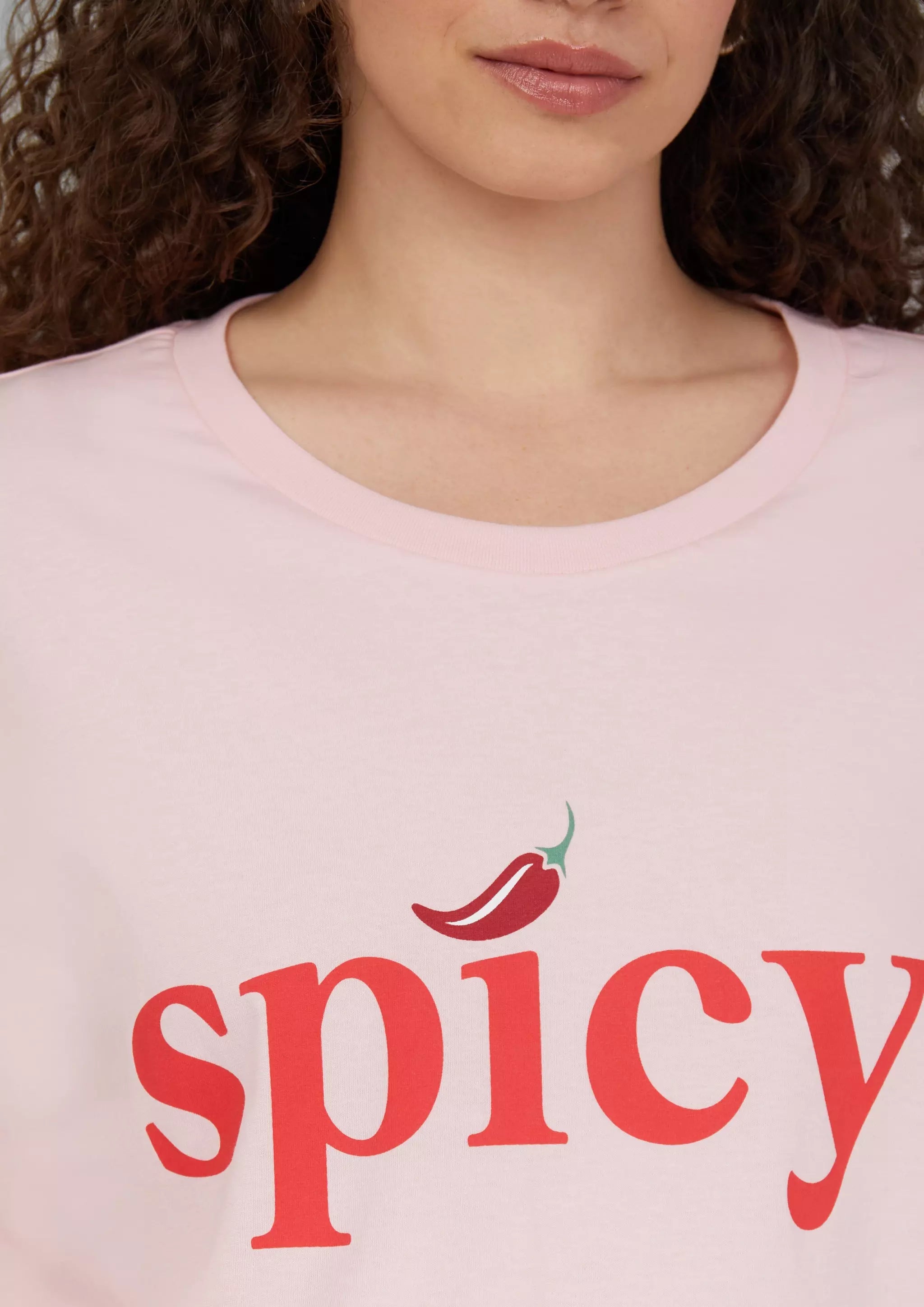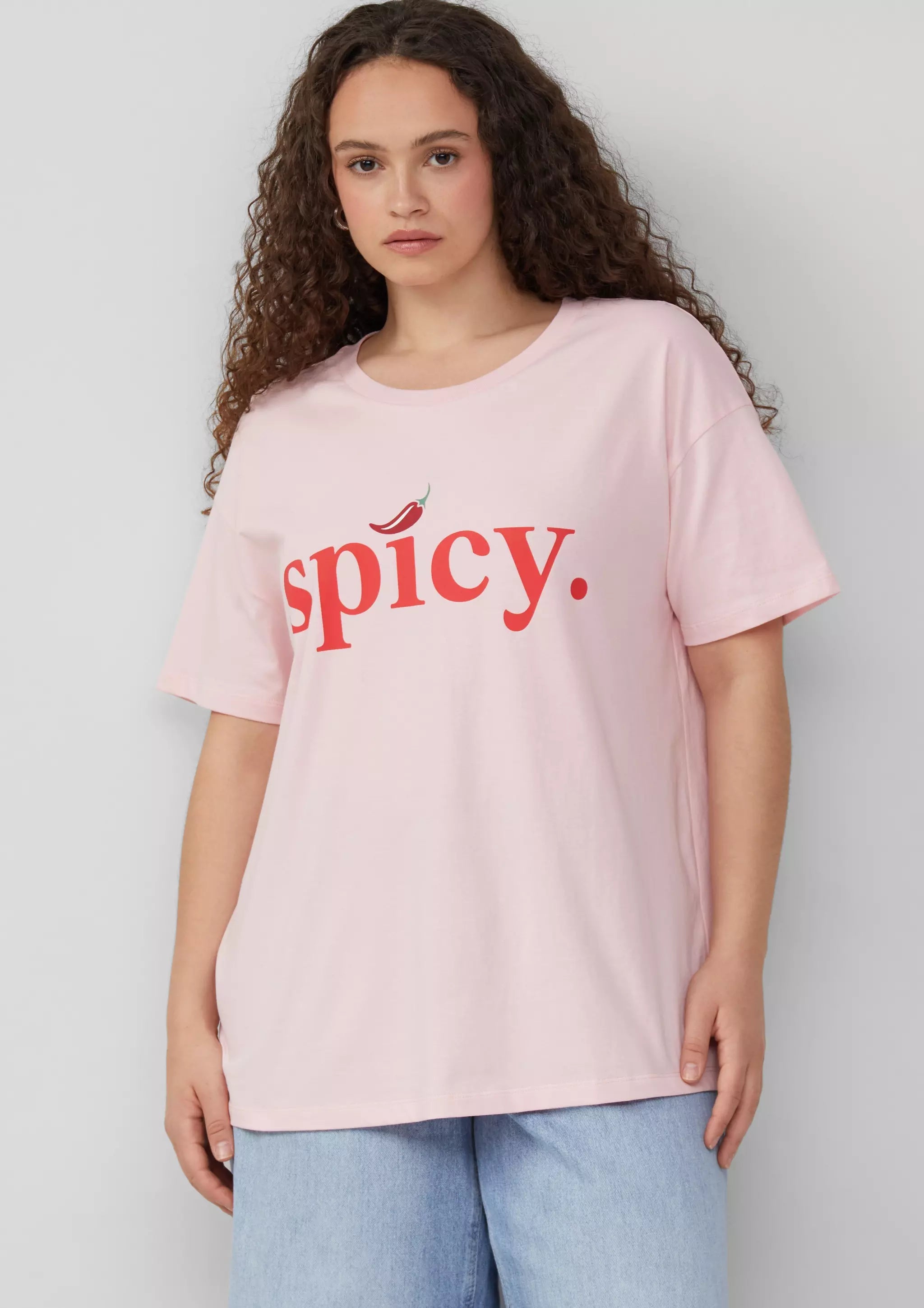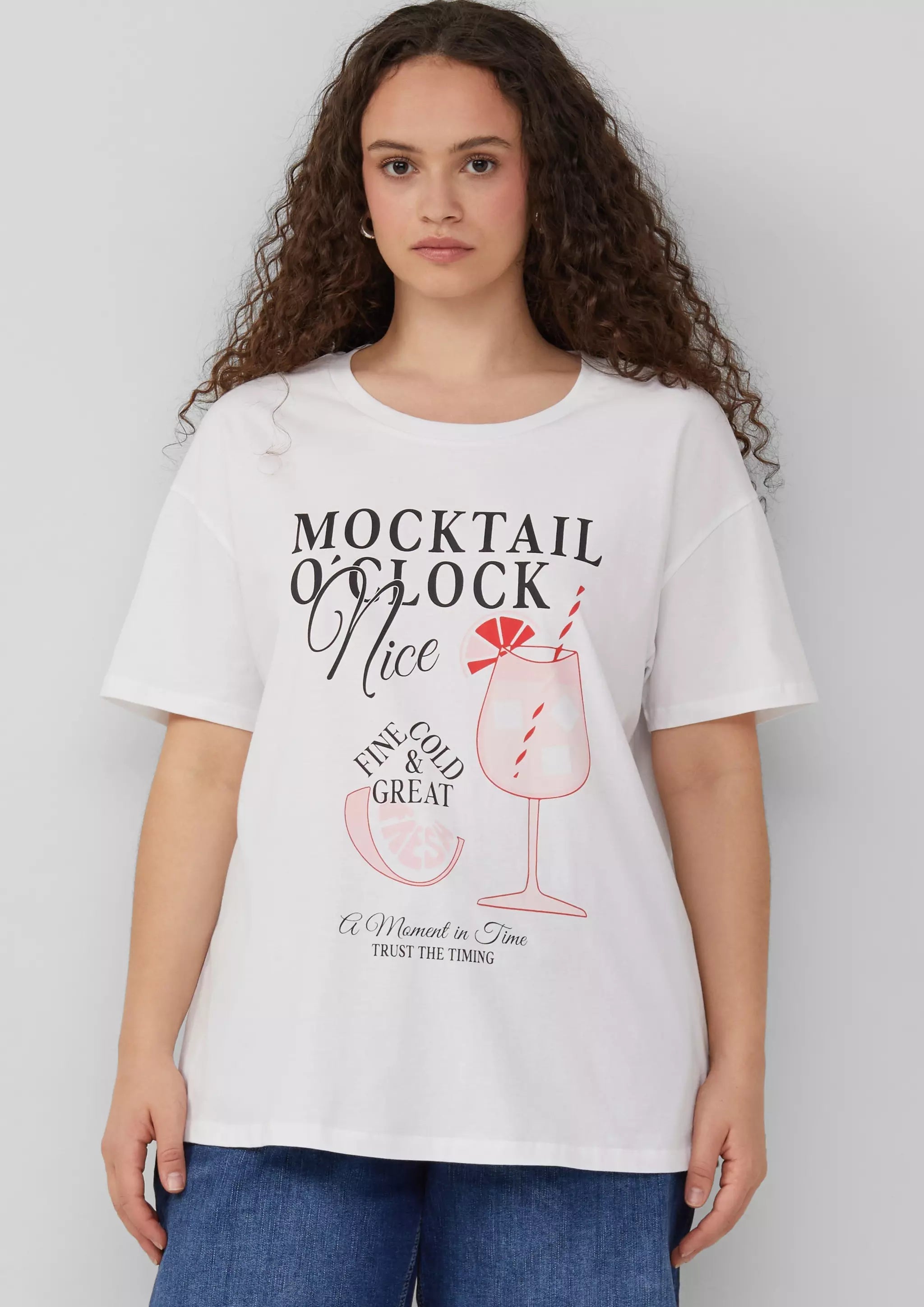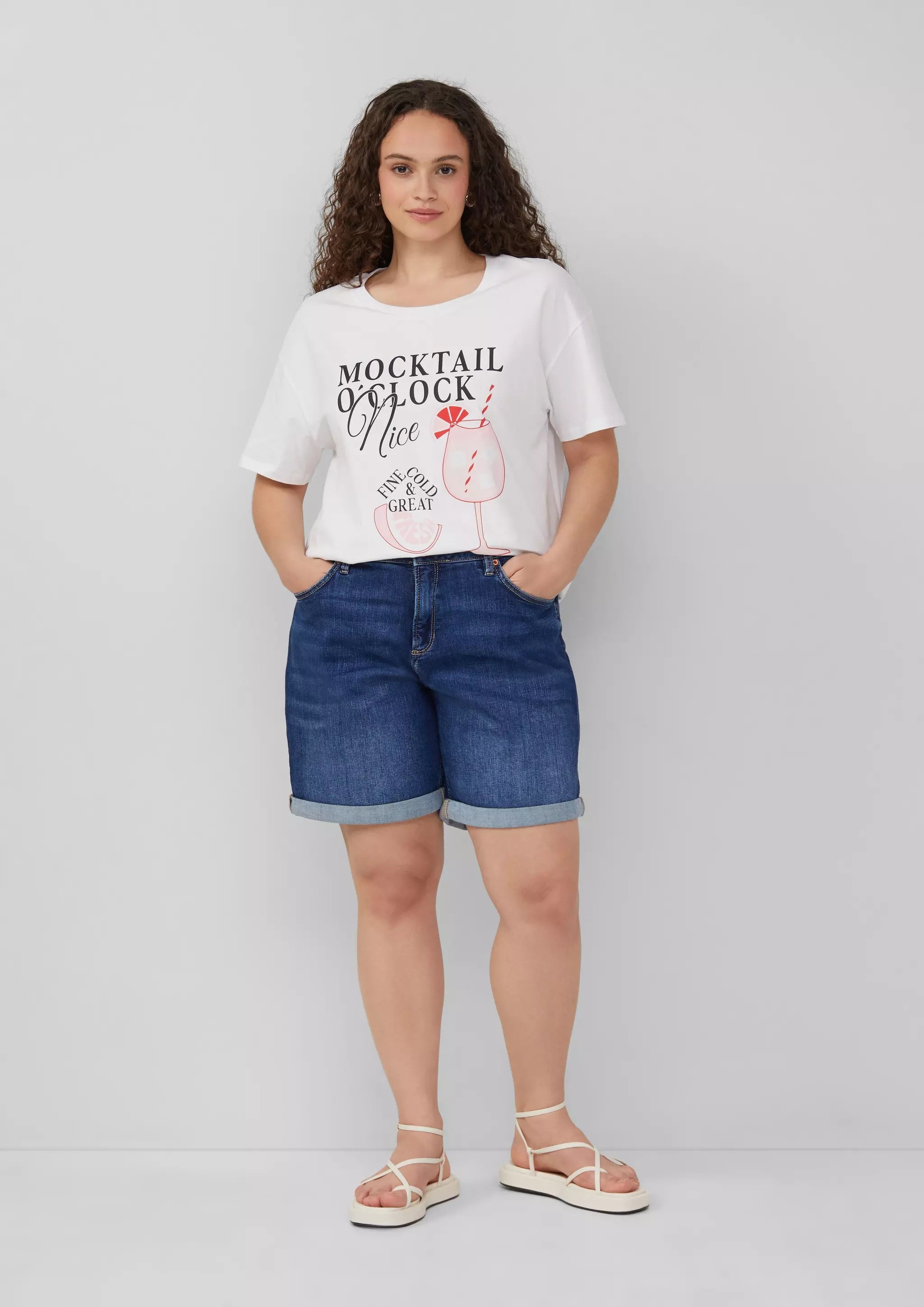 Baumwollshirt mit überschnittener Schulter und Frontprint