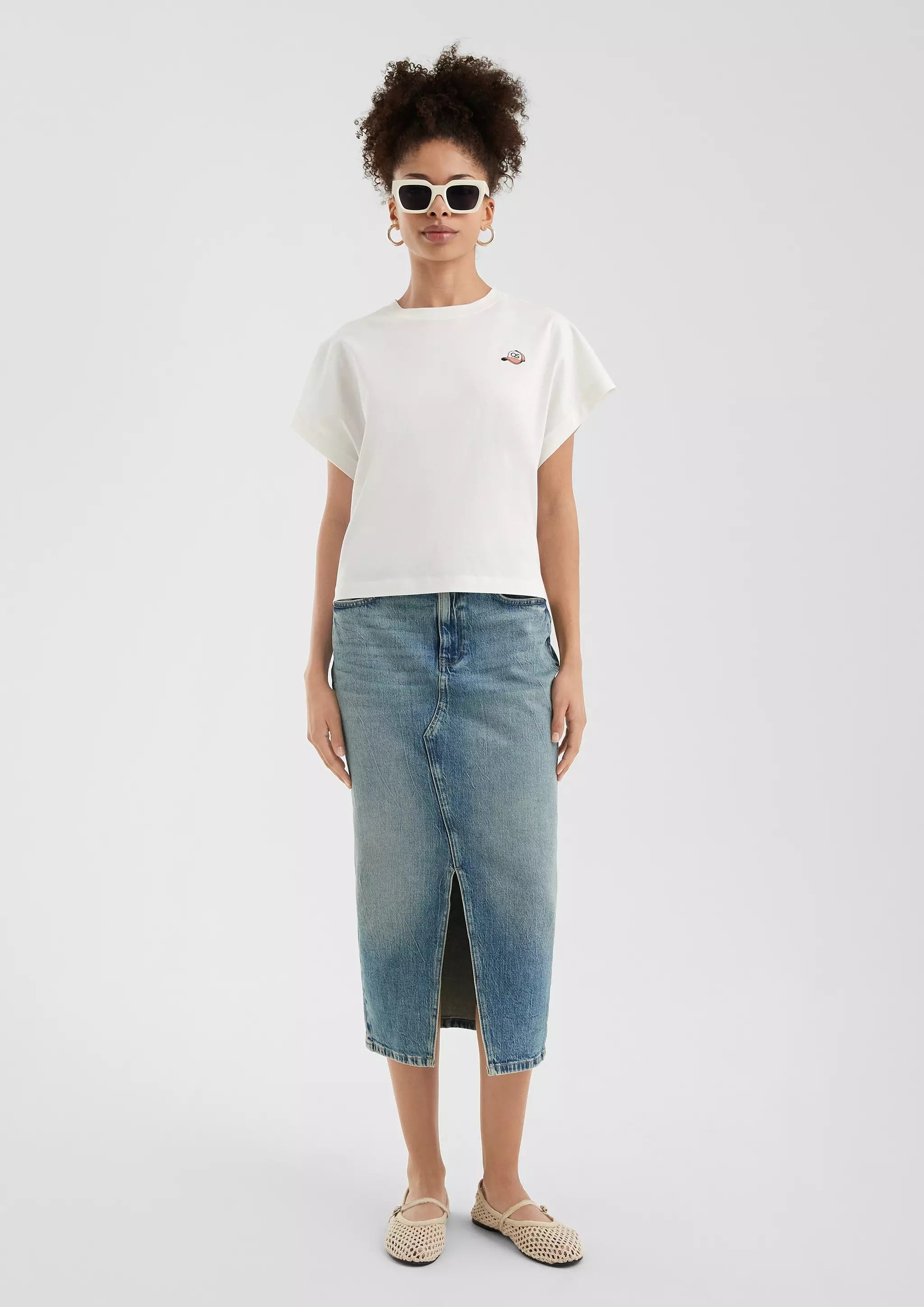 Lässiges Baumwollshirt mit kleiner Stickerei
