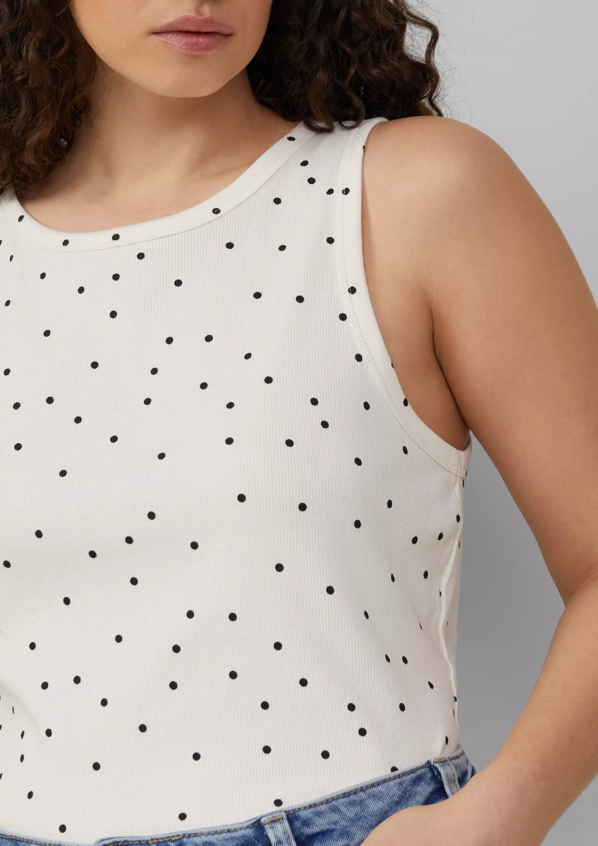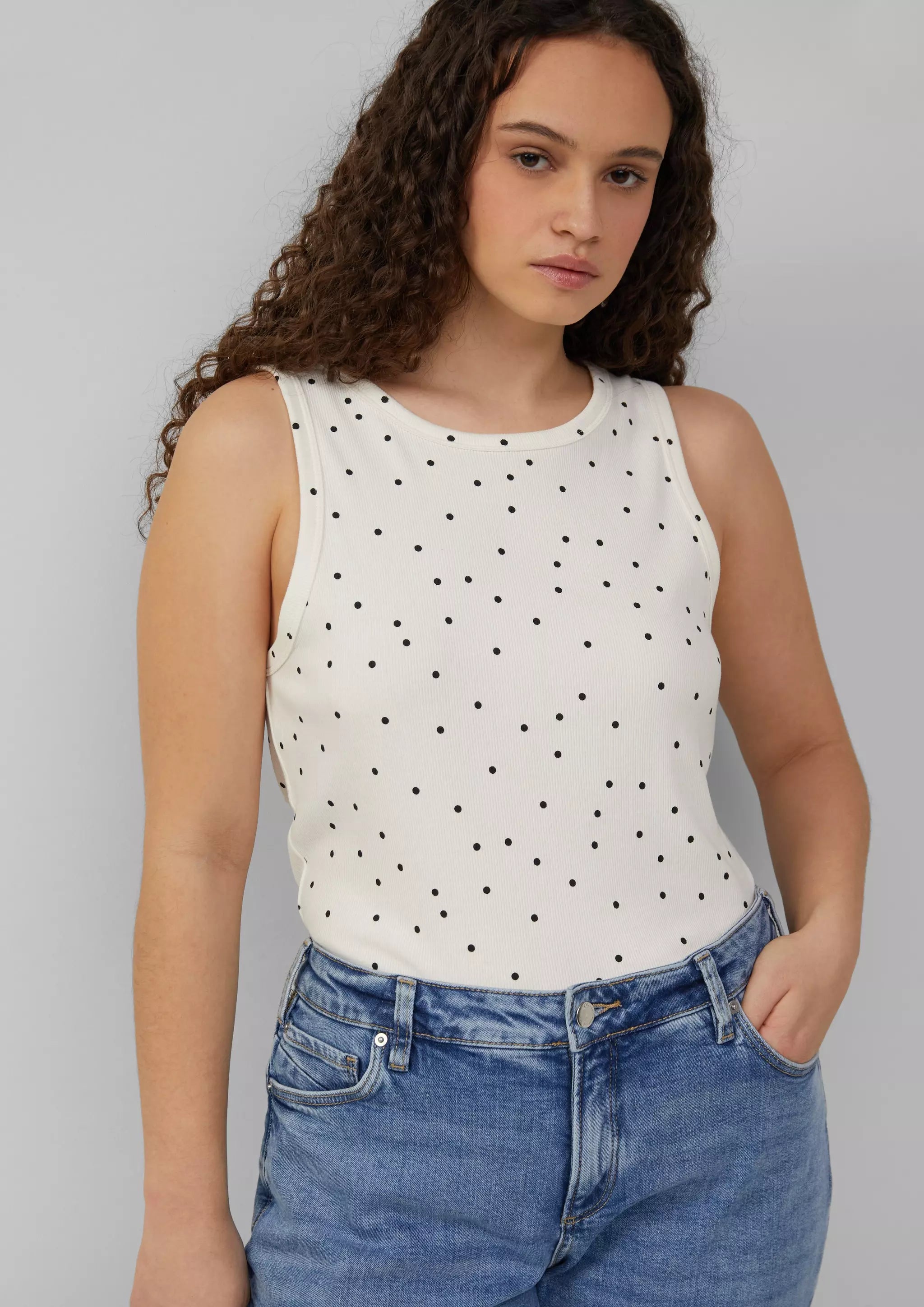 Sommerliche Leichtigkeit zum Anziehen! Dieses gerippte Tanktop mit All-over-Print ist dein neuer Lieblingsbegleiter. Weich, elastisch und figurbetonend – perfekt für warme Tage und laue Nächte. Bereit für ein Eis in der Stadt?