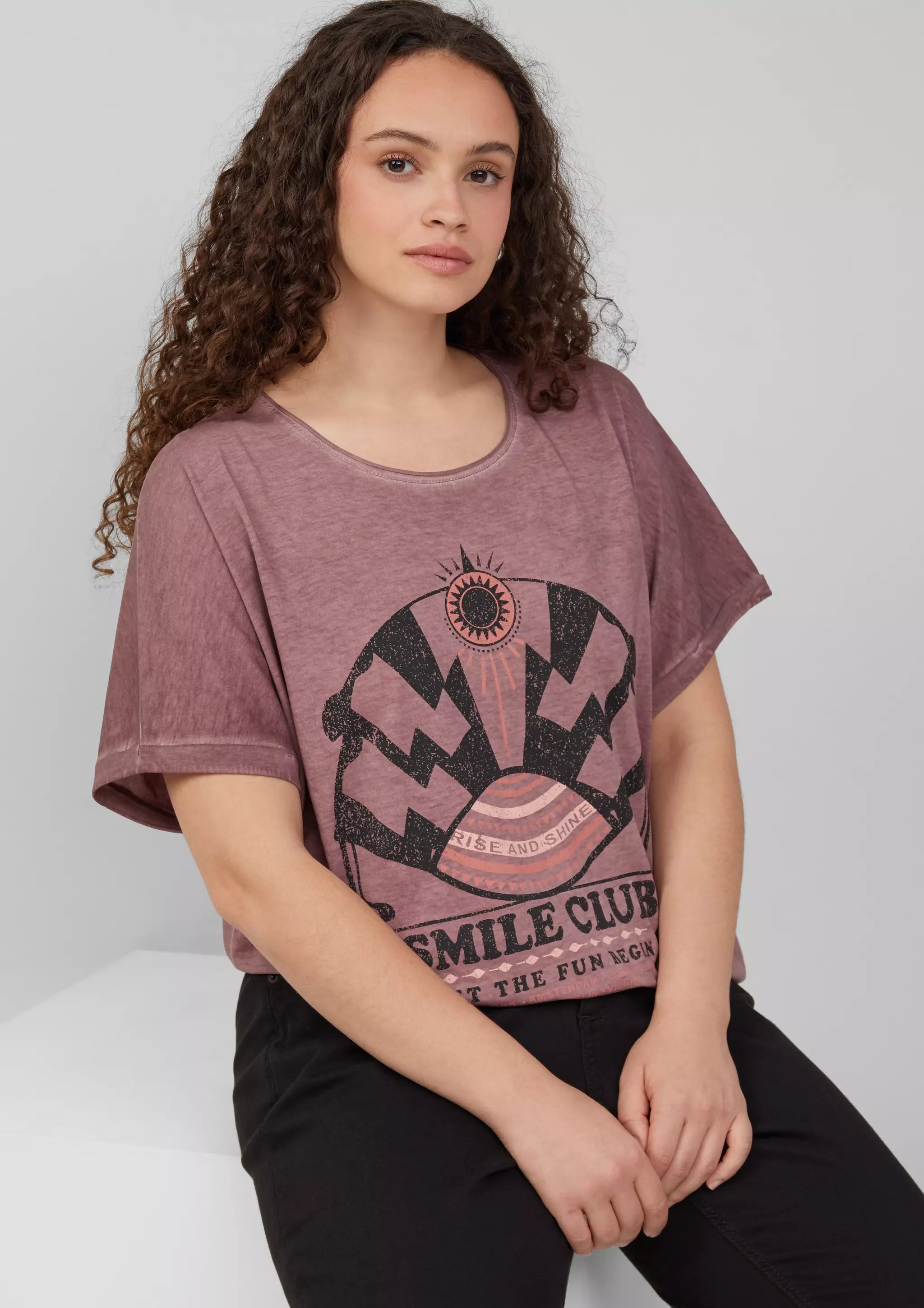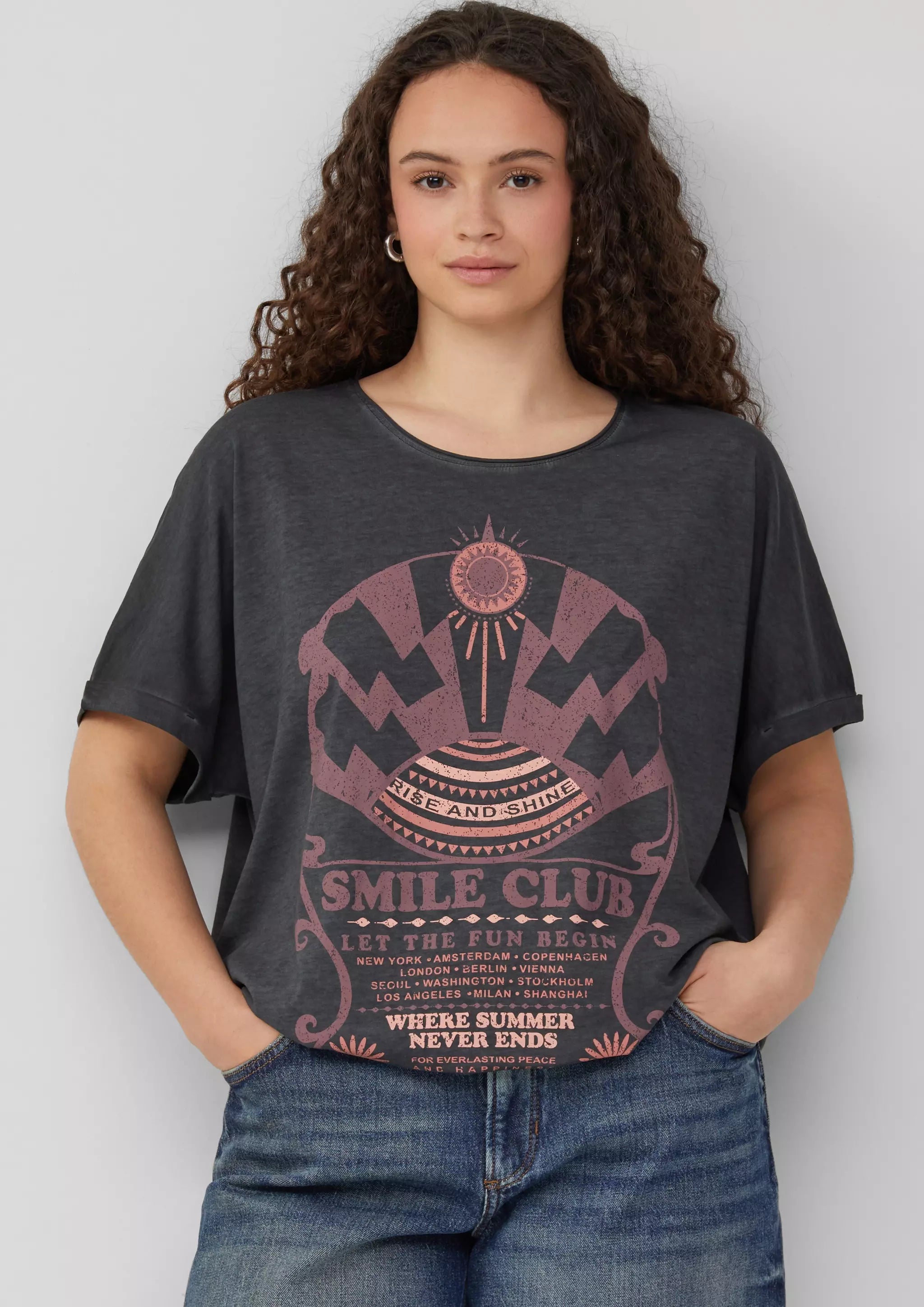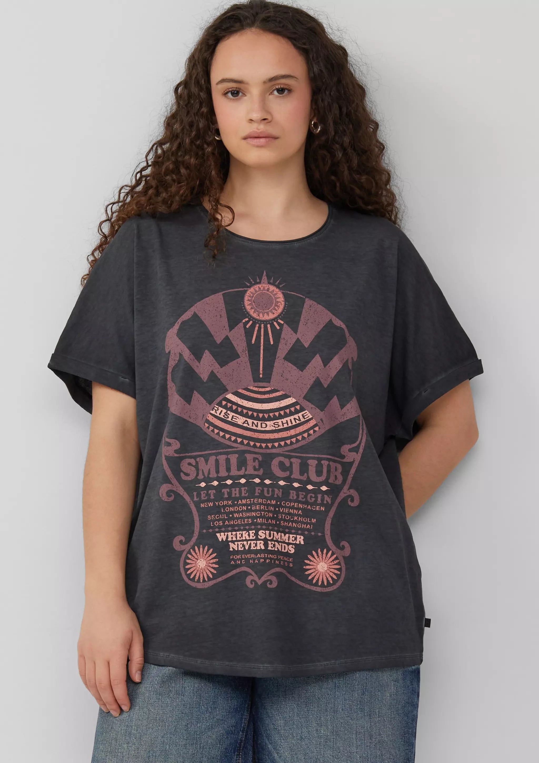 Laid-back Style für deine coolsten Momente: Das gewaschene T-Shirt mit trendigem Frontprint. Der lockere Loose Fit und weiche Baumwolljersey machen es zu deinem entspannten Streetwear-Essential. Mit Rundhalsausschnitt und abgerundetem Saum.