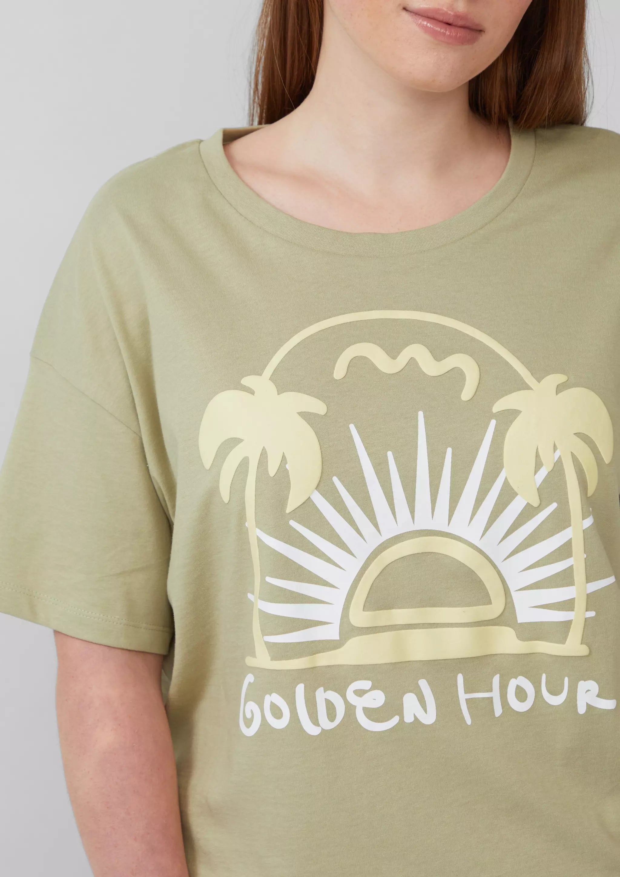 Lässiges Baumwollshirt im angesagten Crop-Style. Der weiche Jersey und die überschnittenen Schultern machen es zum perfekten Streetwear-Piece. Mit coolem Frontprint und Loose Fit bringst du deinen entspannten Style auf die Straße.