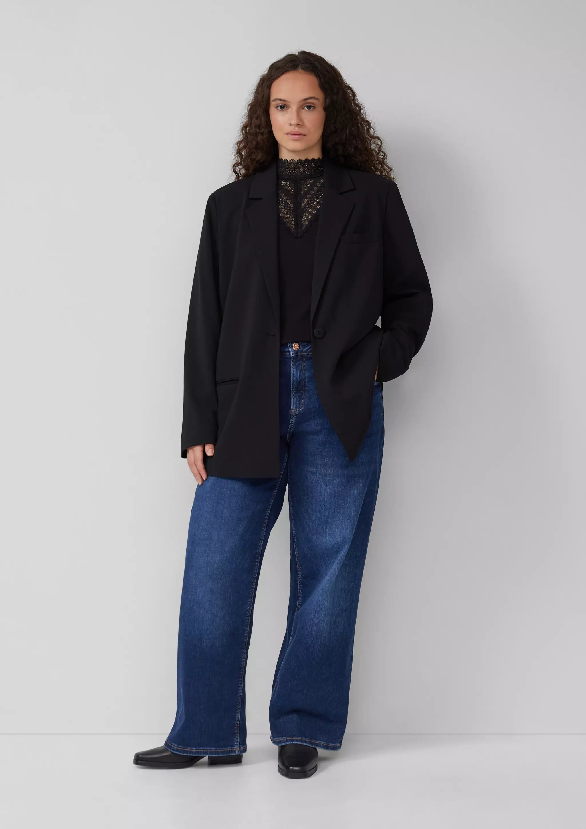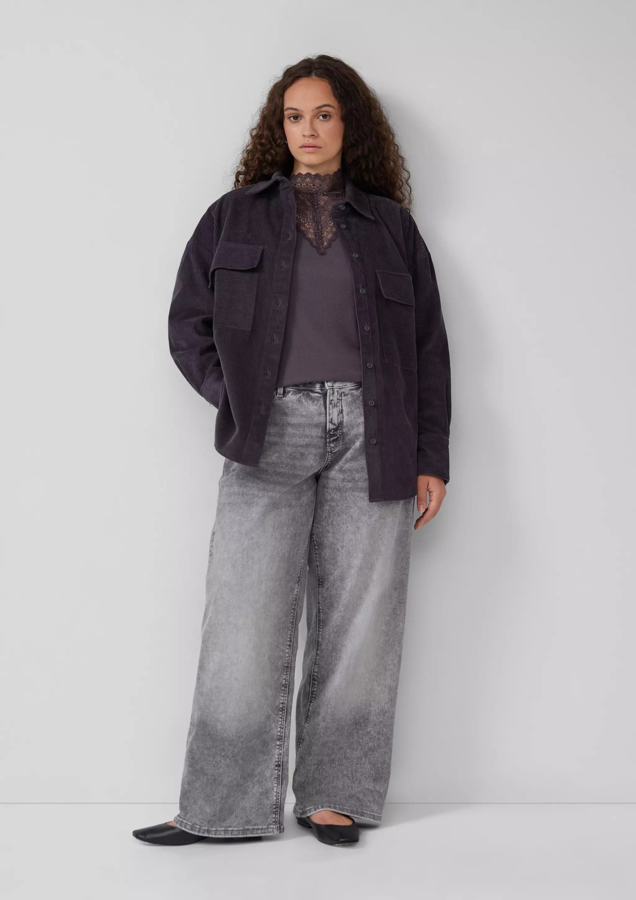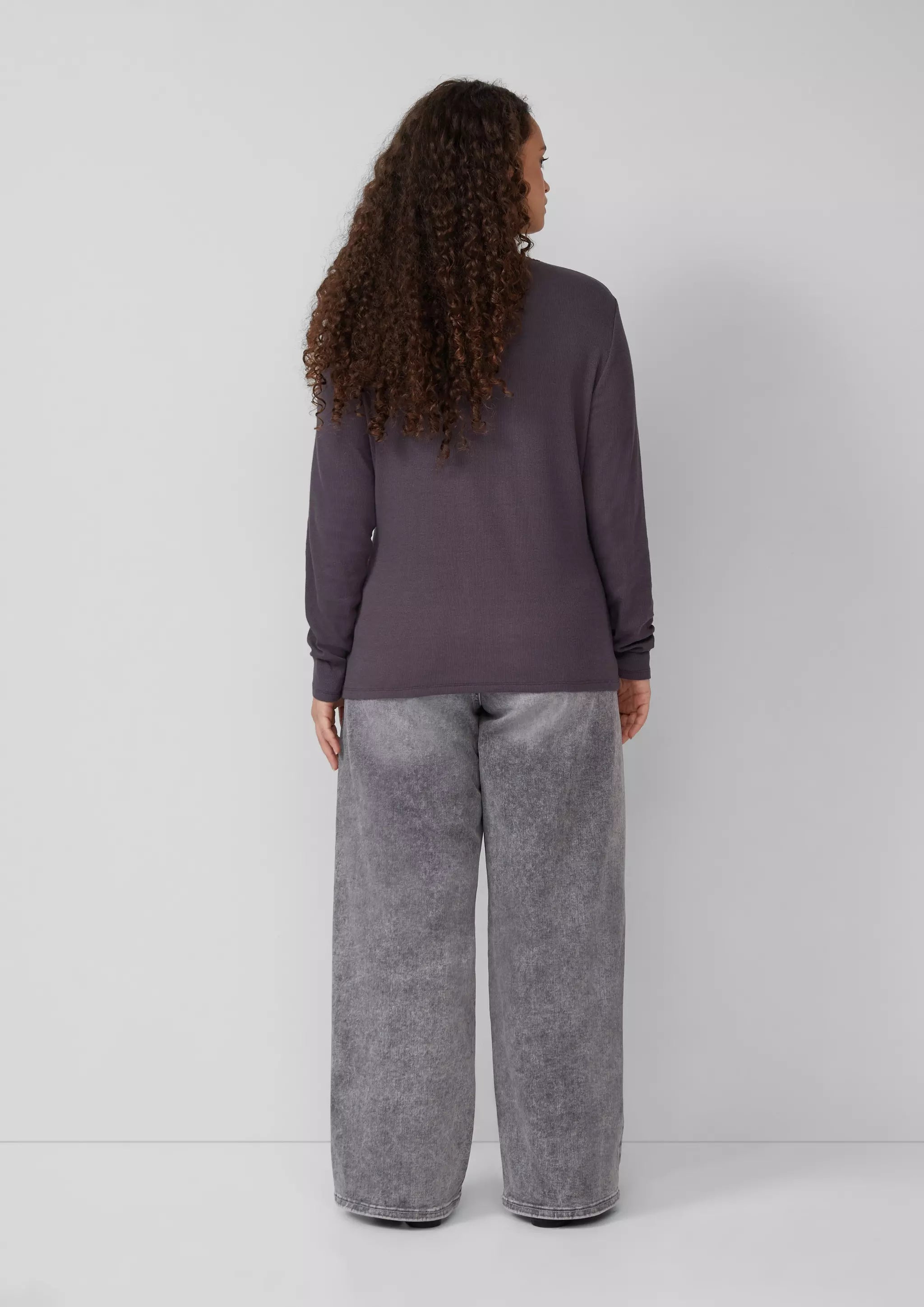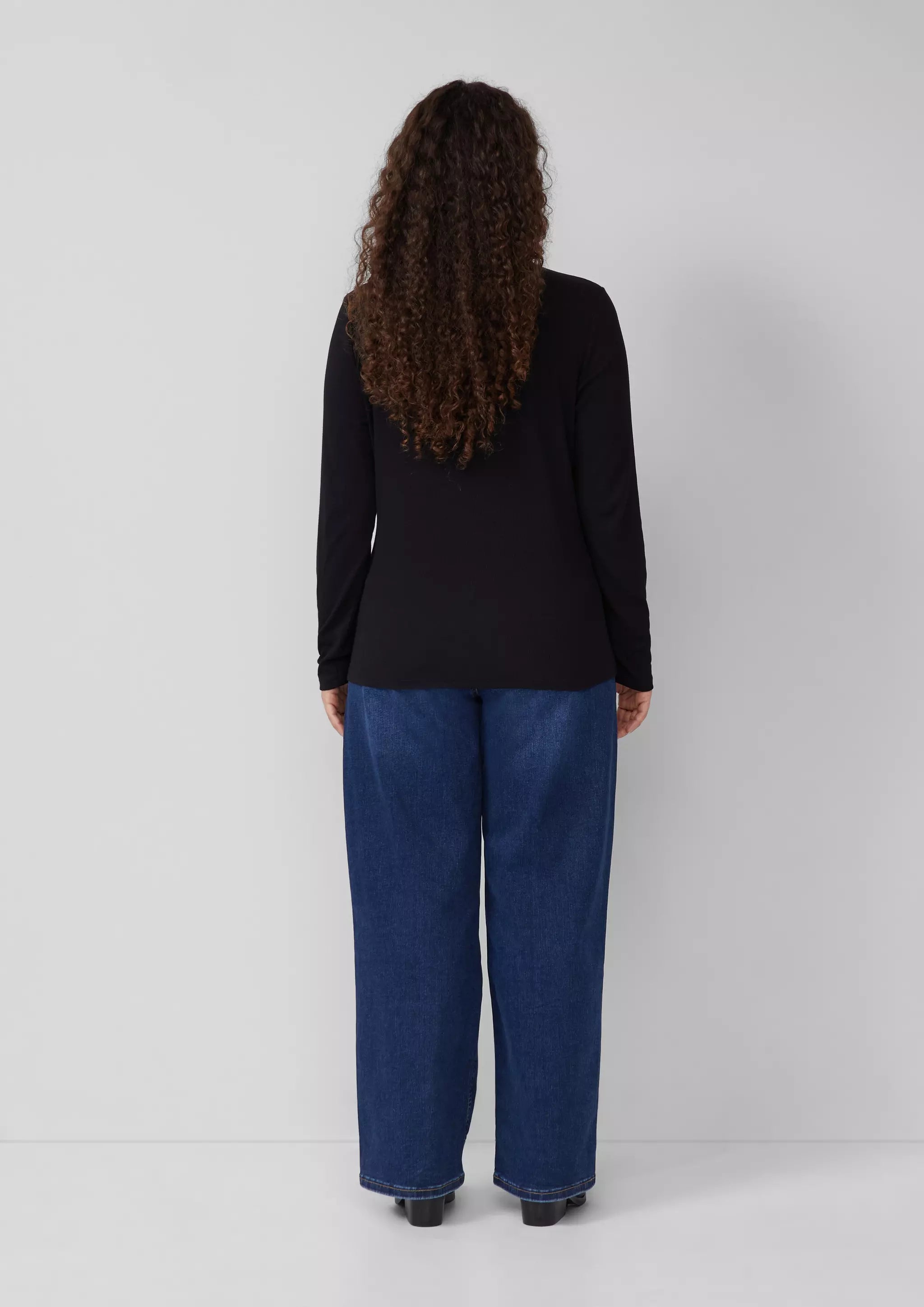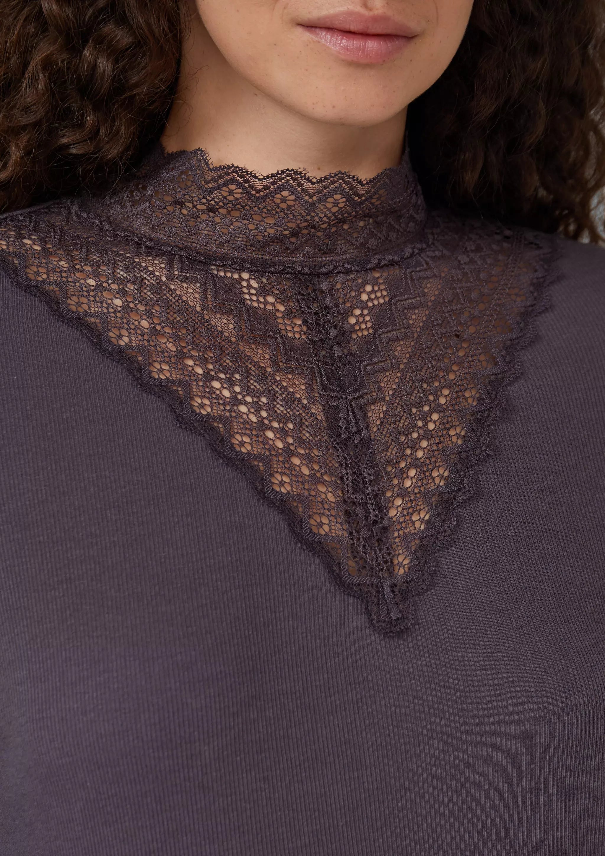 Rippshirt mit Spitzeneinsatz und Stehkragen aus Spitze