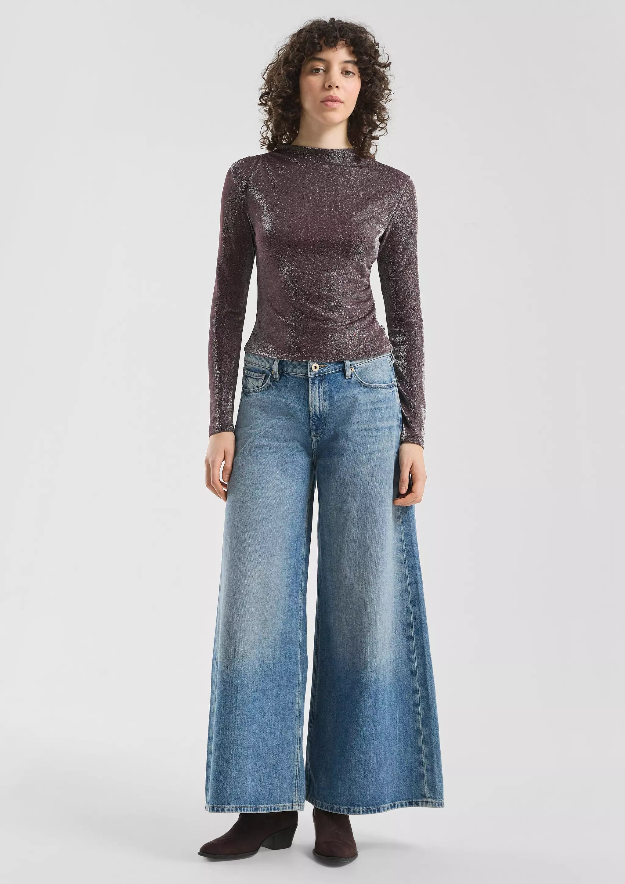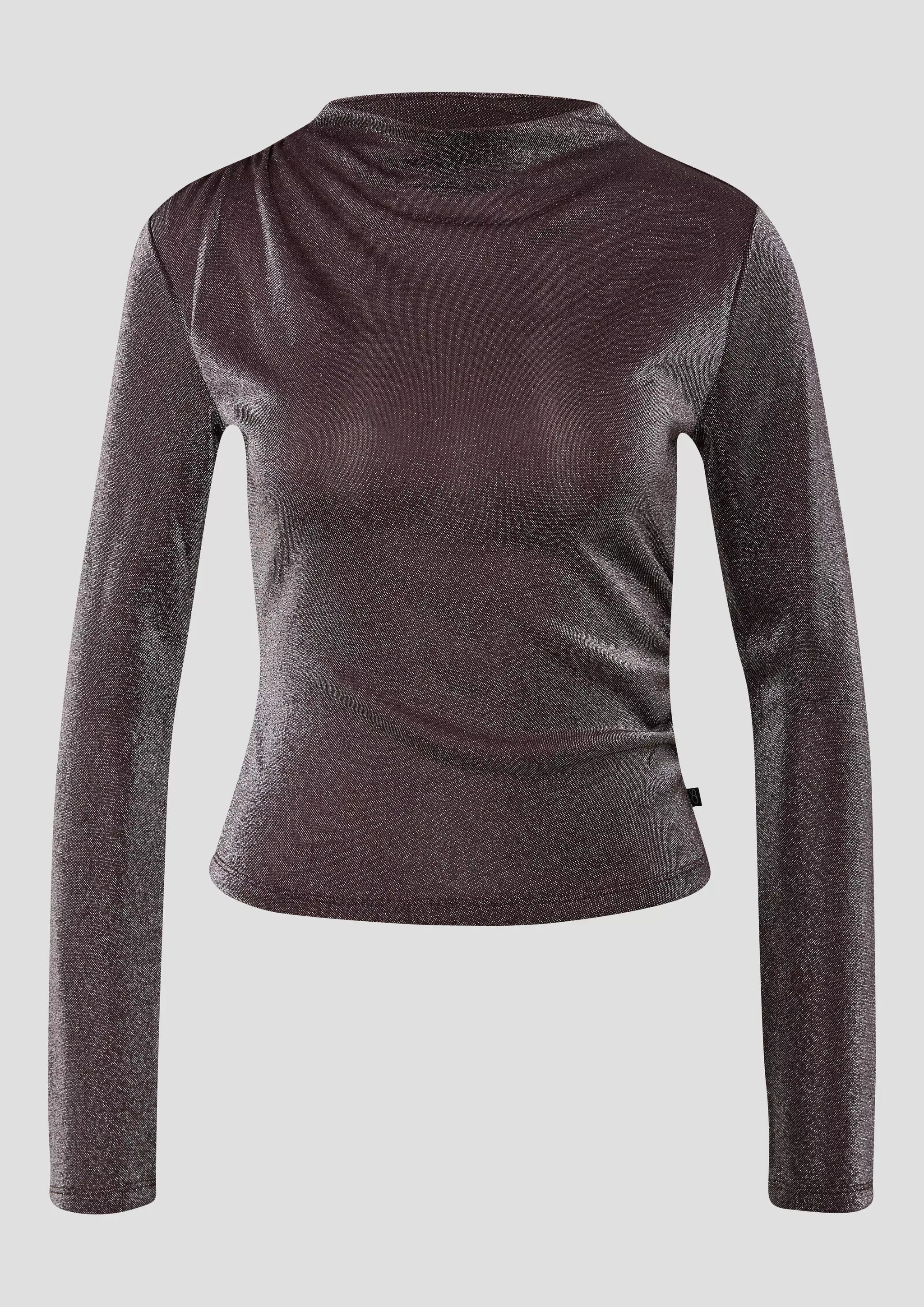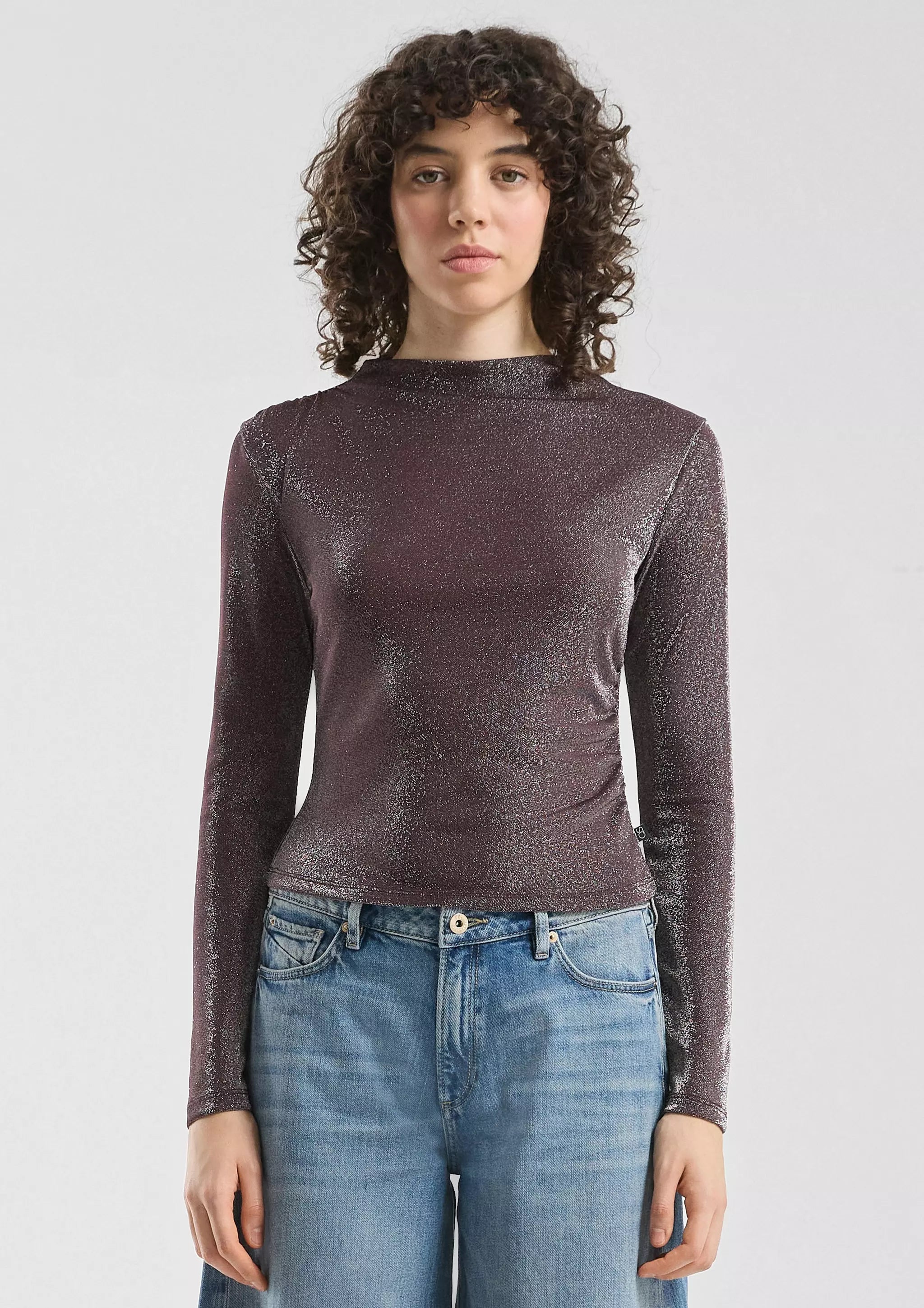 Dieses Glitzershirt in Metallic-Optik bringt Glamour in deinen Alltag. Der weiche Interlockjersey liegt angenehm auf der Haut, während die seitliche Raffung für eine coole Silhouette sorgt. Die Slim Fit Passform und halblange Schnittführung machen das Langarmshirt zum perfekten Begleiter für entspannte Treffen oder spontane Abende in der Stadt.