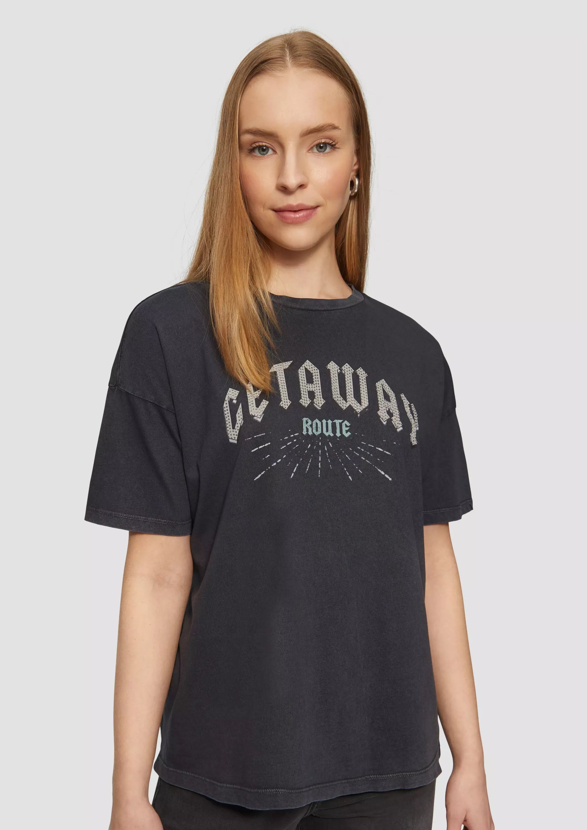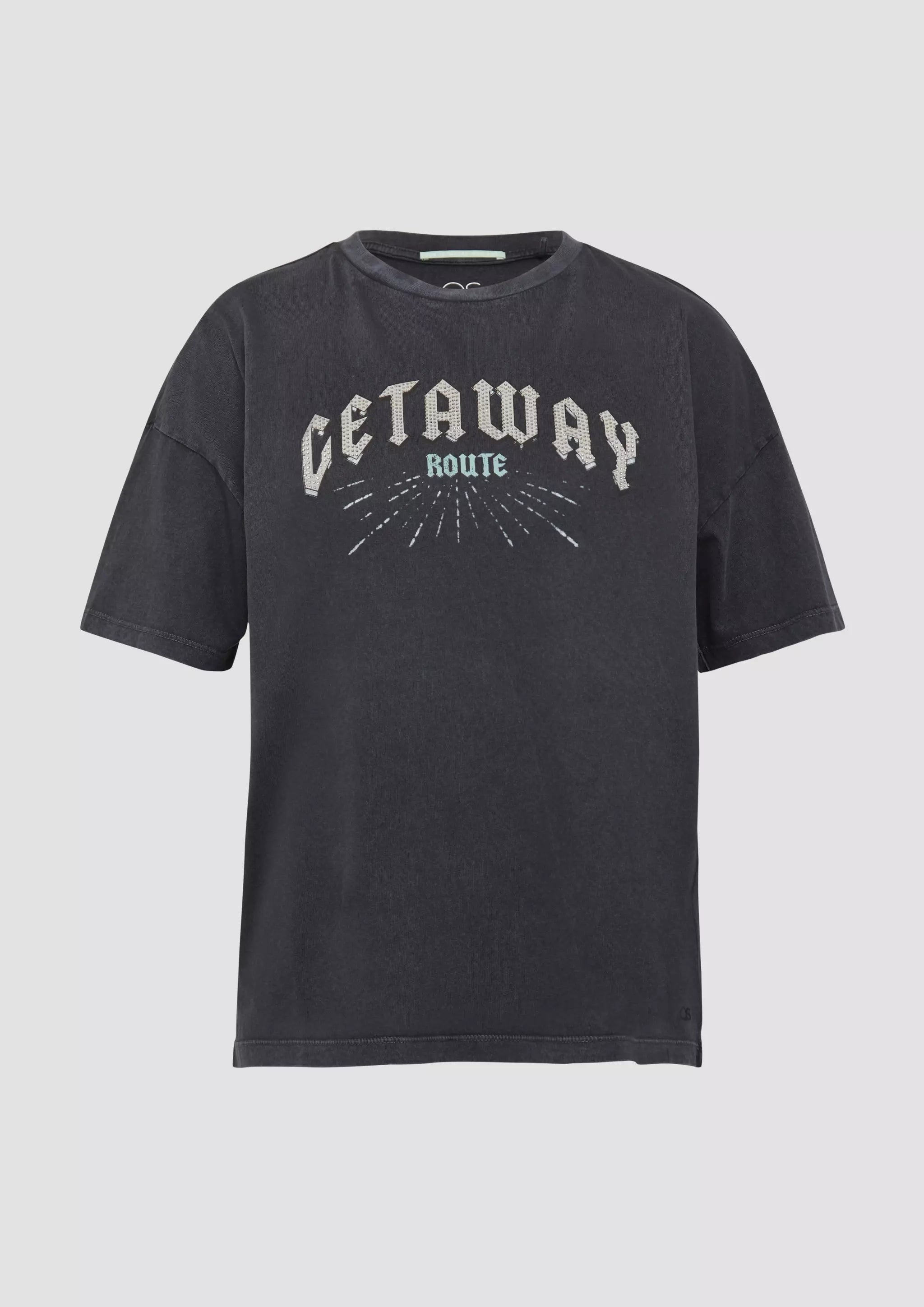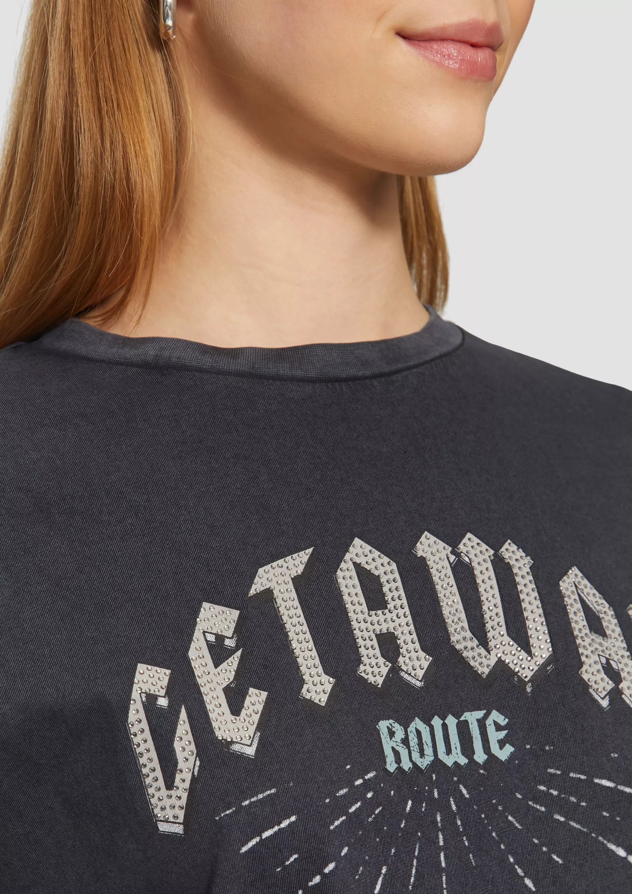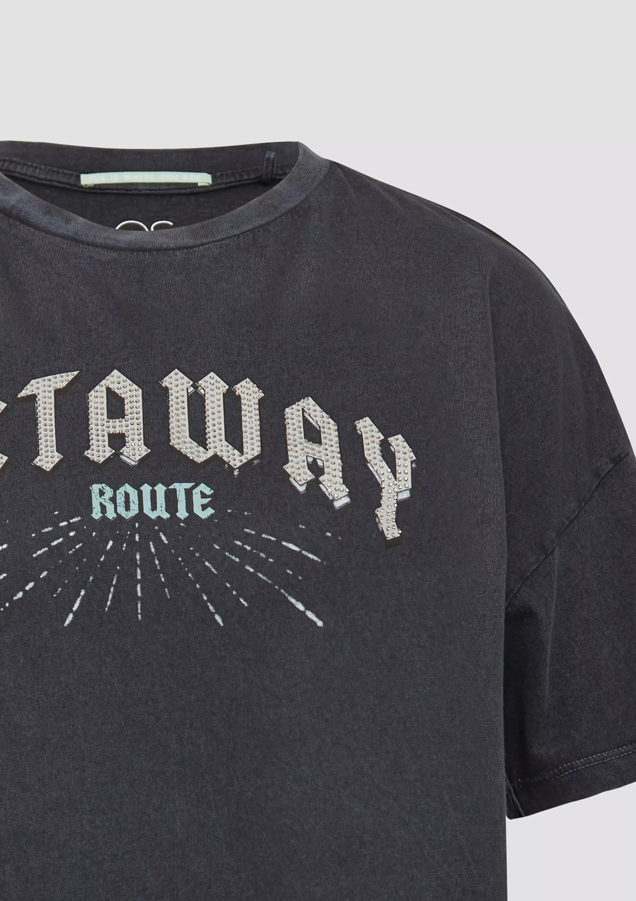 T-Shirt in gewaschener Optik mit Schmucksteinen