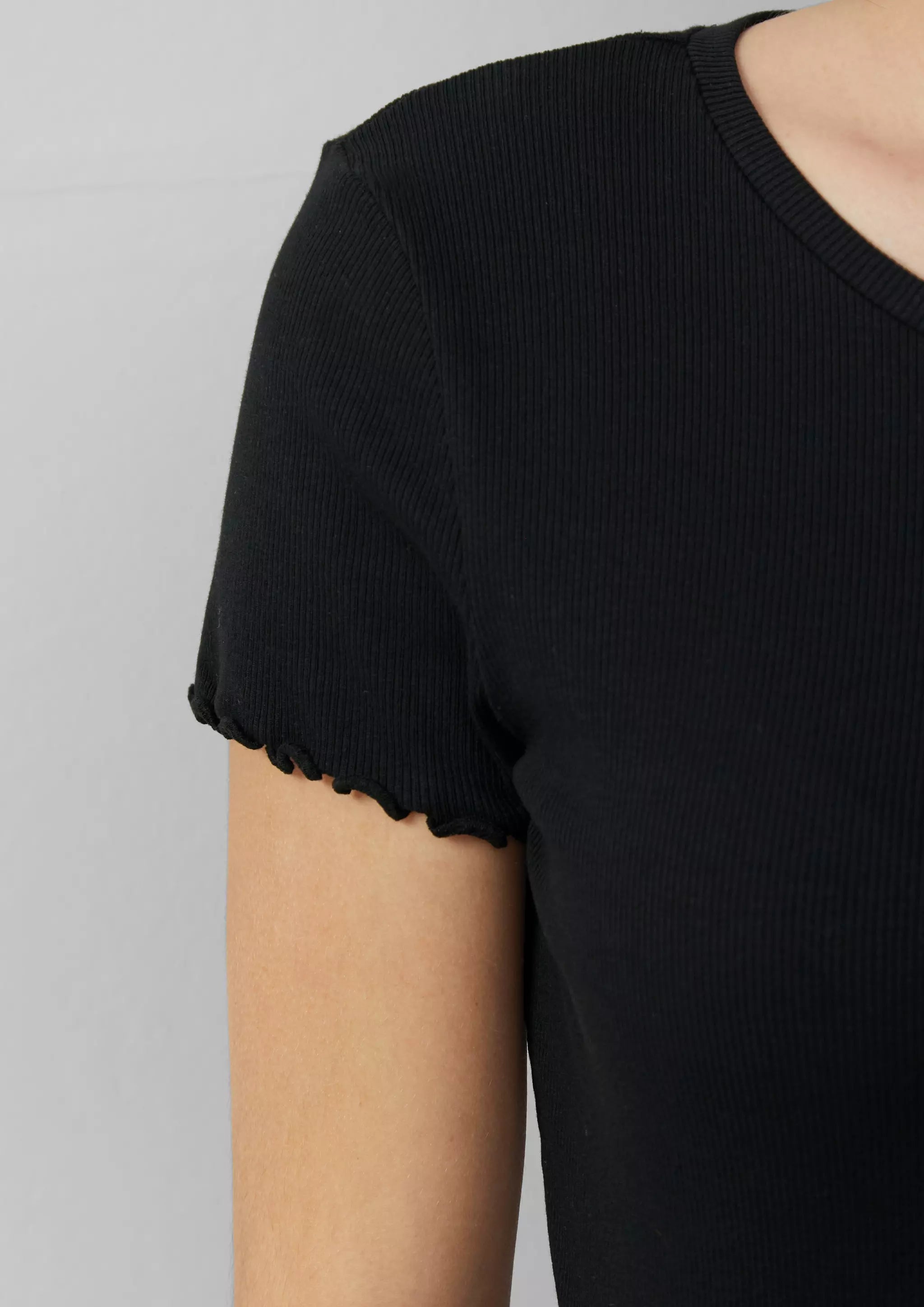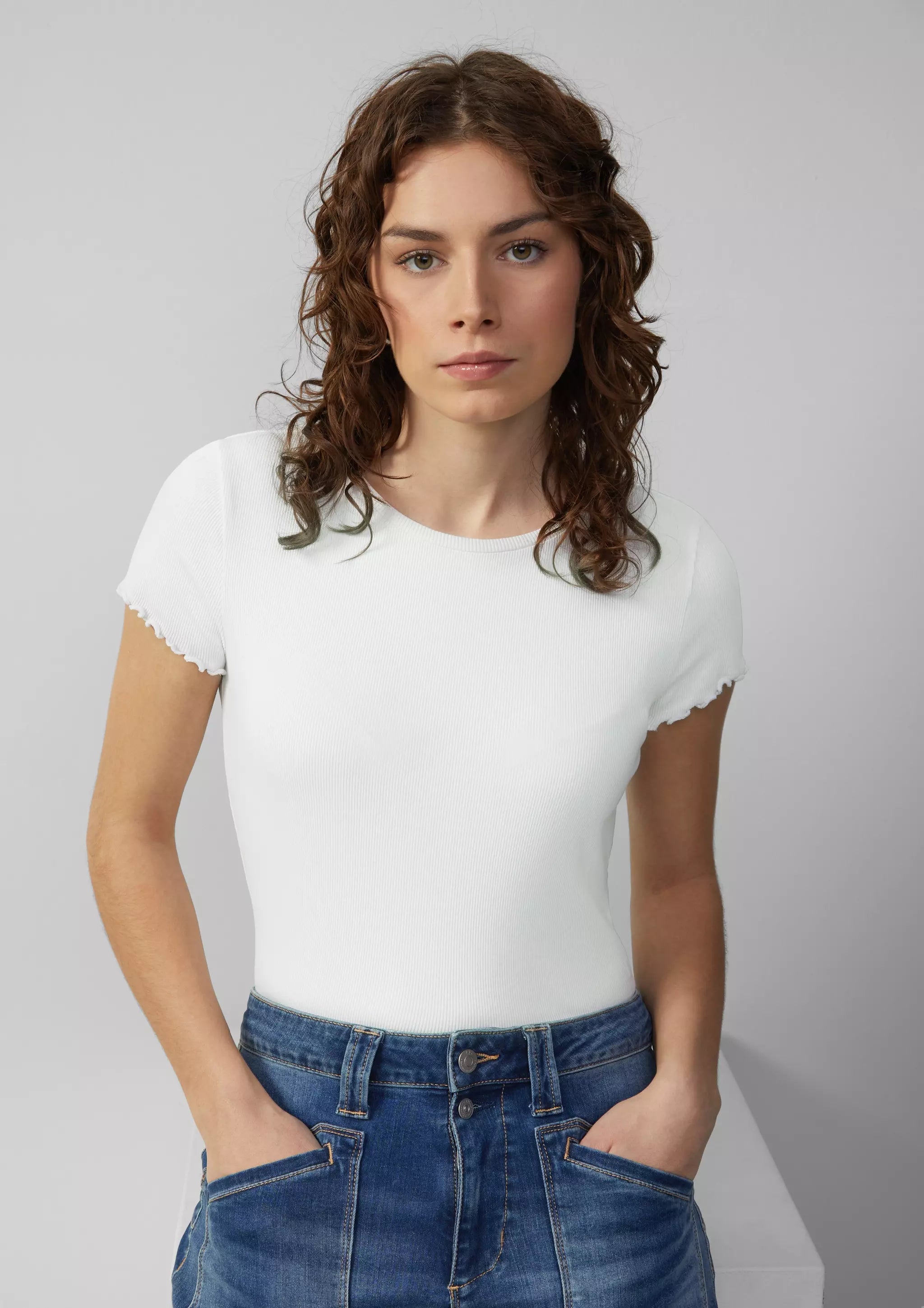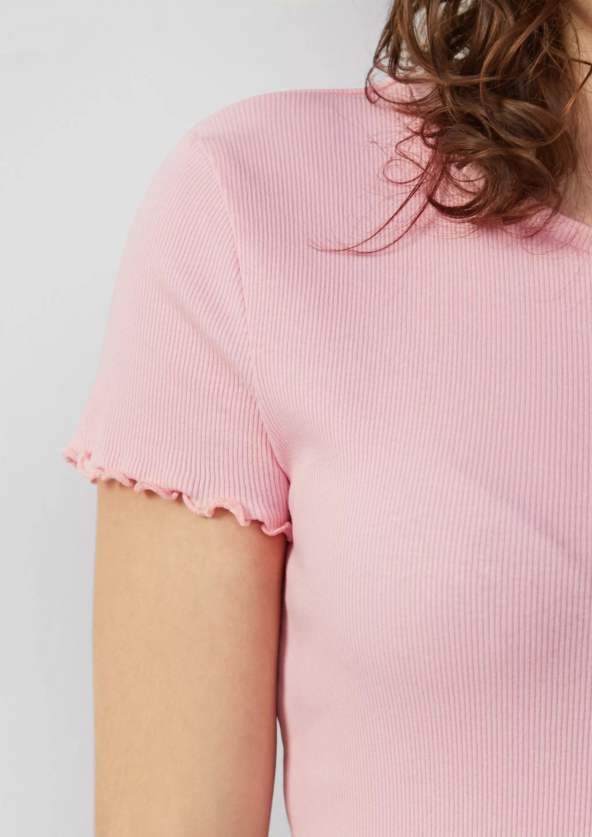 Verkürztes Rippshirt mit Rundhalsausschnitt