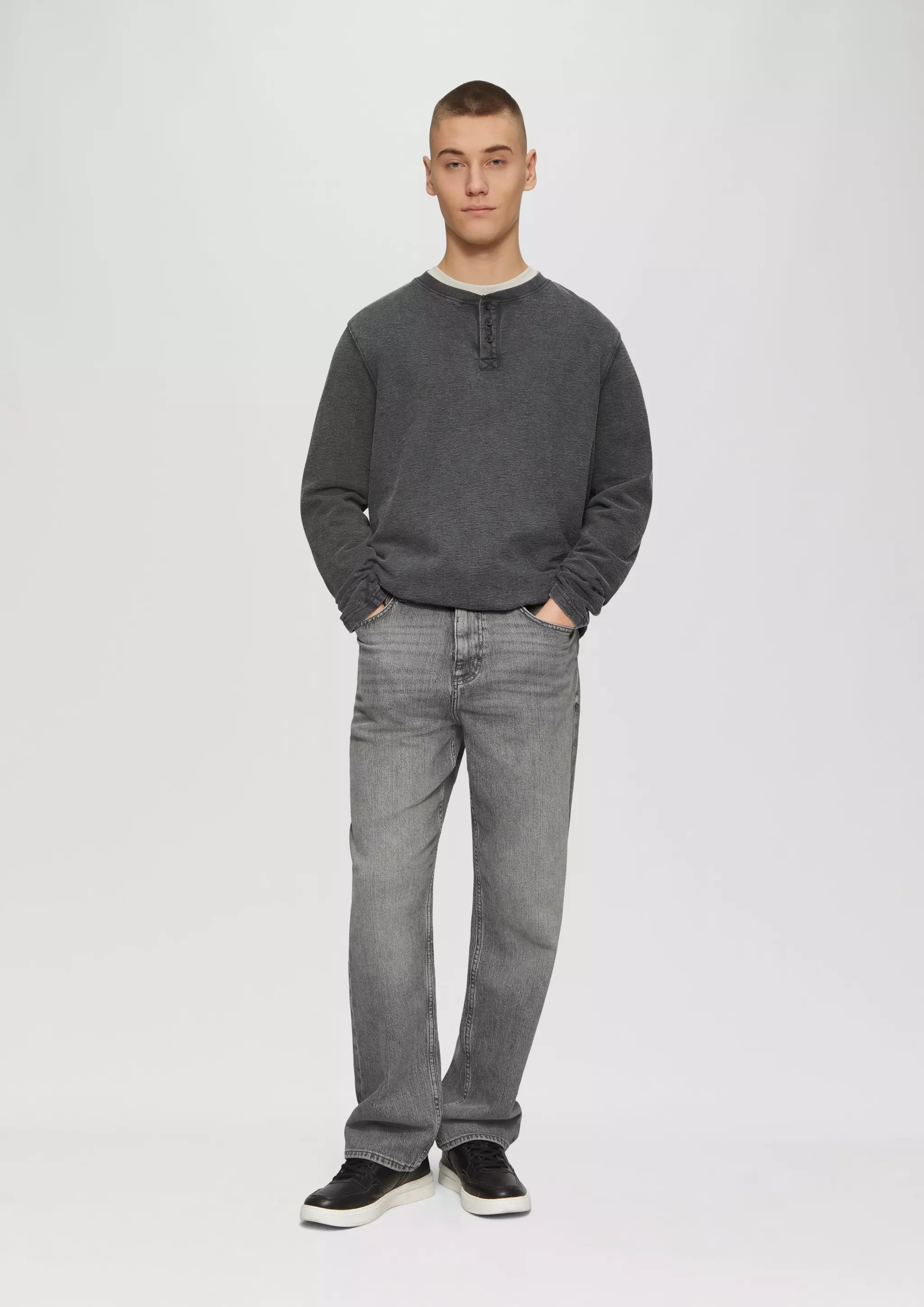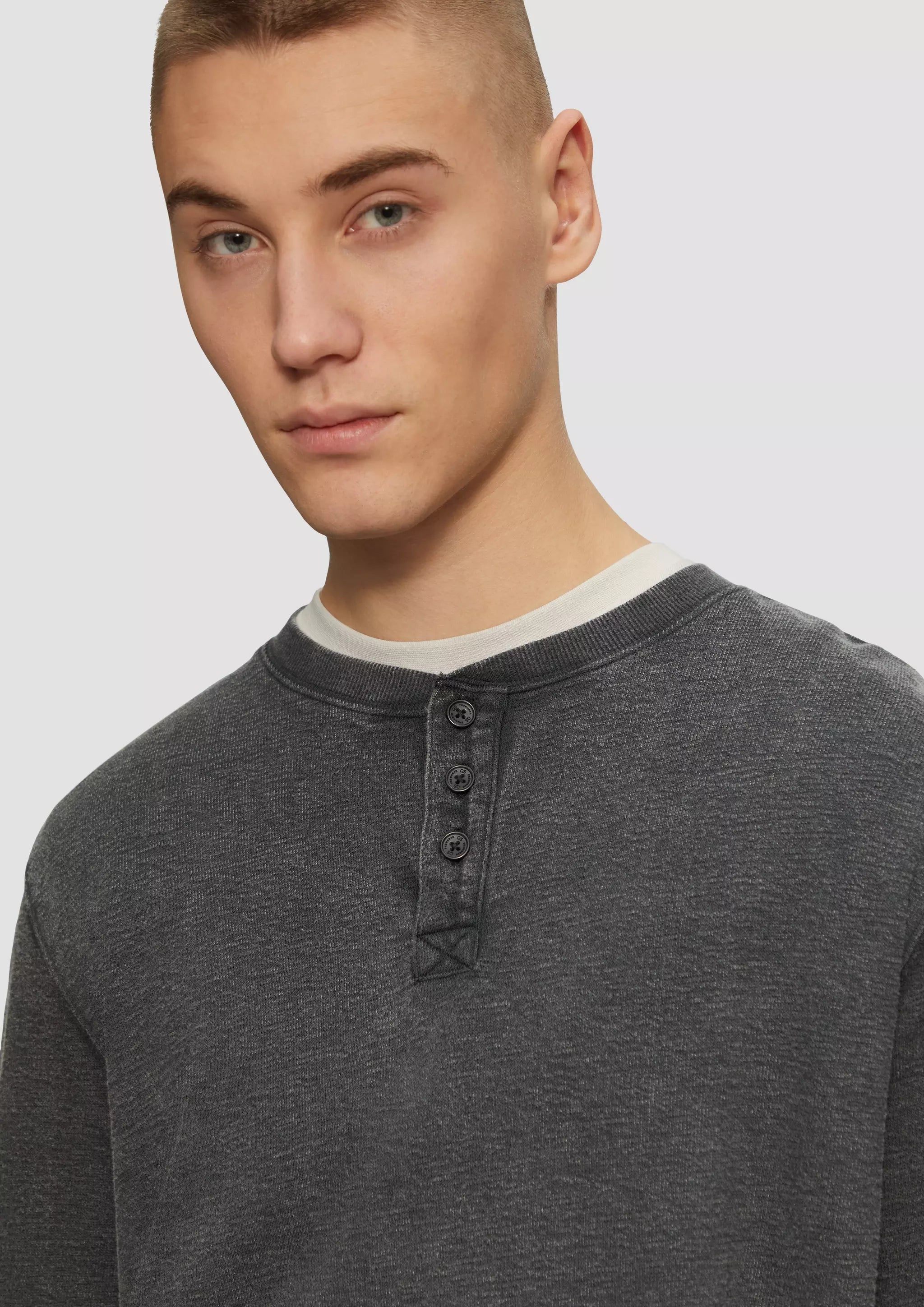 Gewaschenes Henley-Longsleeve in Strukturjersey
