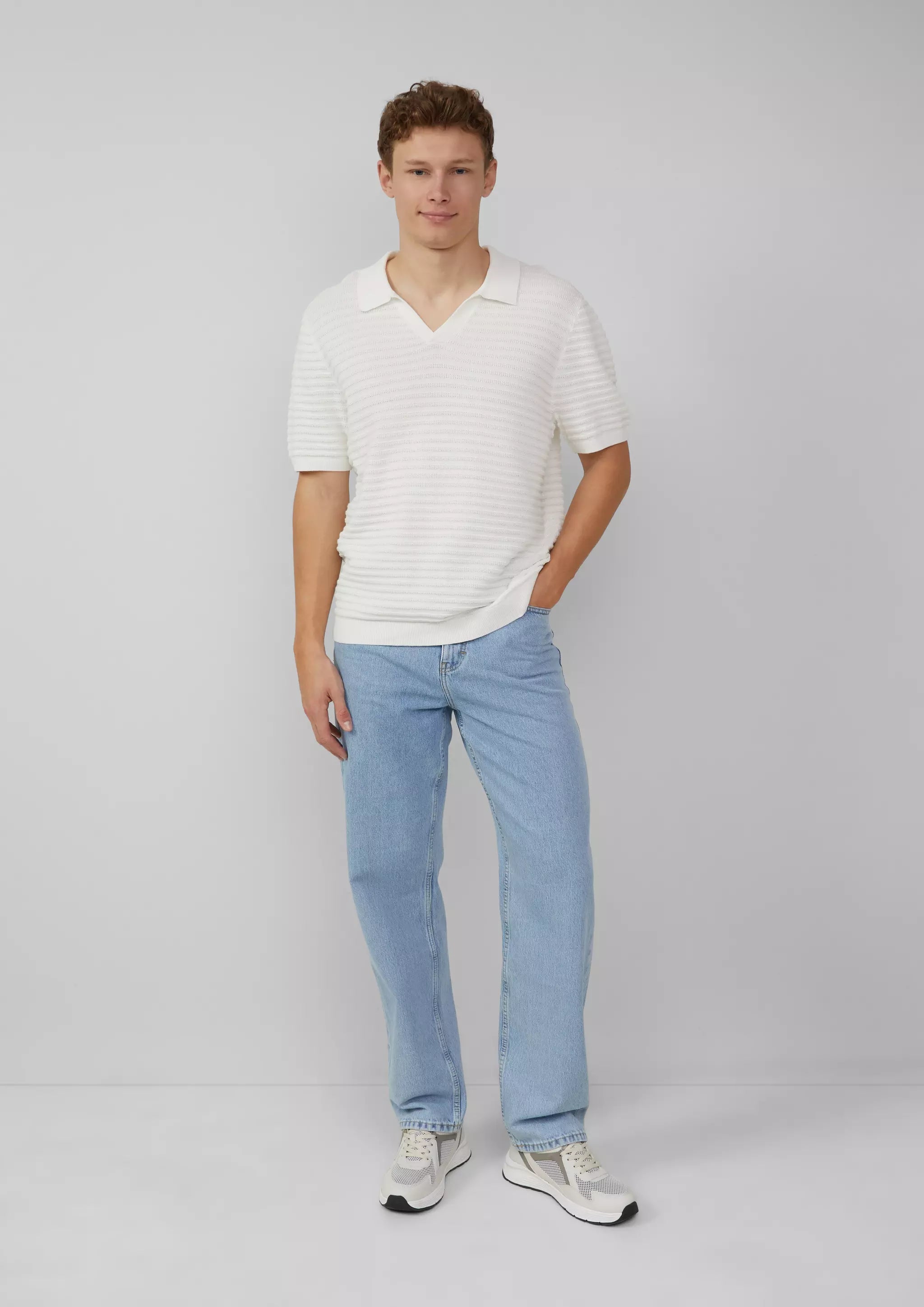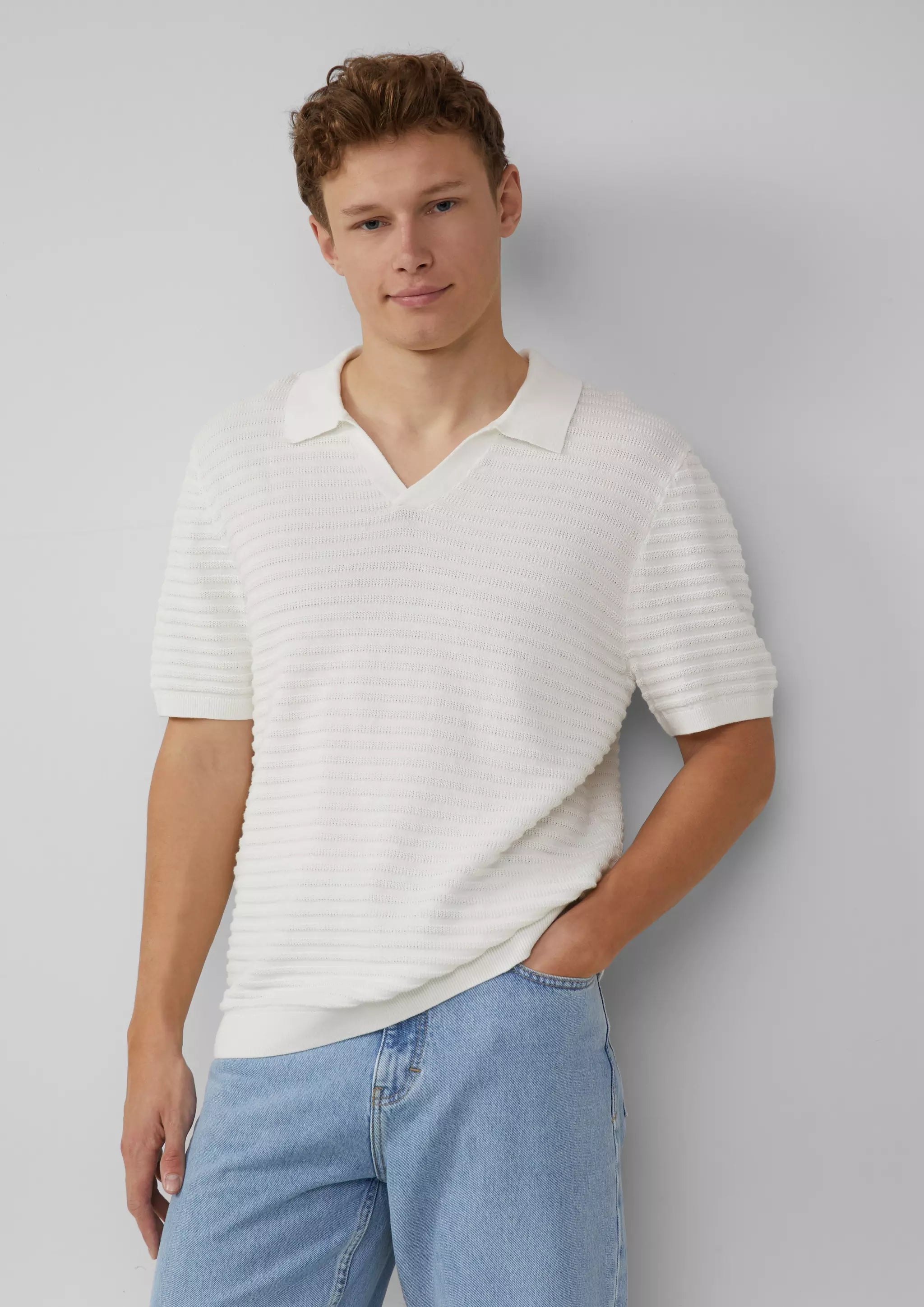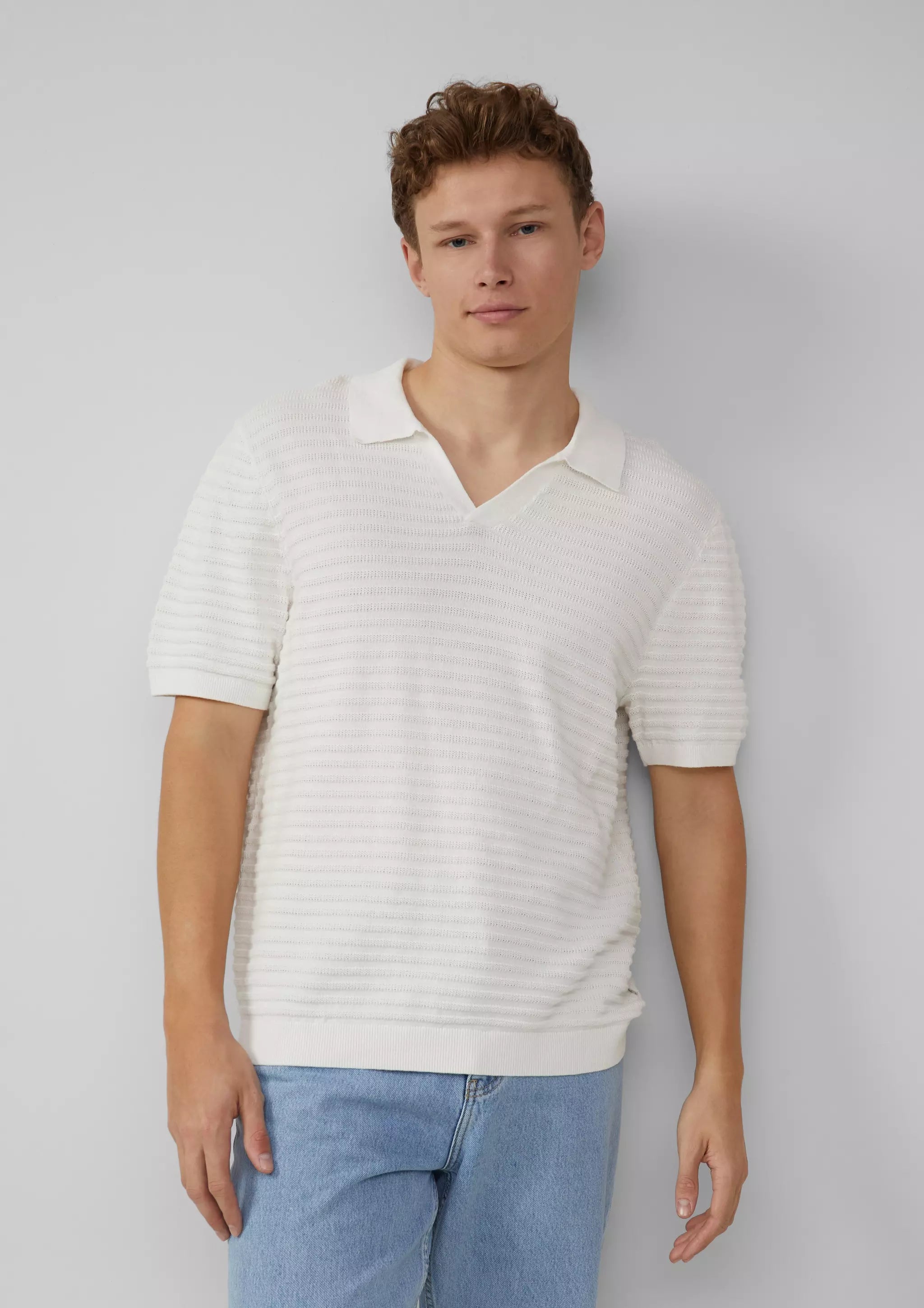 Strickpolo mit offenem Kragen und Struktur