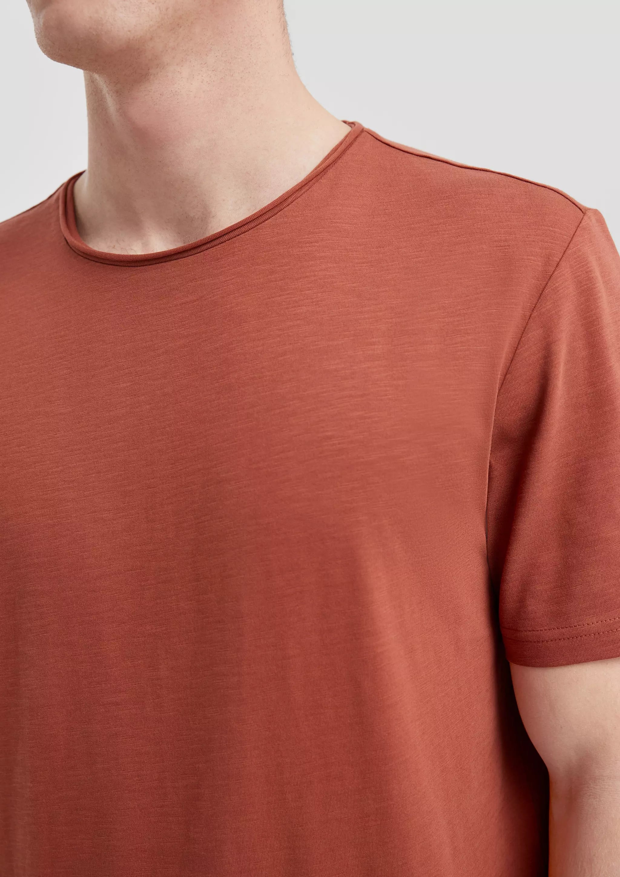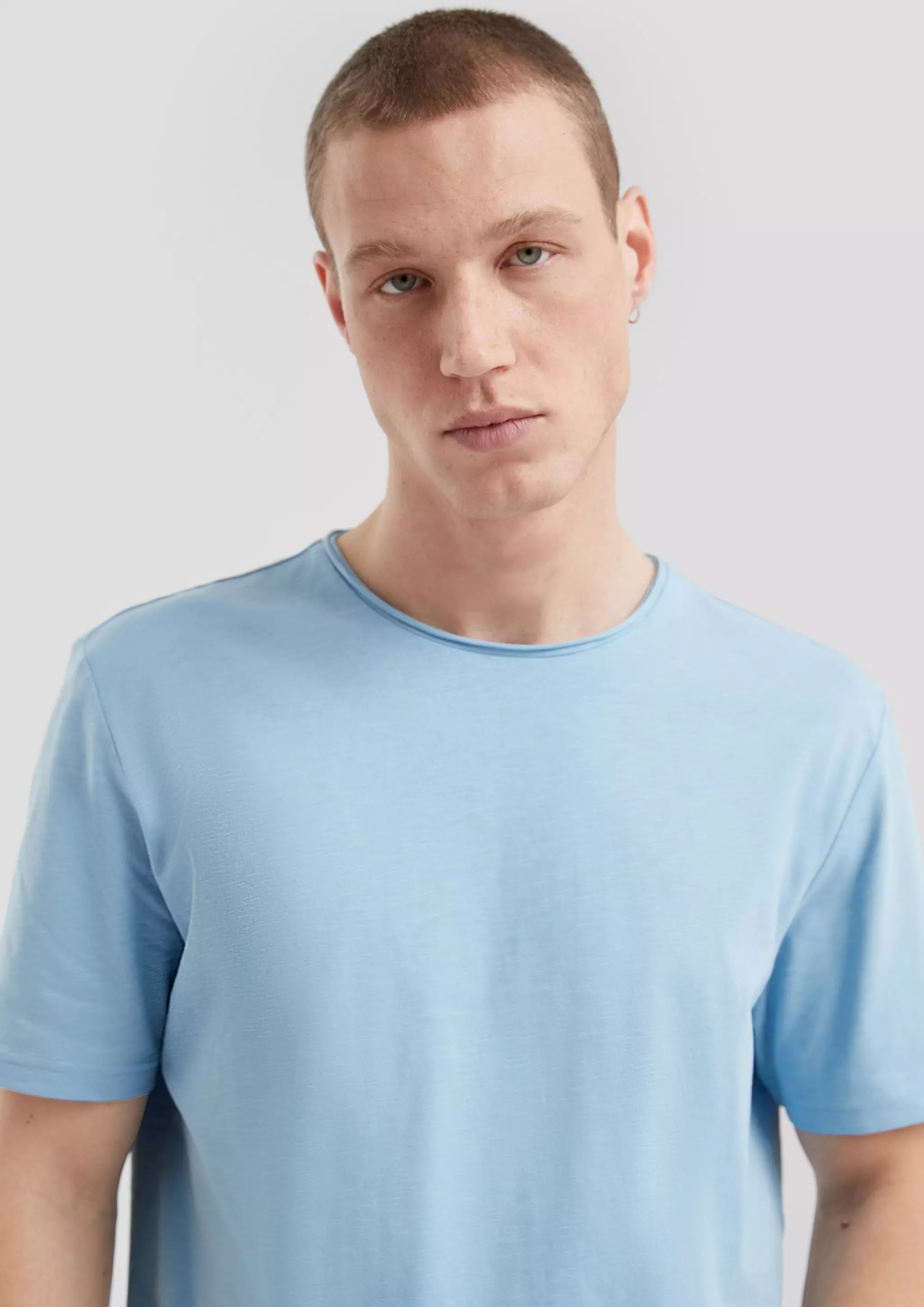 Dein lässiger Alltagsheld: Dieses angeraute Baumwollshirt mit cooler Flammgarnstruktur und Rollkante. Der Regular Fit und Rundhalsausschnitt machen es zum perfekten Begleiter für deine Abenteuer. Stylisch und bequem - so rockst du den Tag!