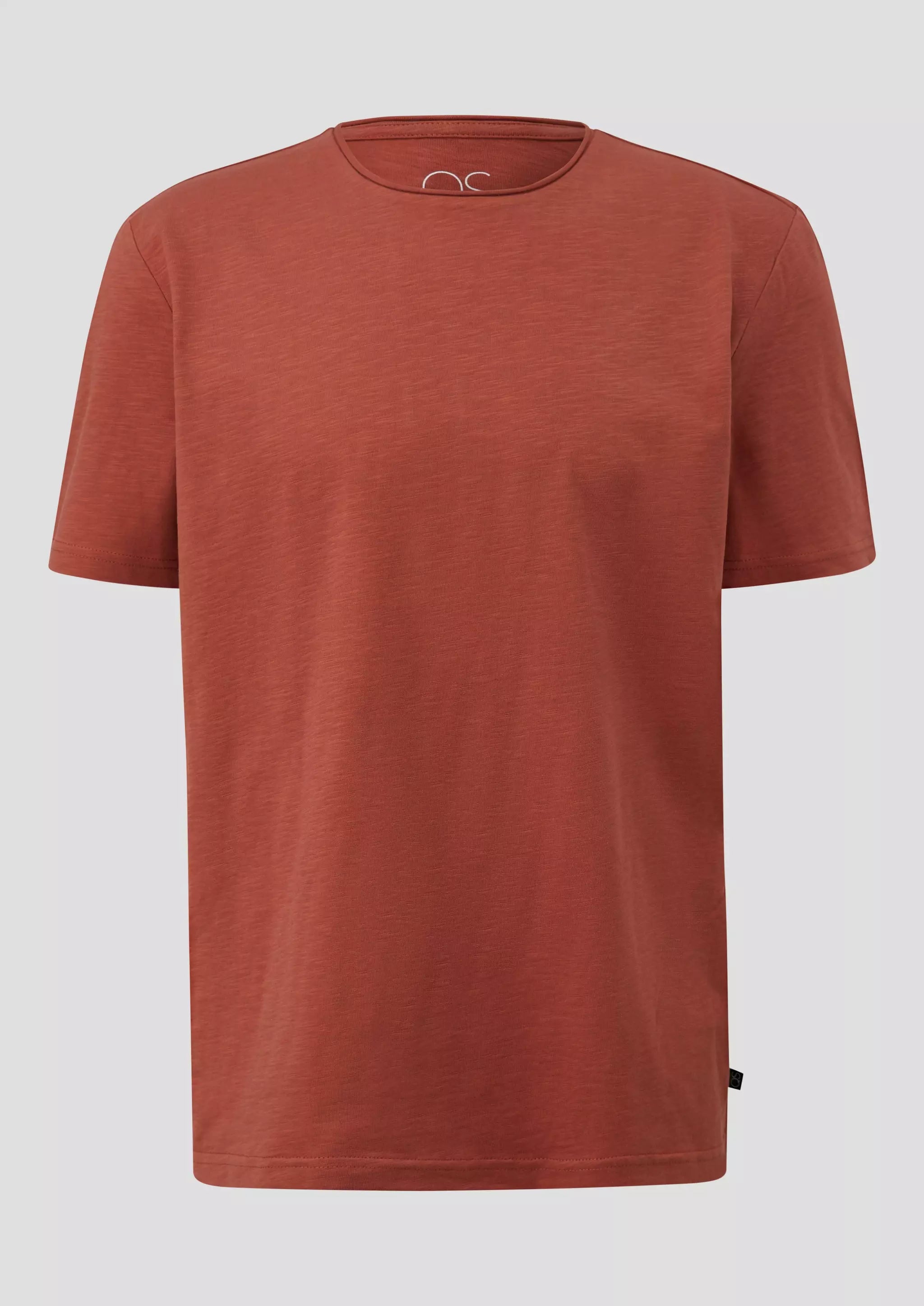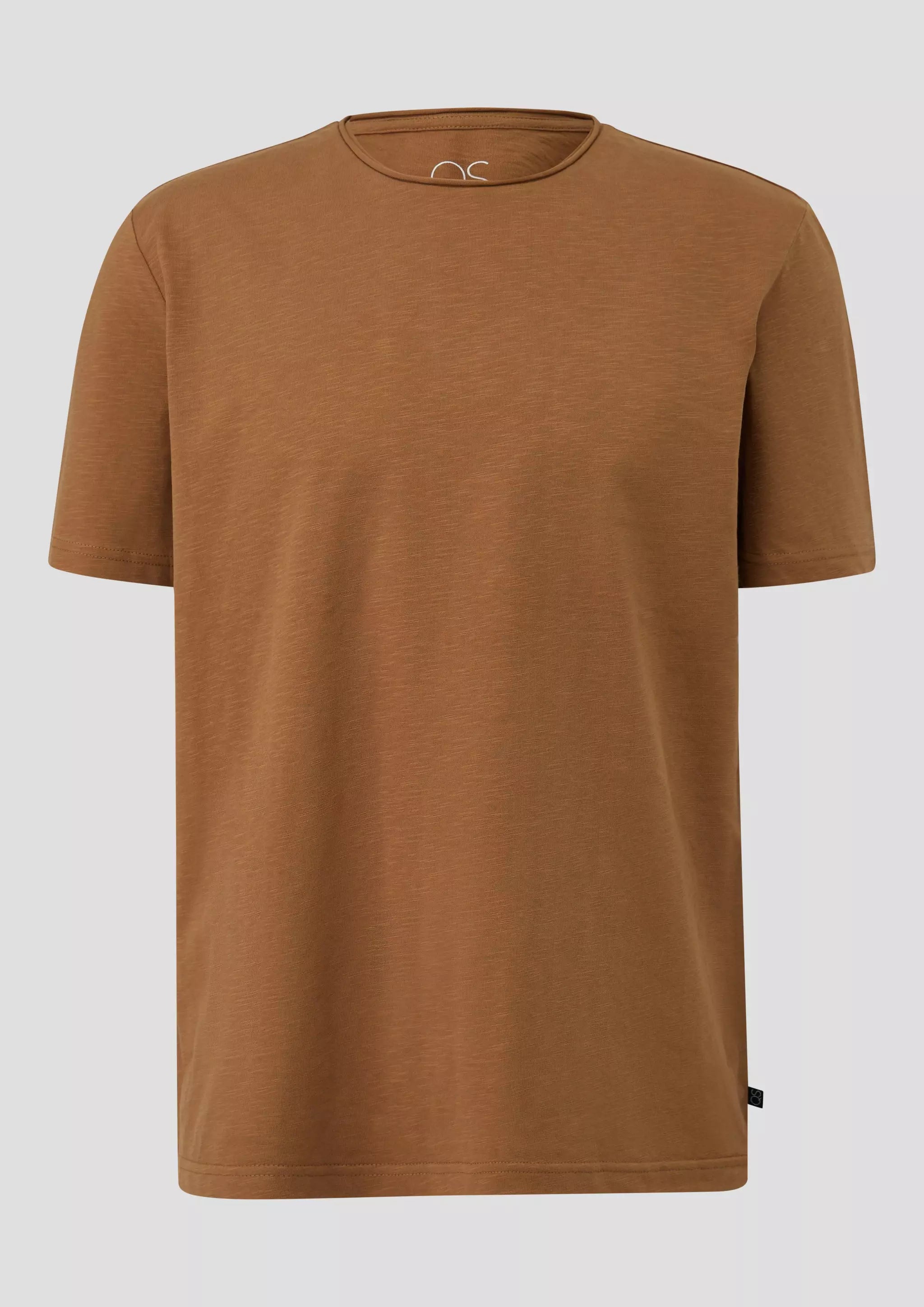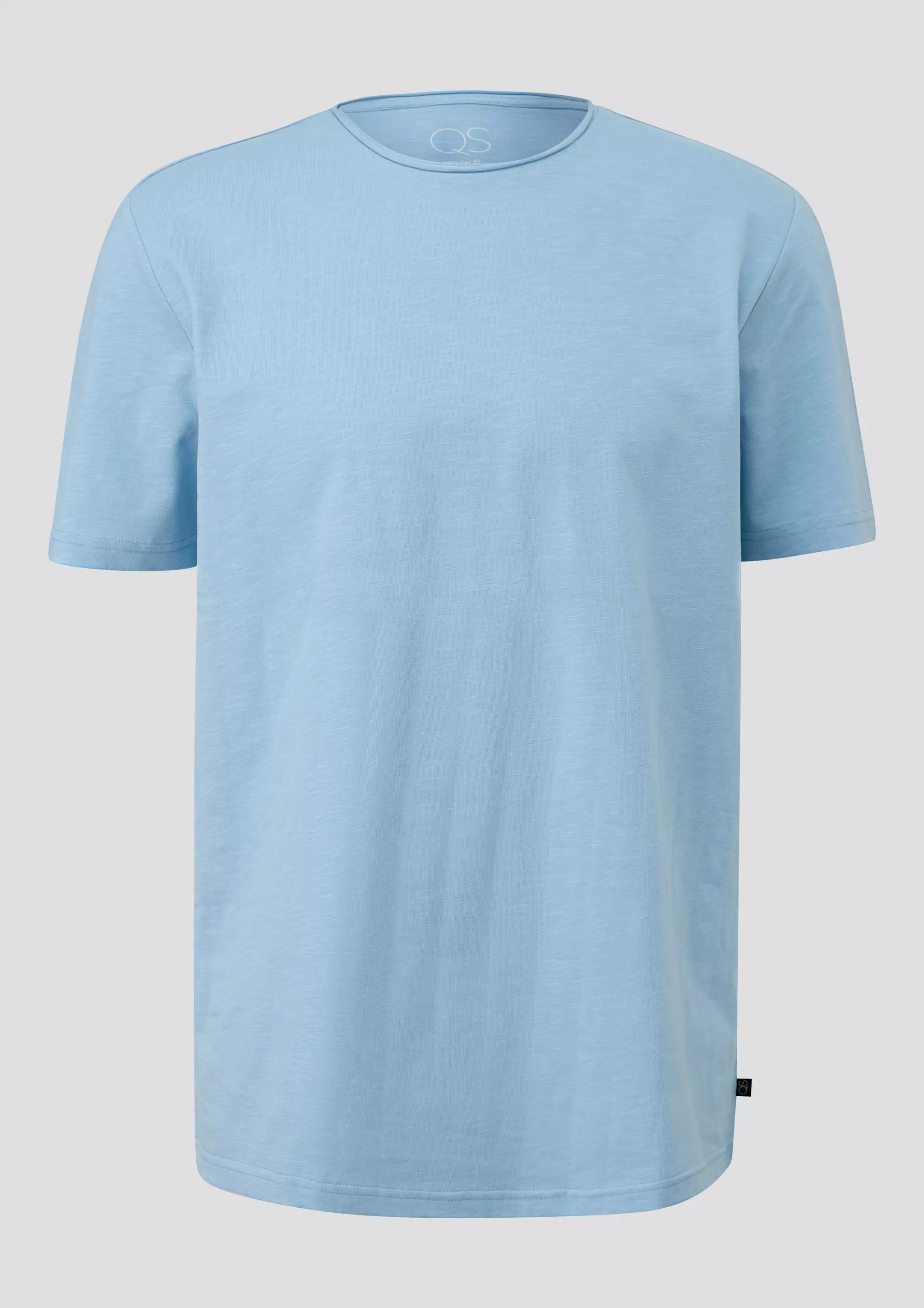 Baumwollshirt mit Rollkante und Flammgarnstruktur