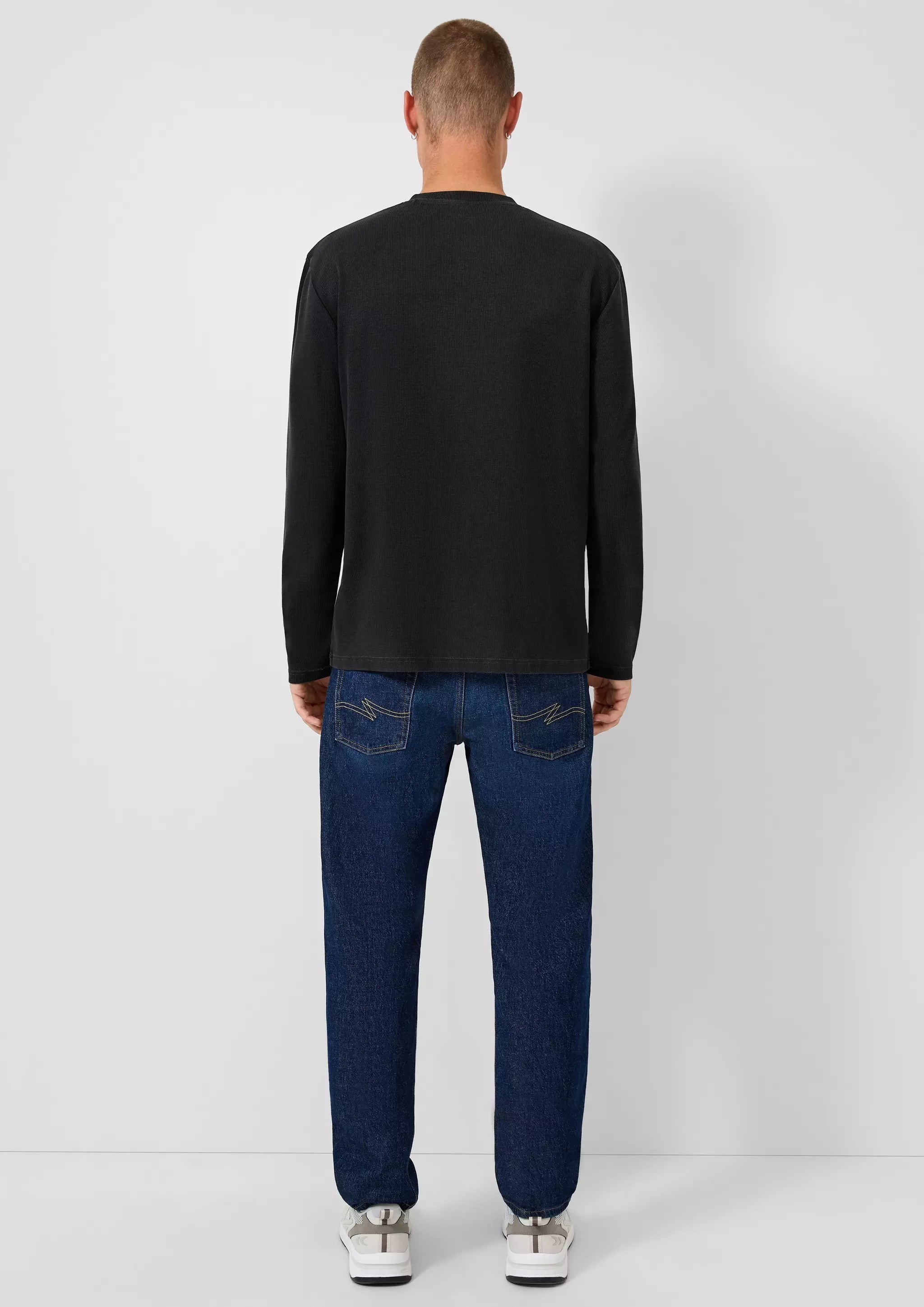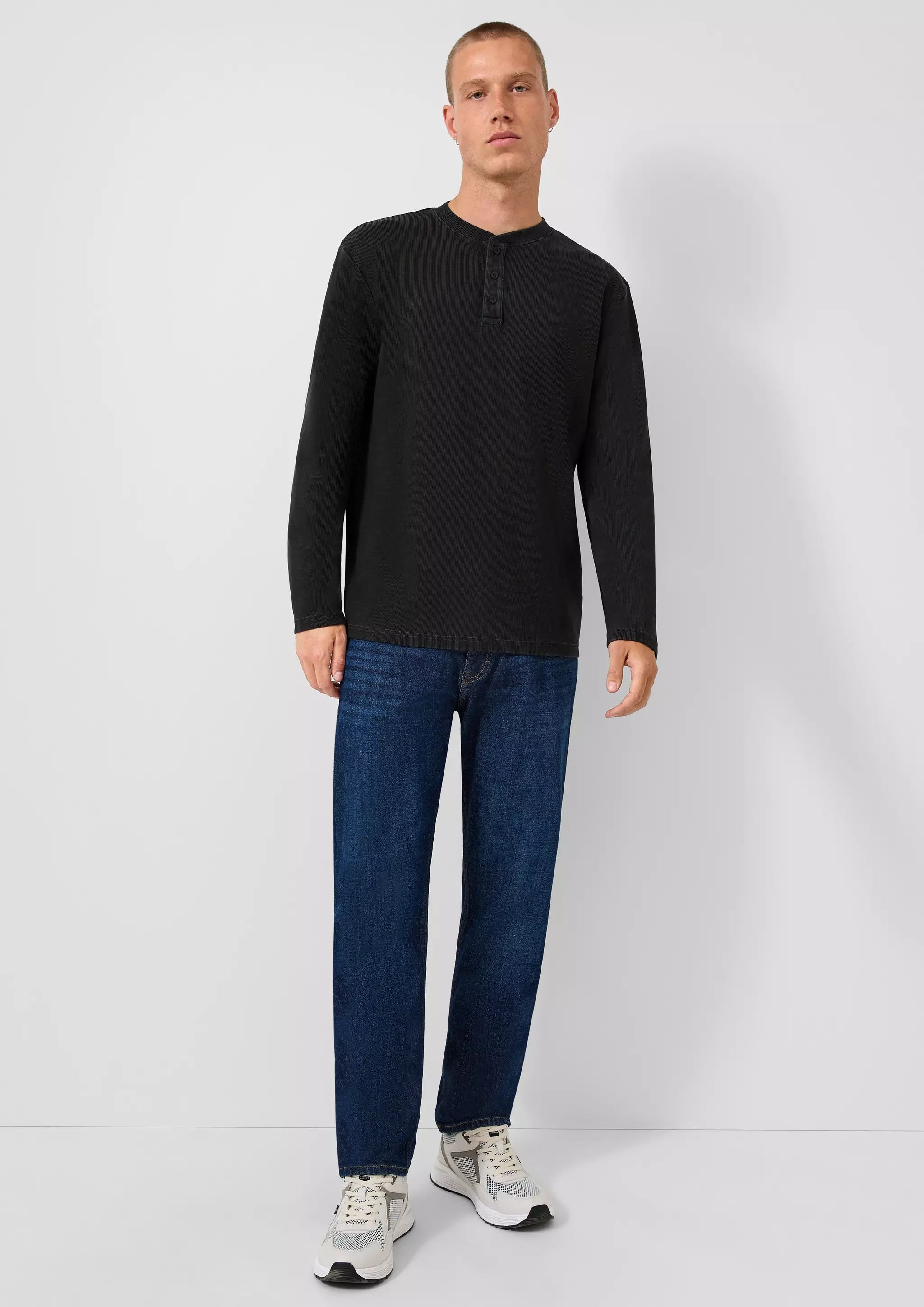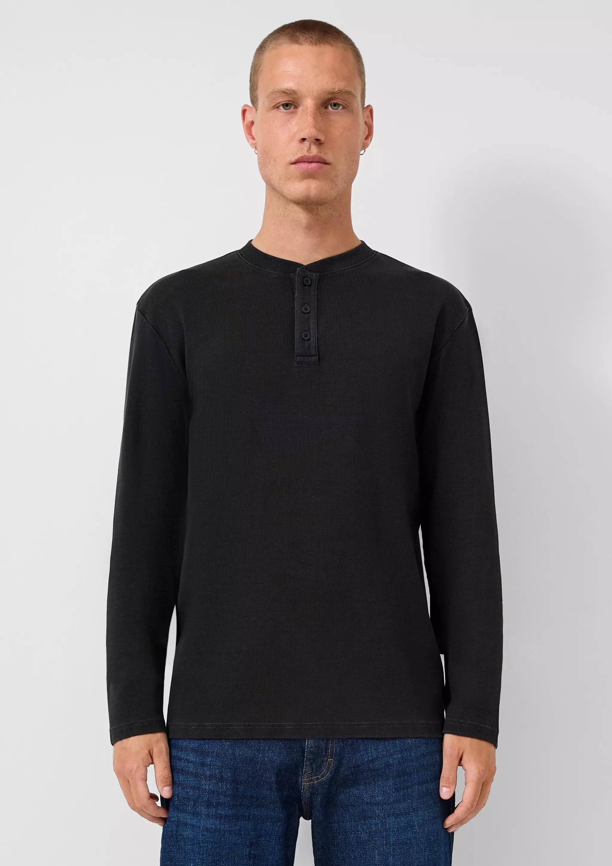 Gewaschenes Henley-Langarmshirt mit Rippstruktur