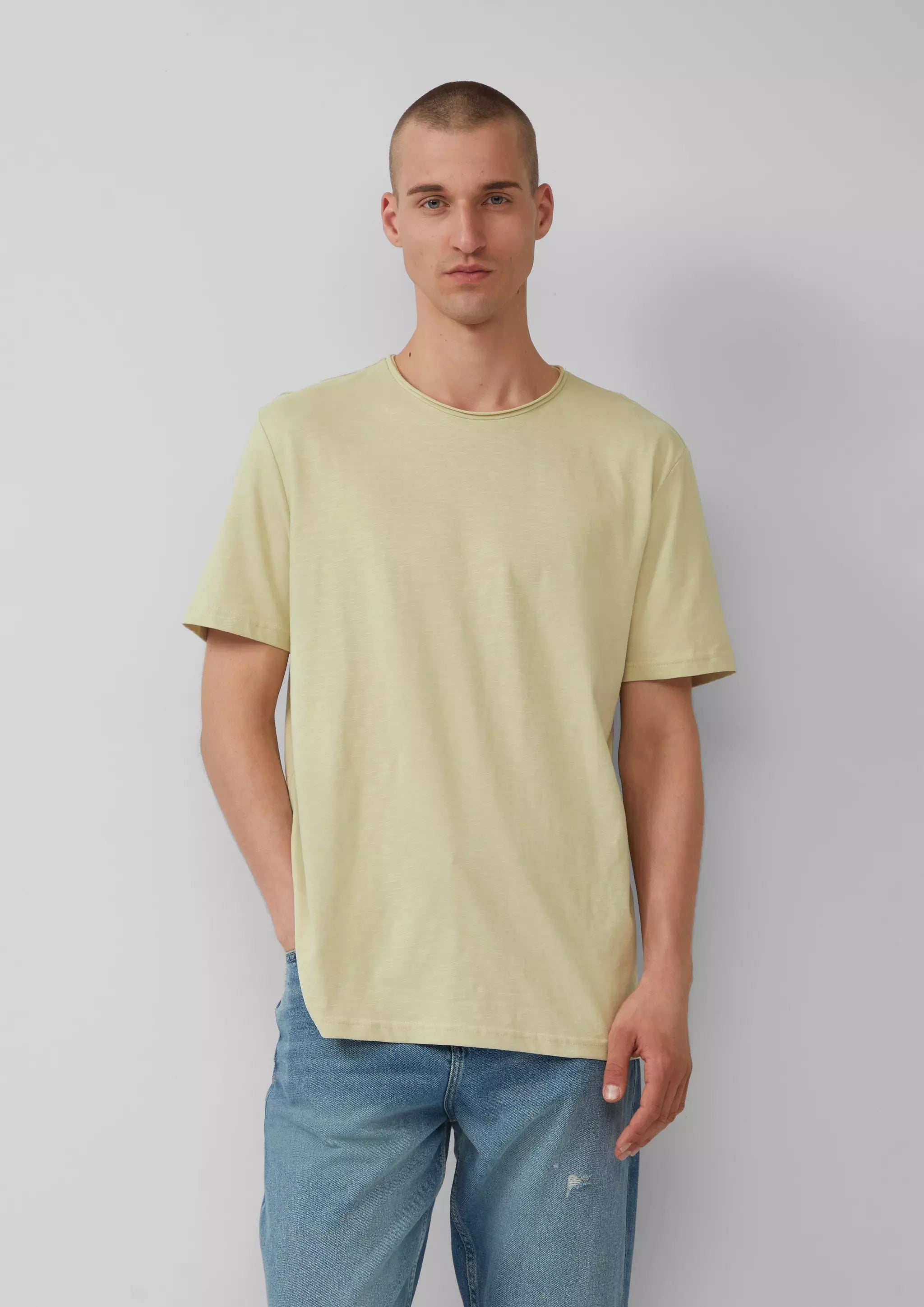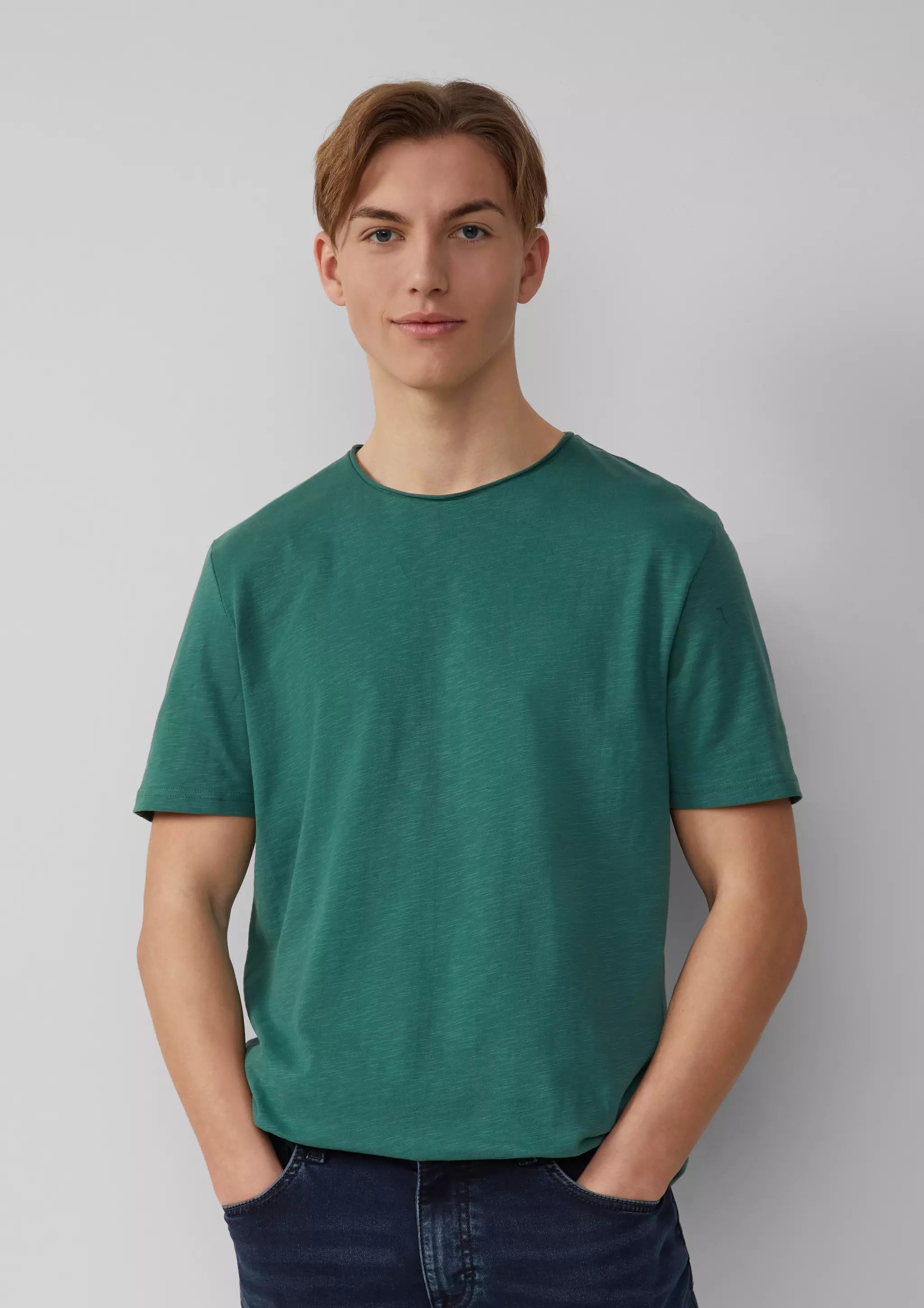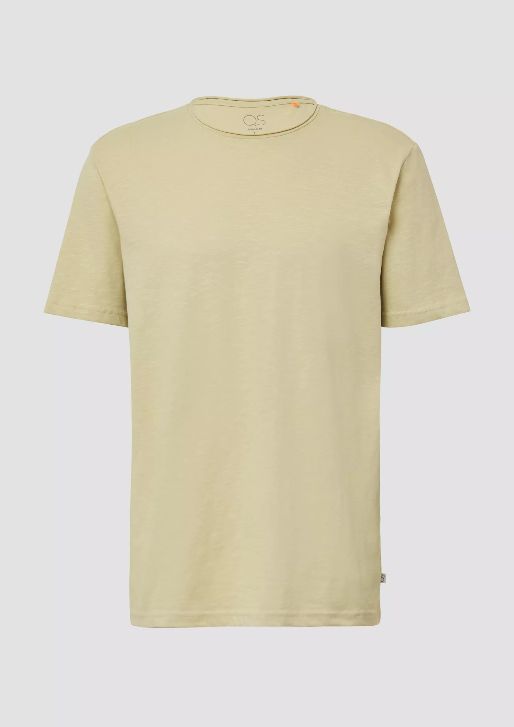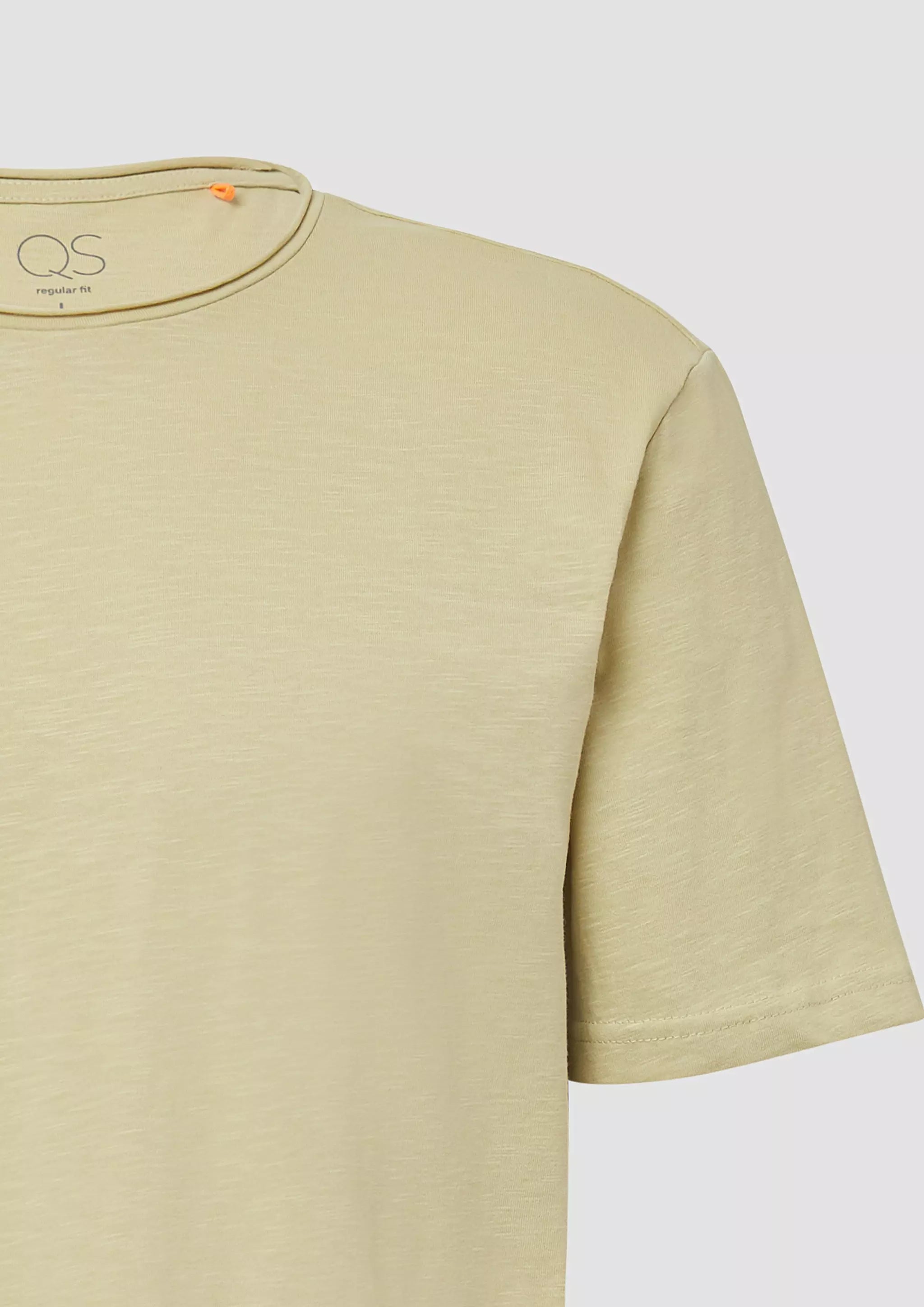 Baumwollshirt mit Rollkante und Flammgarnstruktur