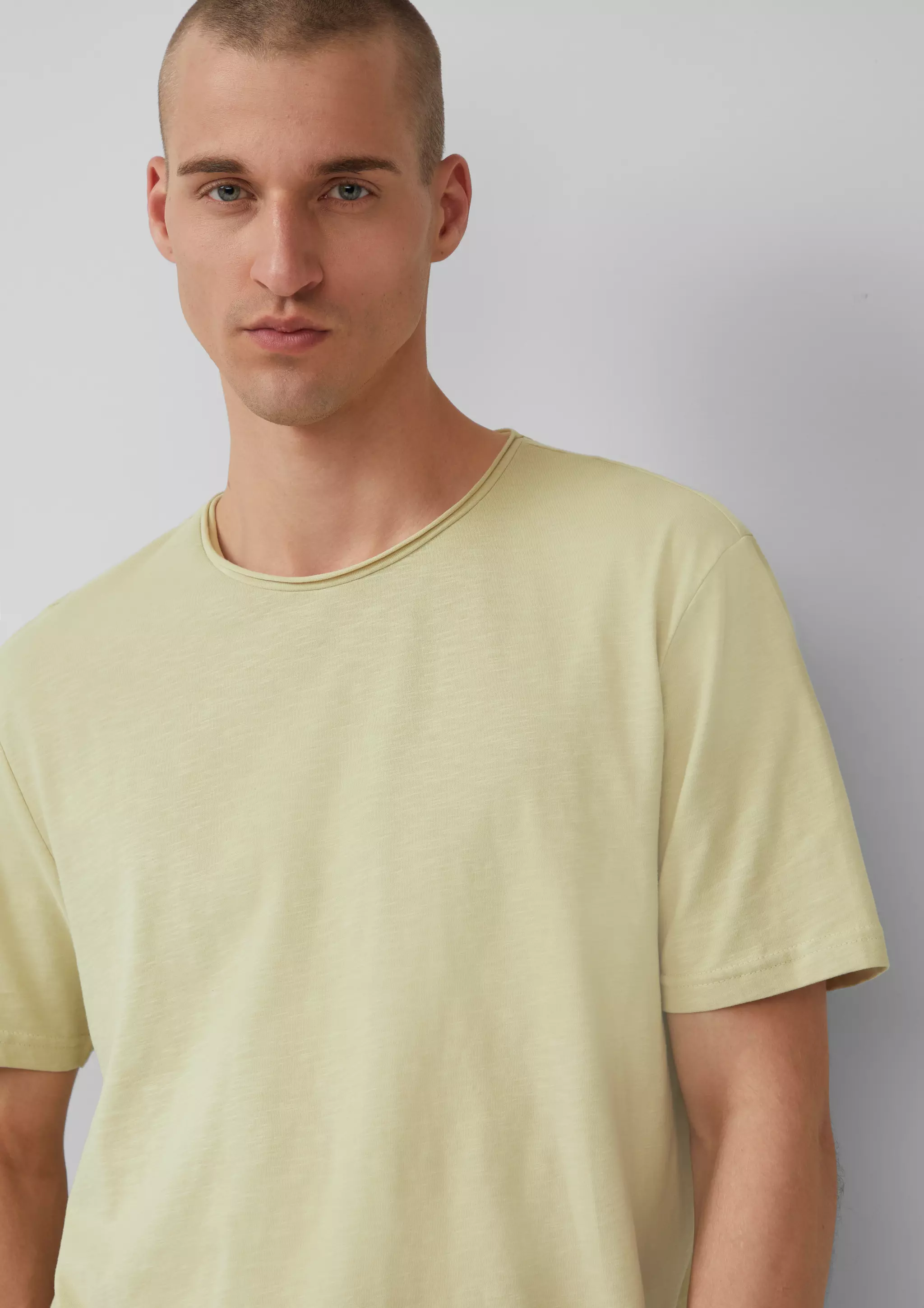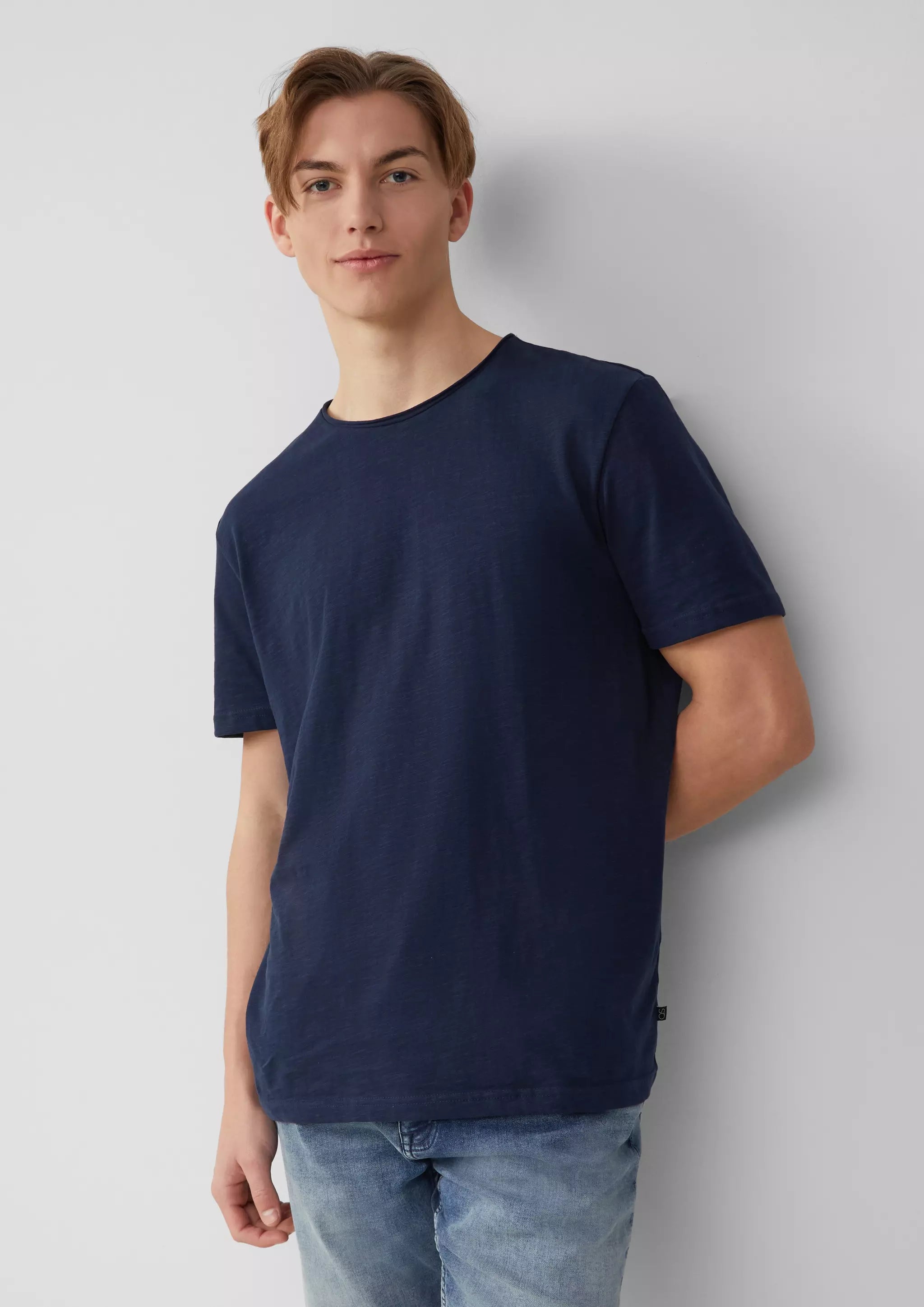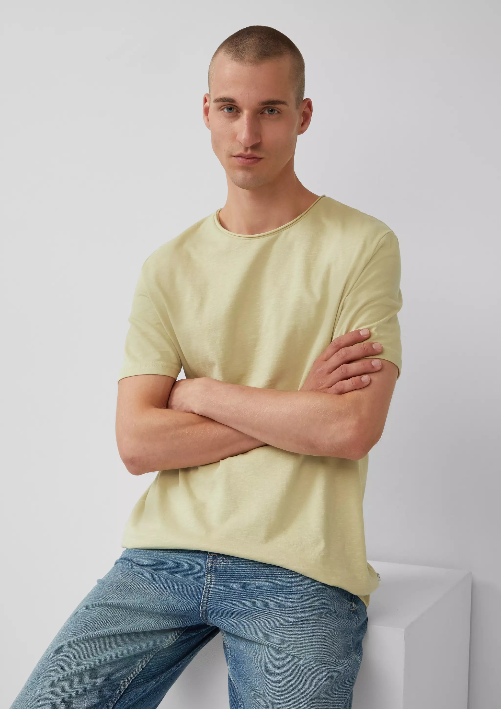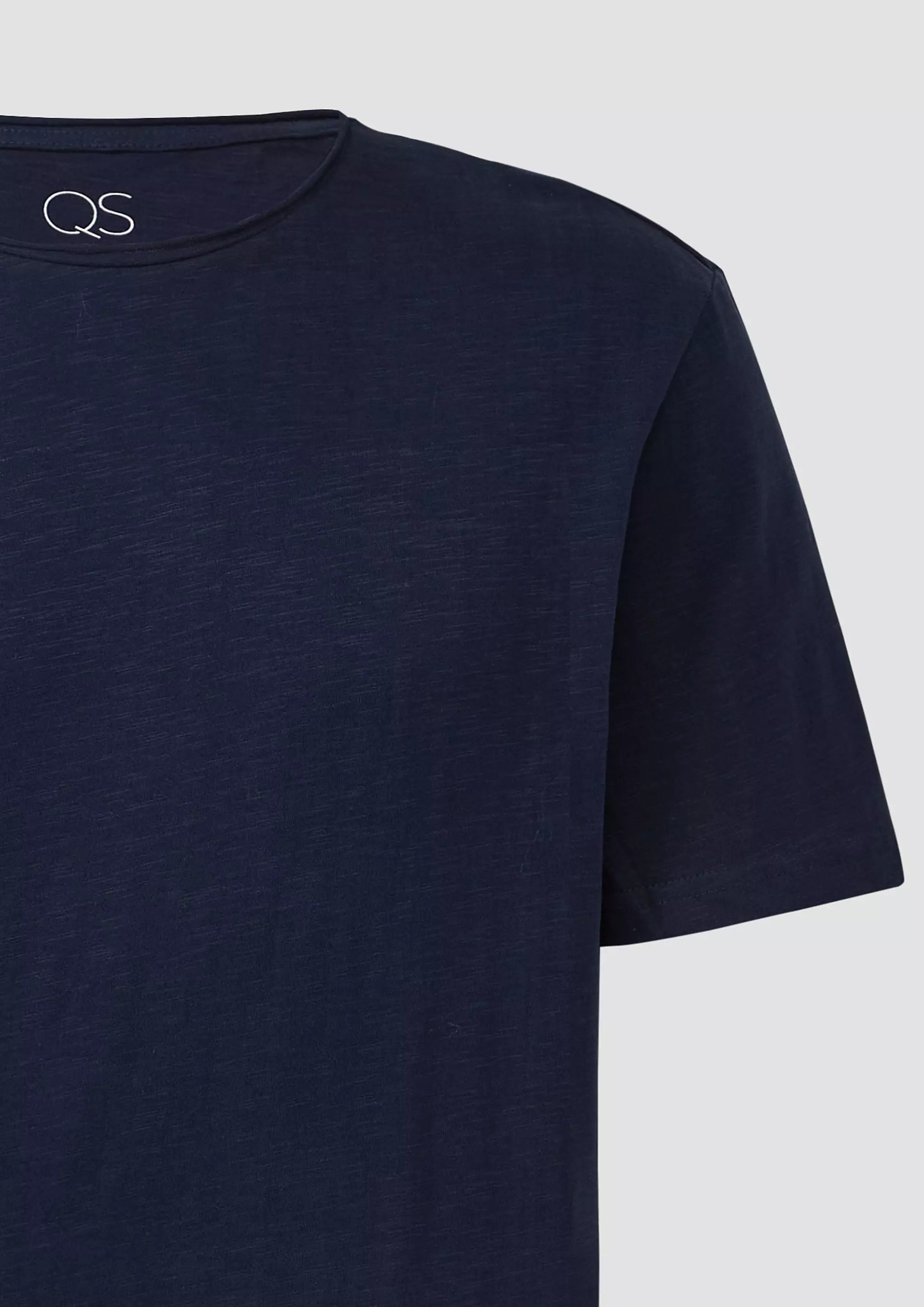 Baumwollshirt mit Rollkante und Flammgarnstruktur