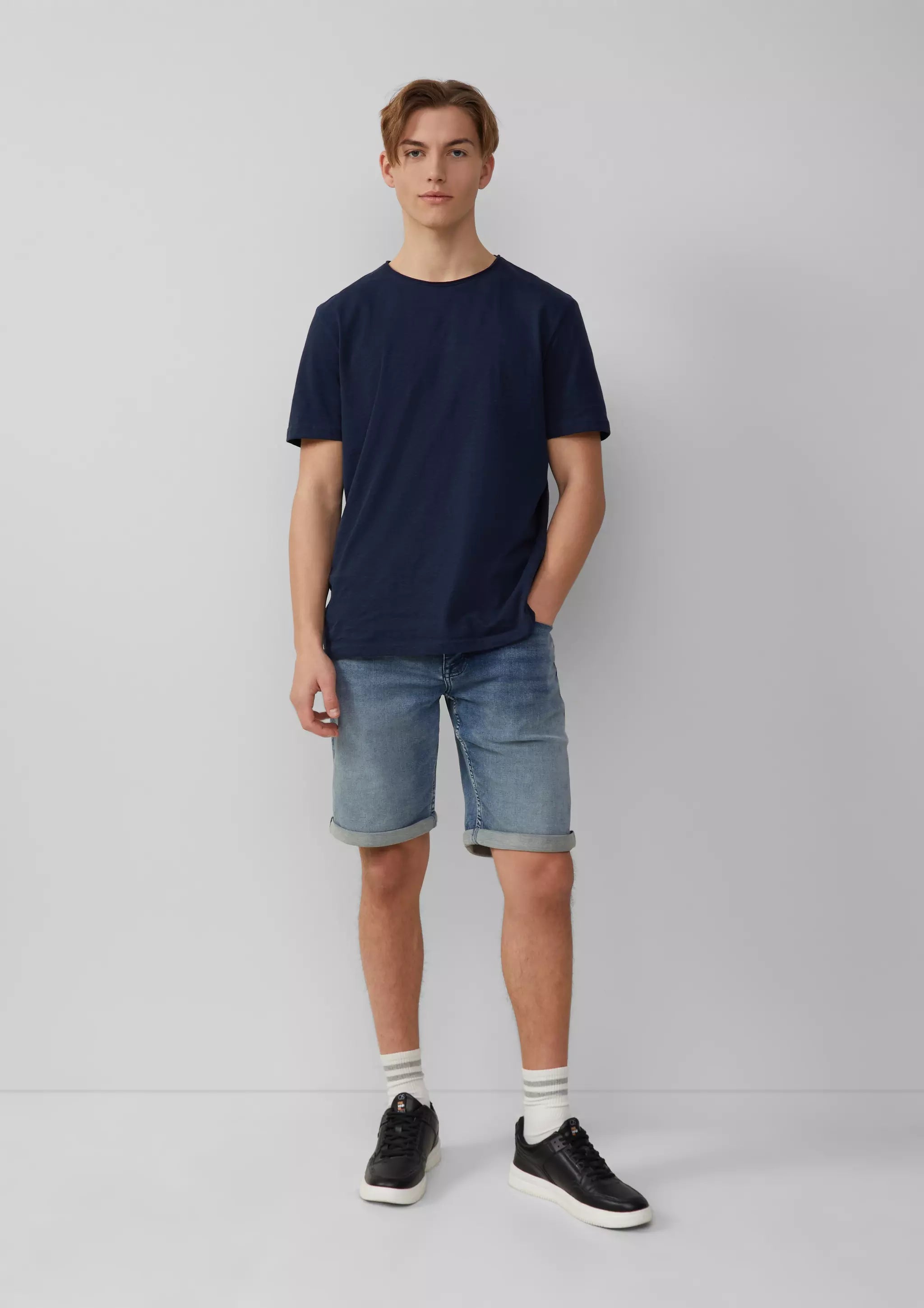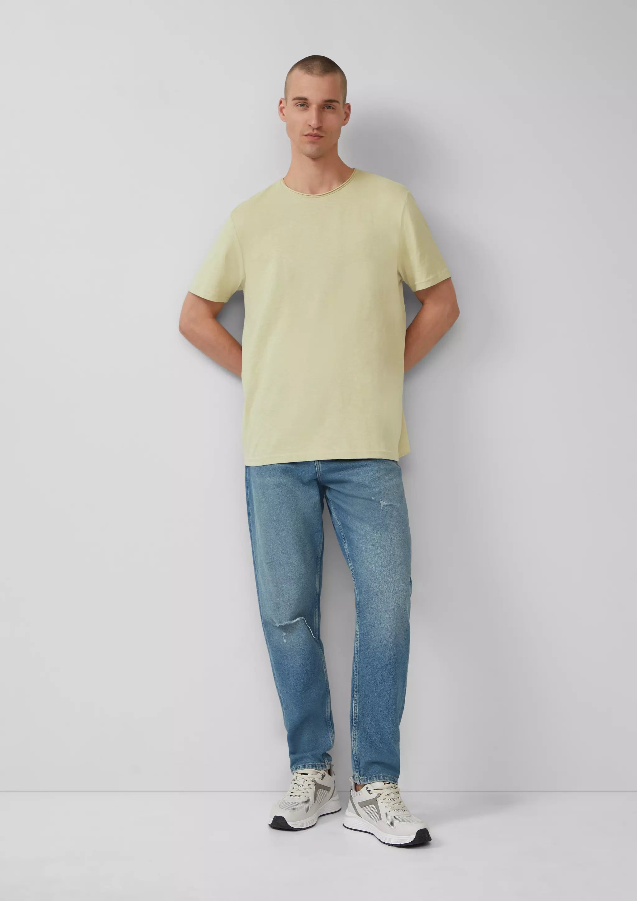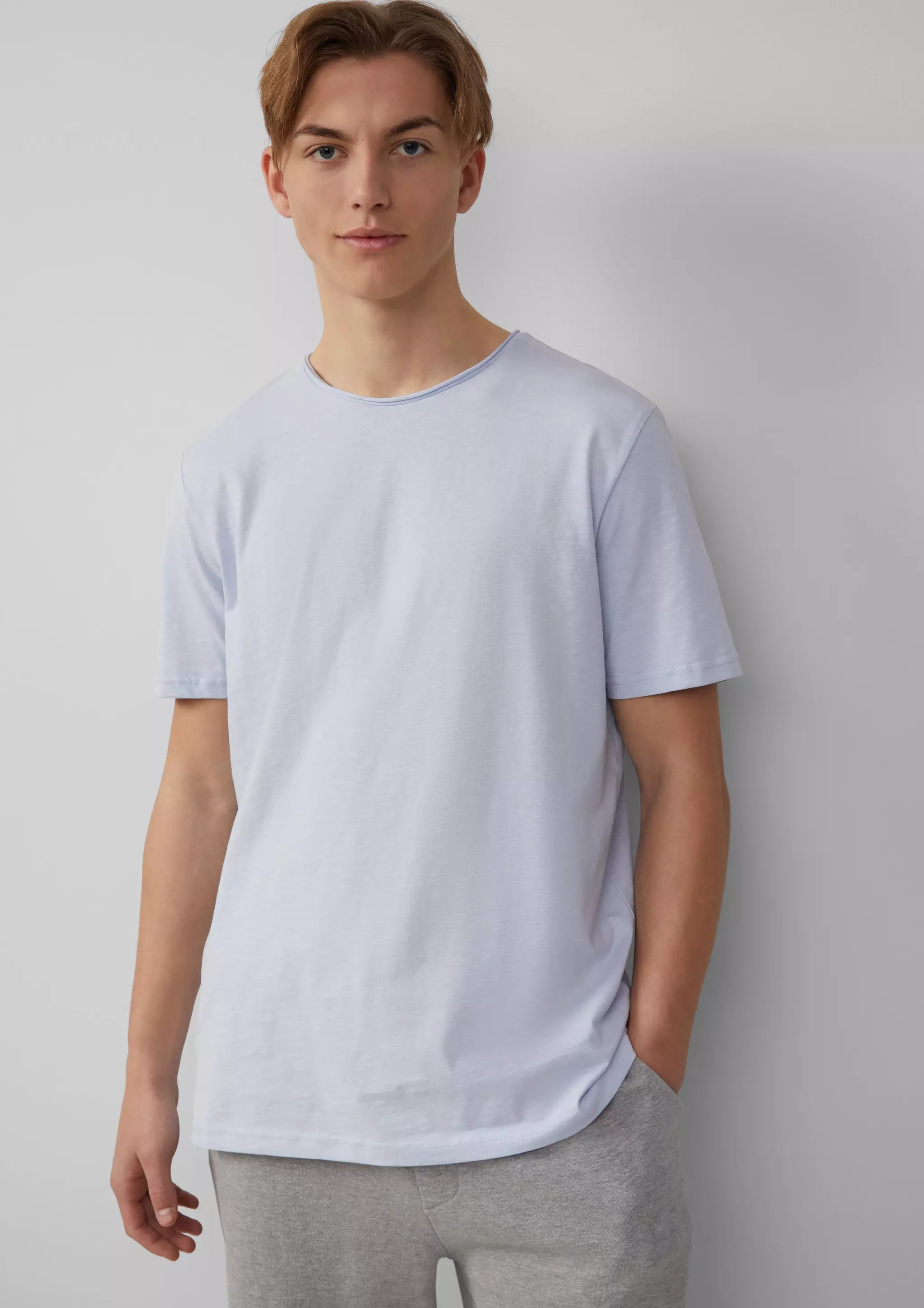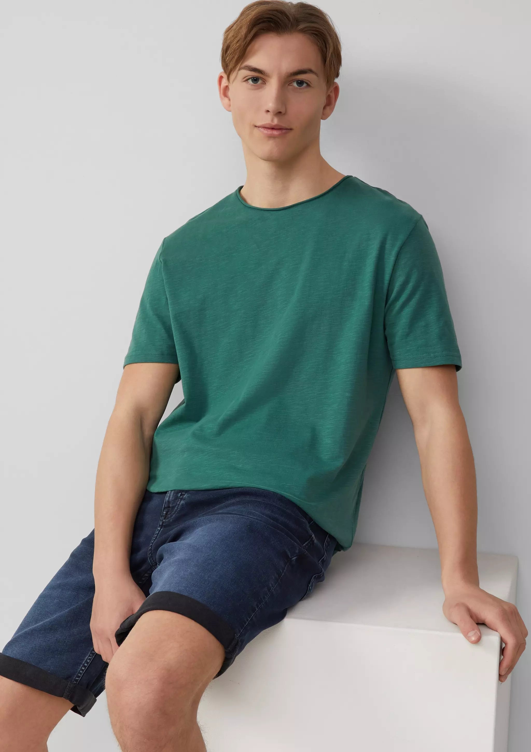 Baumwollshirt mit Rollkante und Flammgarnstruktur